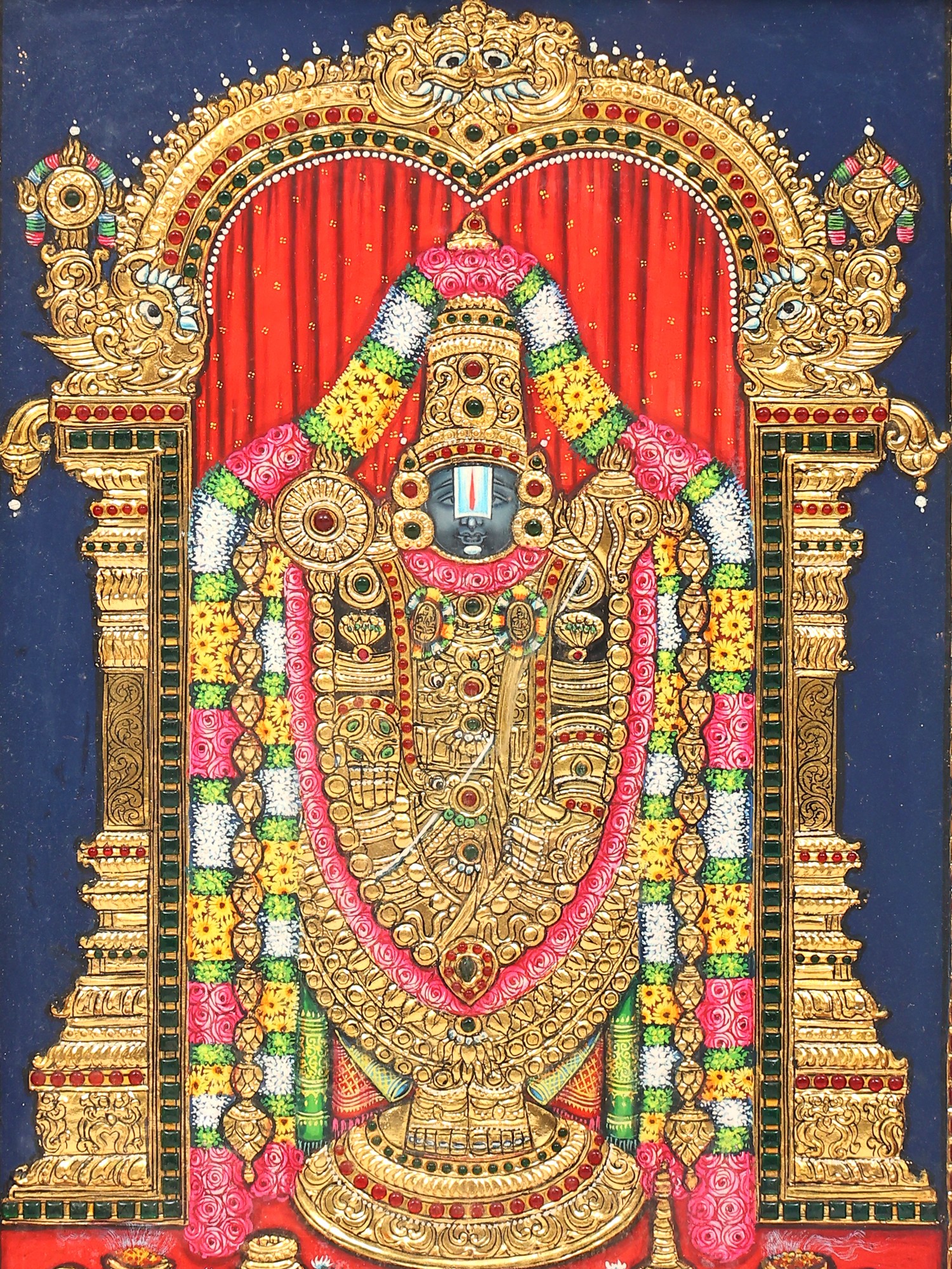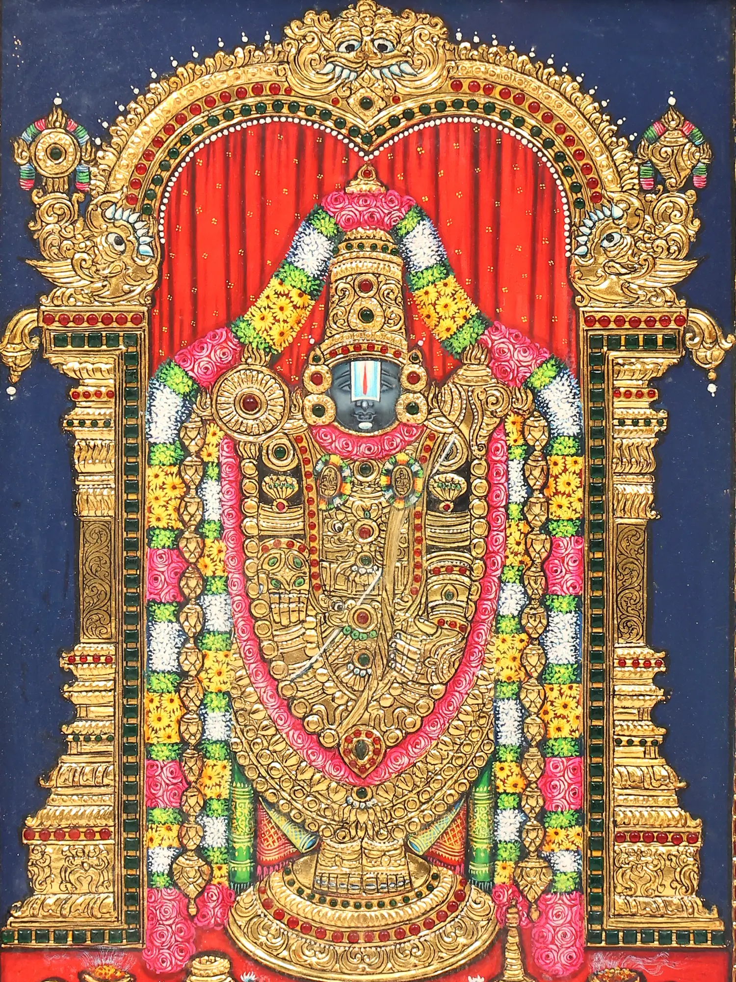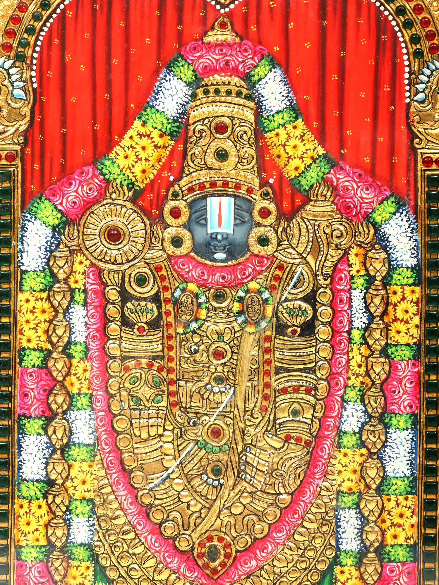 Lord Tirupati Balaji (Venkateshvara) | Framed Tanjore Painting