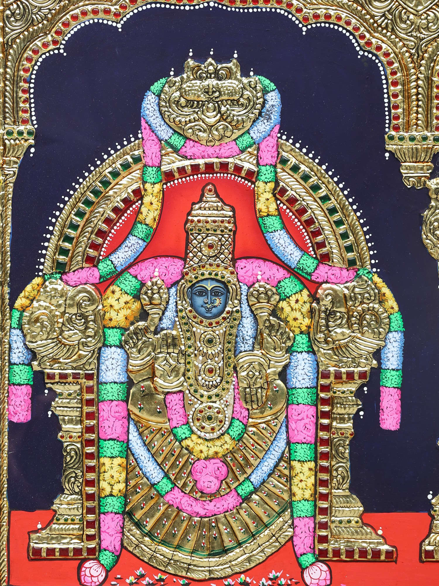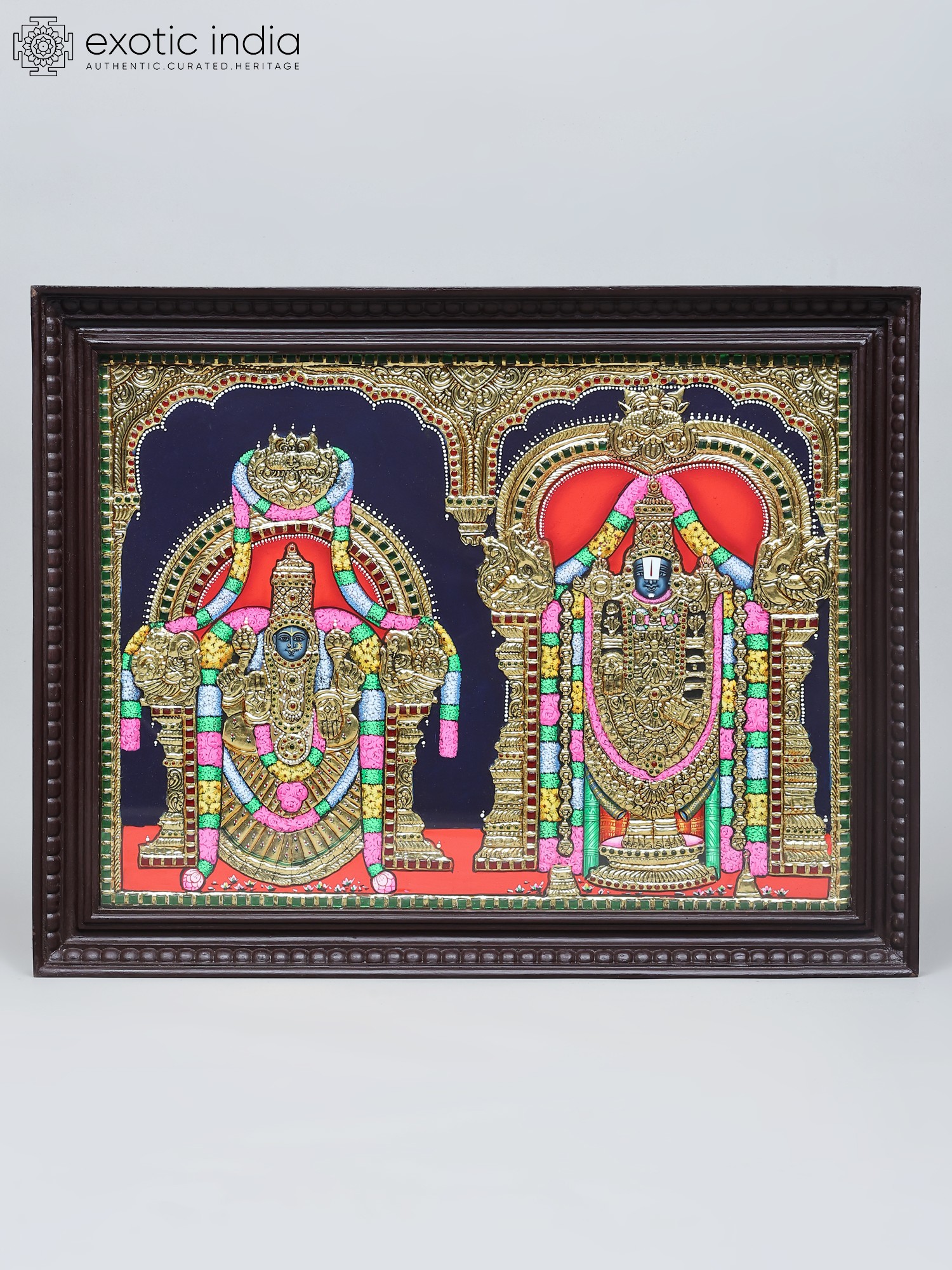Lord Tirupati Balaji (Venkateshvara) with Goddess Gajalakshmi | Embossed Tanjore Painting