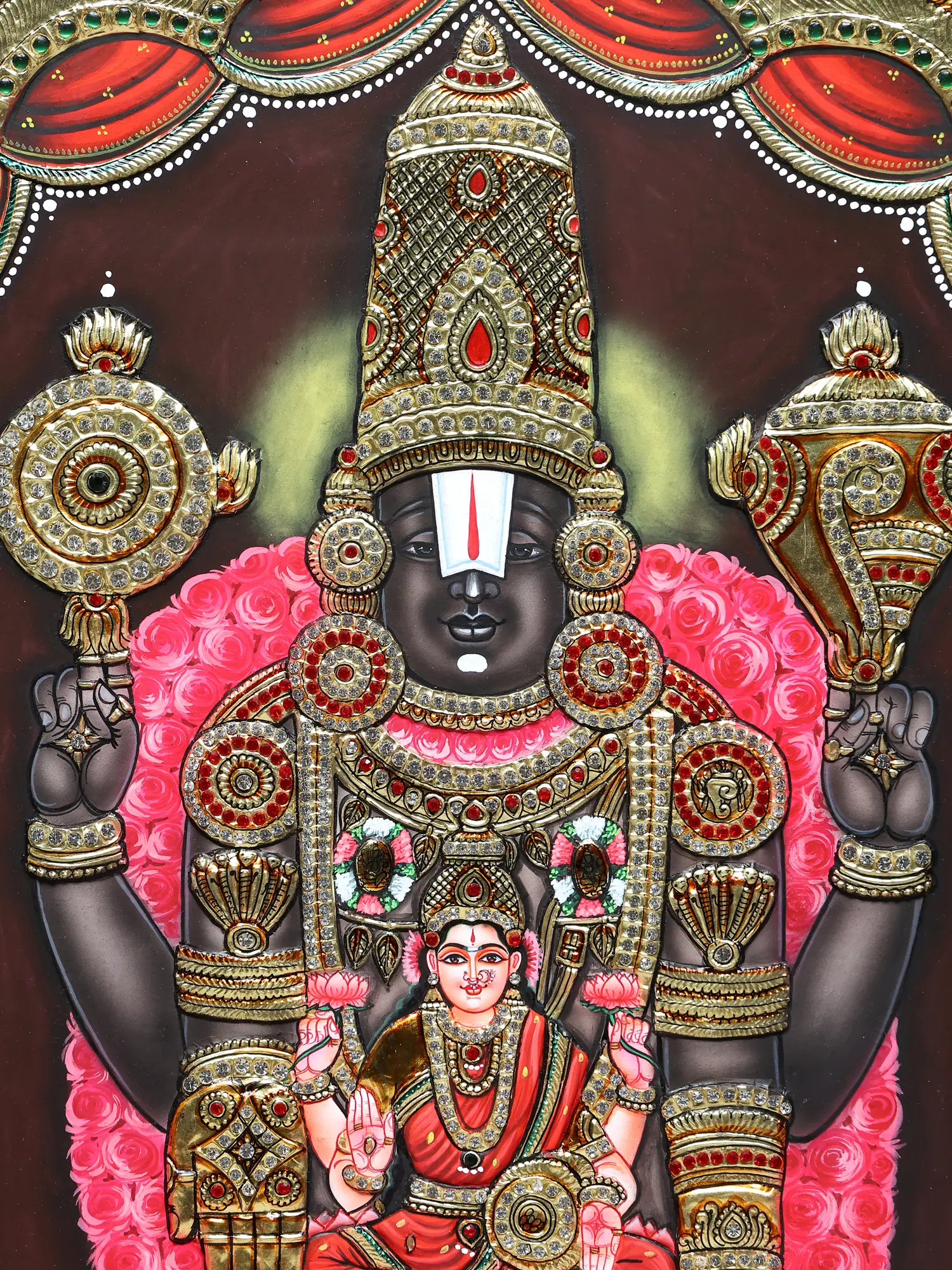 Lord Tirupati Balaji (Venkateshvara) Framed Tanjore Painting | 24 Karat Gold Work