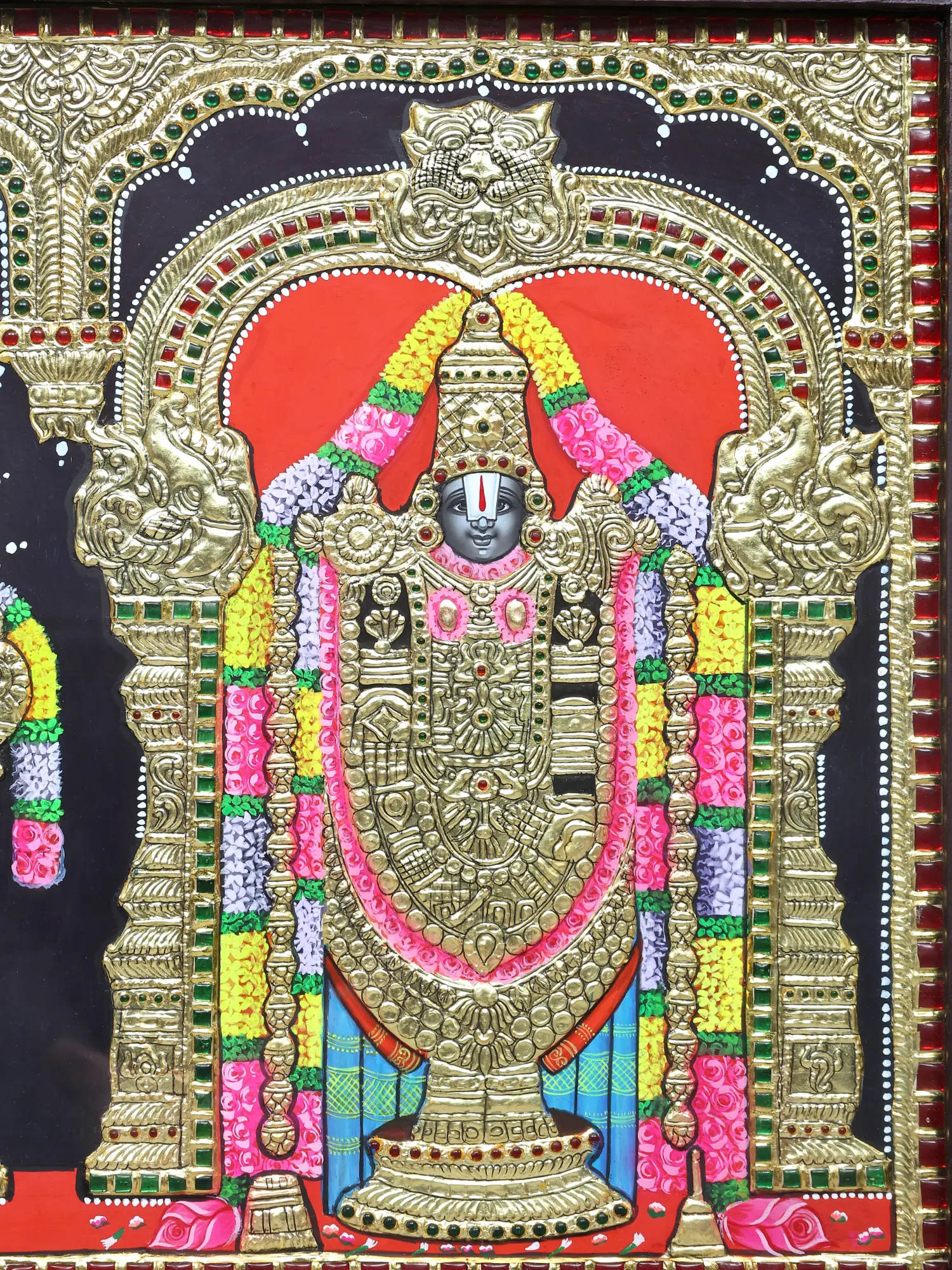 45" Lord Venkateshwara Gold Leaf Tanjore Painting with Frame
