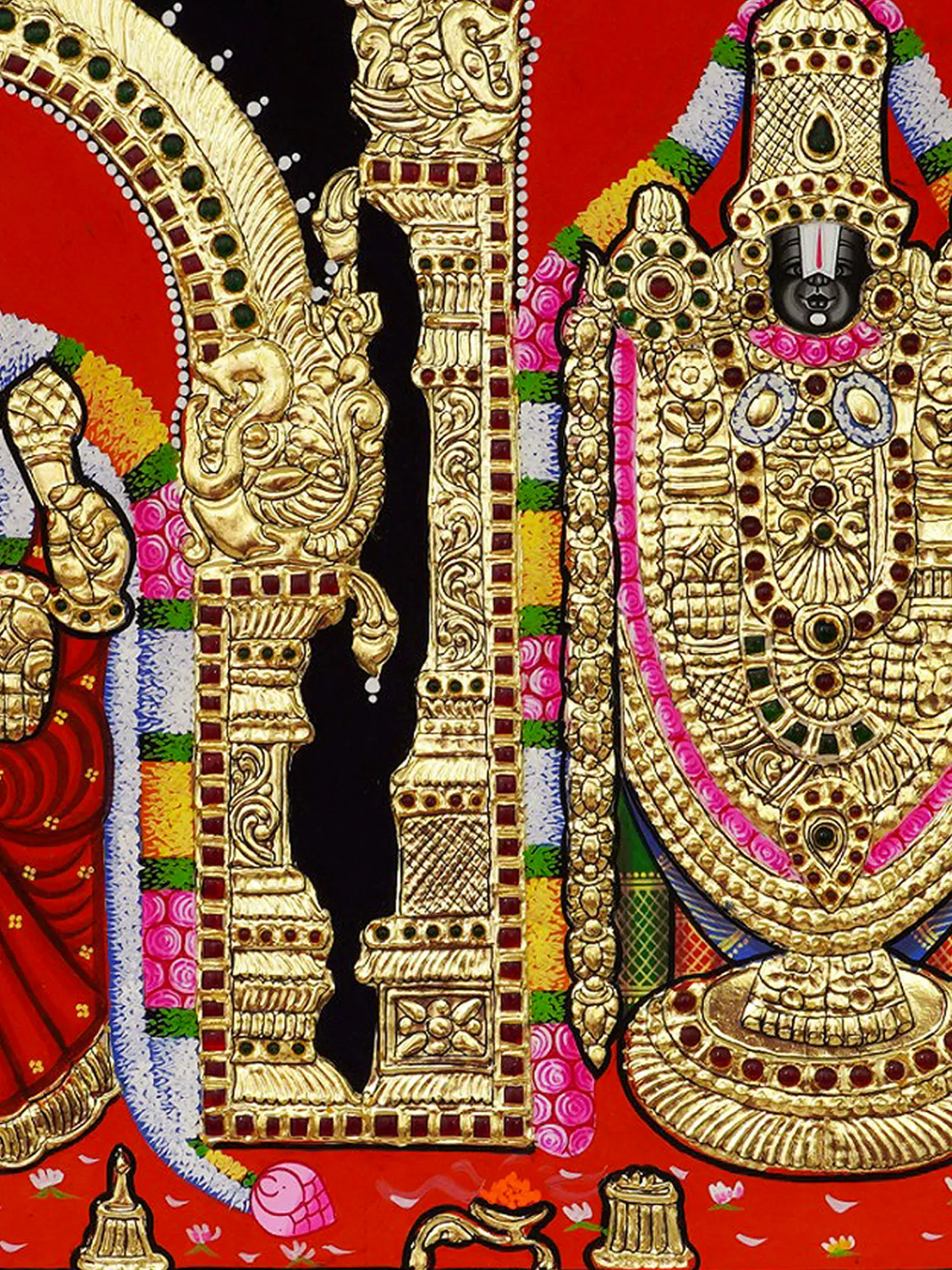 Tirupati Balaji (Venketeshwara) with Padmavati | Tanjore Painting by My Angadi