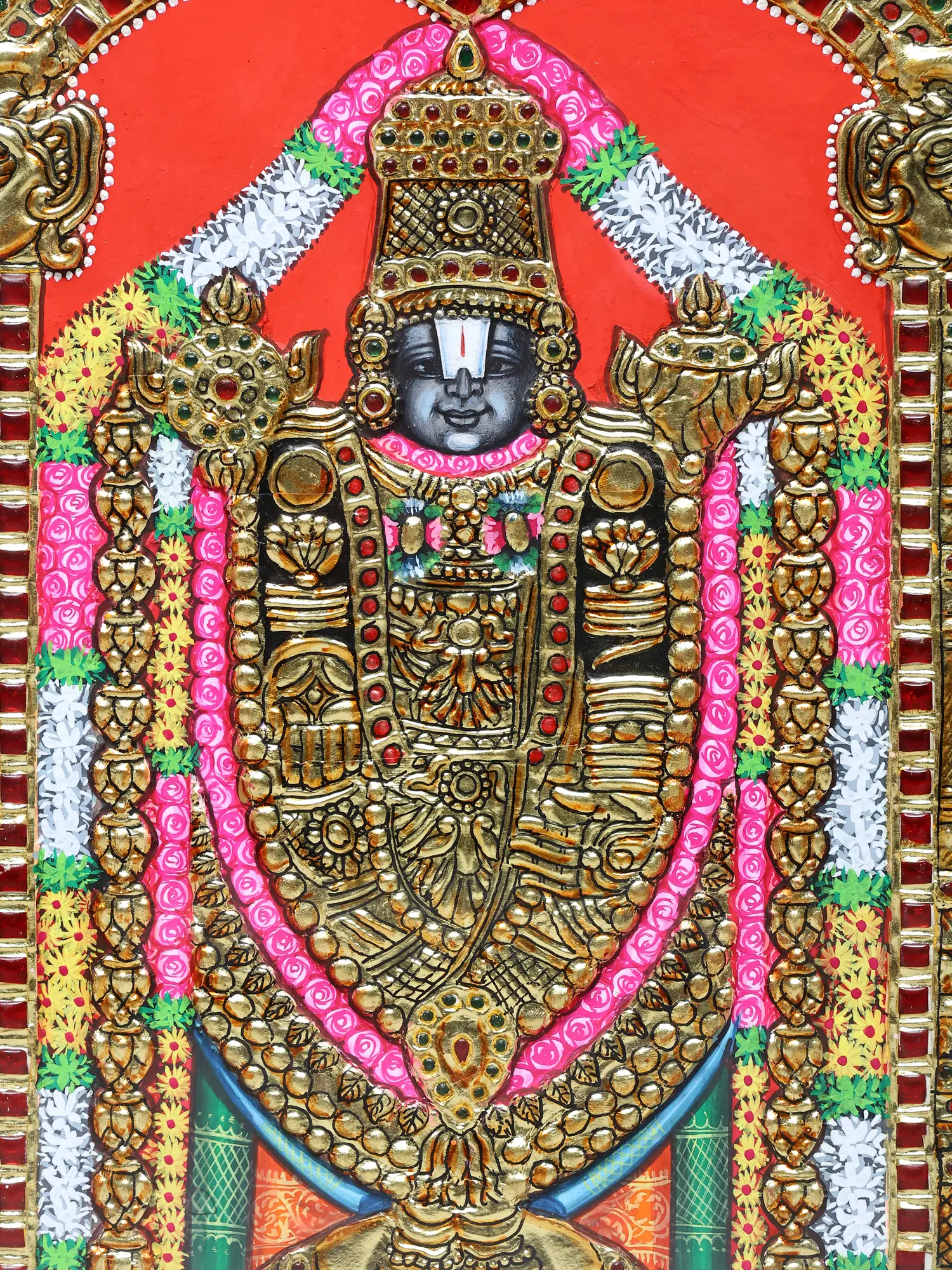 Lord Tirupati Balaji (Venkateshvara) | Framed Tanjore Painting