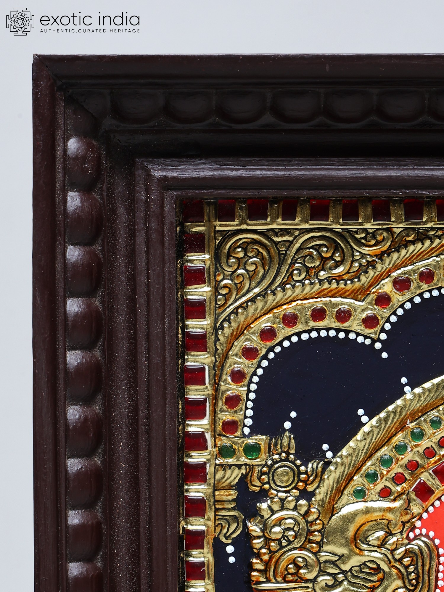 Lord Tirupati Balaji (Venkateshvara) with Goddess Gajalakshmi | Embossed Tanjore Painting