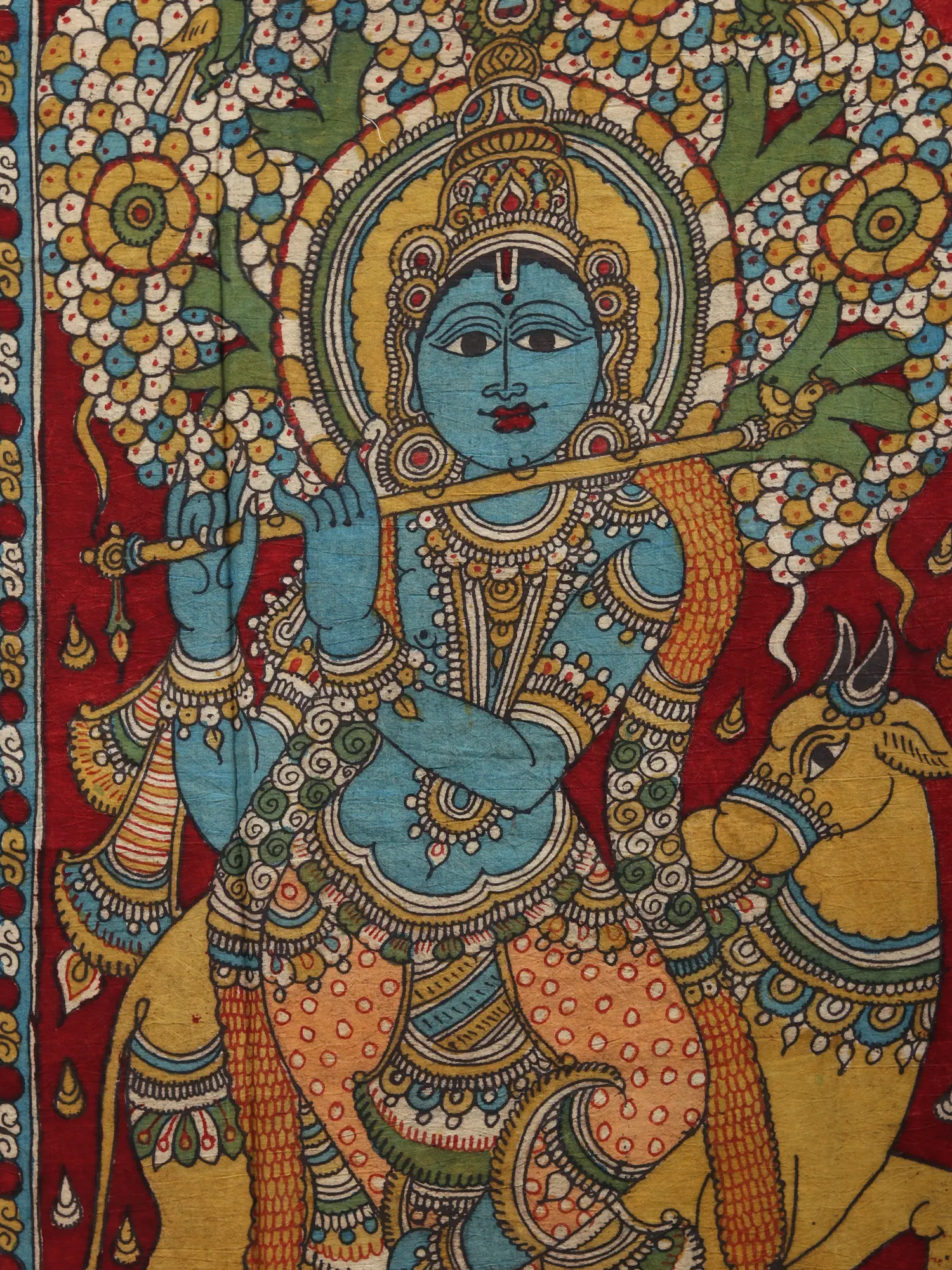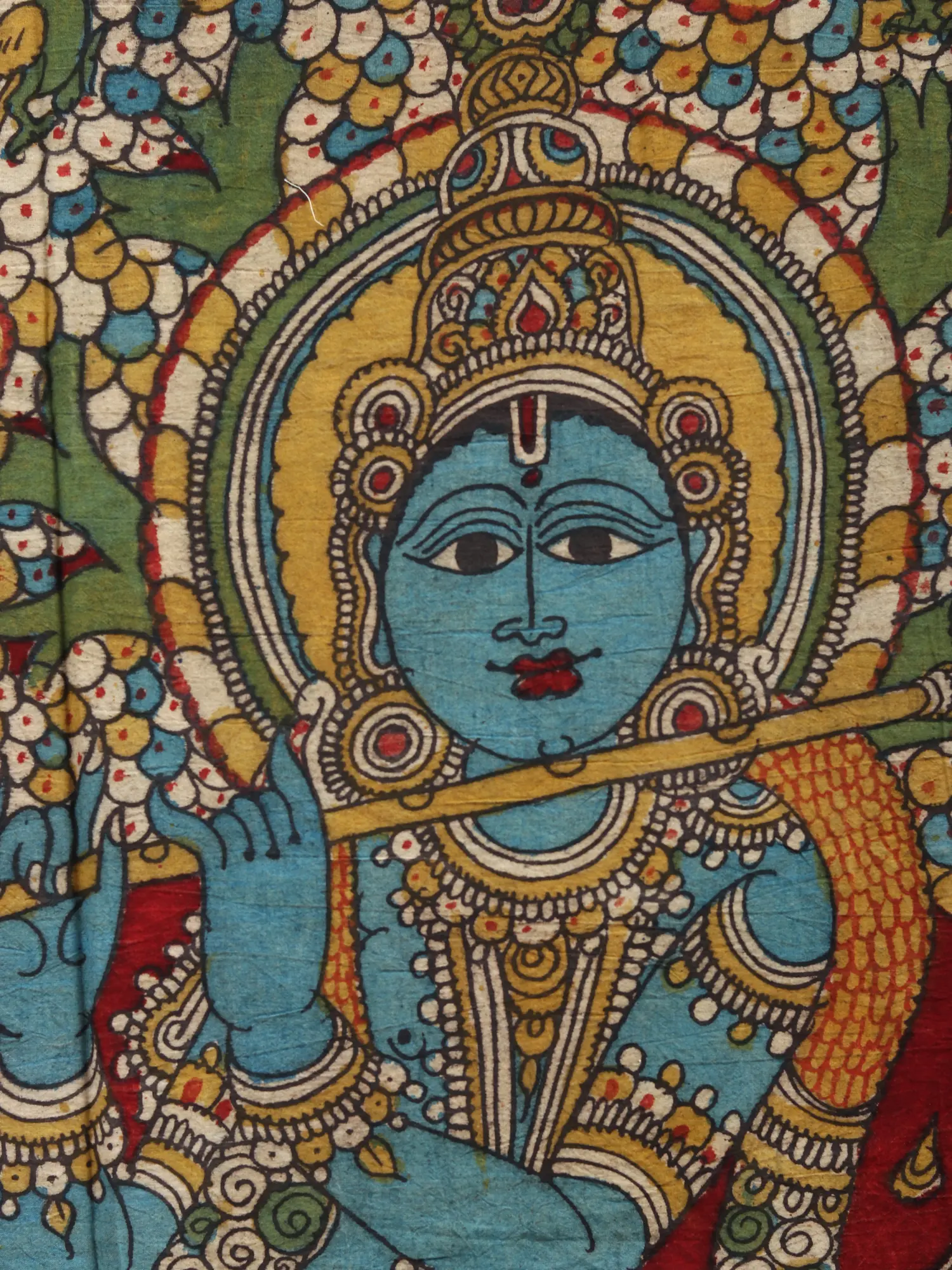 The Supremely Beautiful Krishna Playing Flute | Kalamkari Painting
