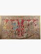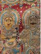 The expansive canvas, measuring 42 inches in height and 72 inches in width, is adorned with a rich tapestry of figures and symbolic motifs. You'll appreciate the exquisite rendering of divine visages, each conveying a distinct aura through subtle expressions and elaborate ornamentation. The vibrant red background serves as a powerful contrast, allowing the meticulously detailed figures and the golden floral border to truly resonate.