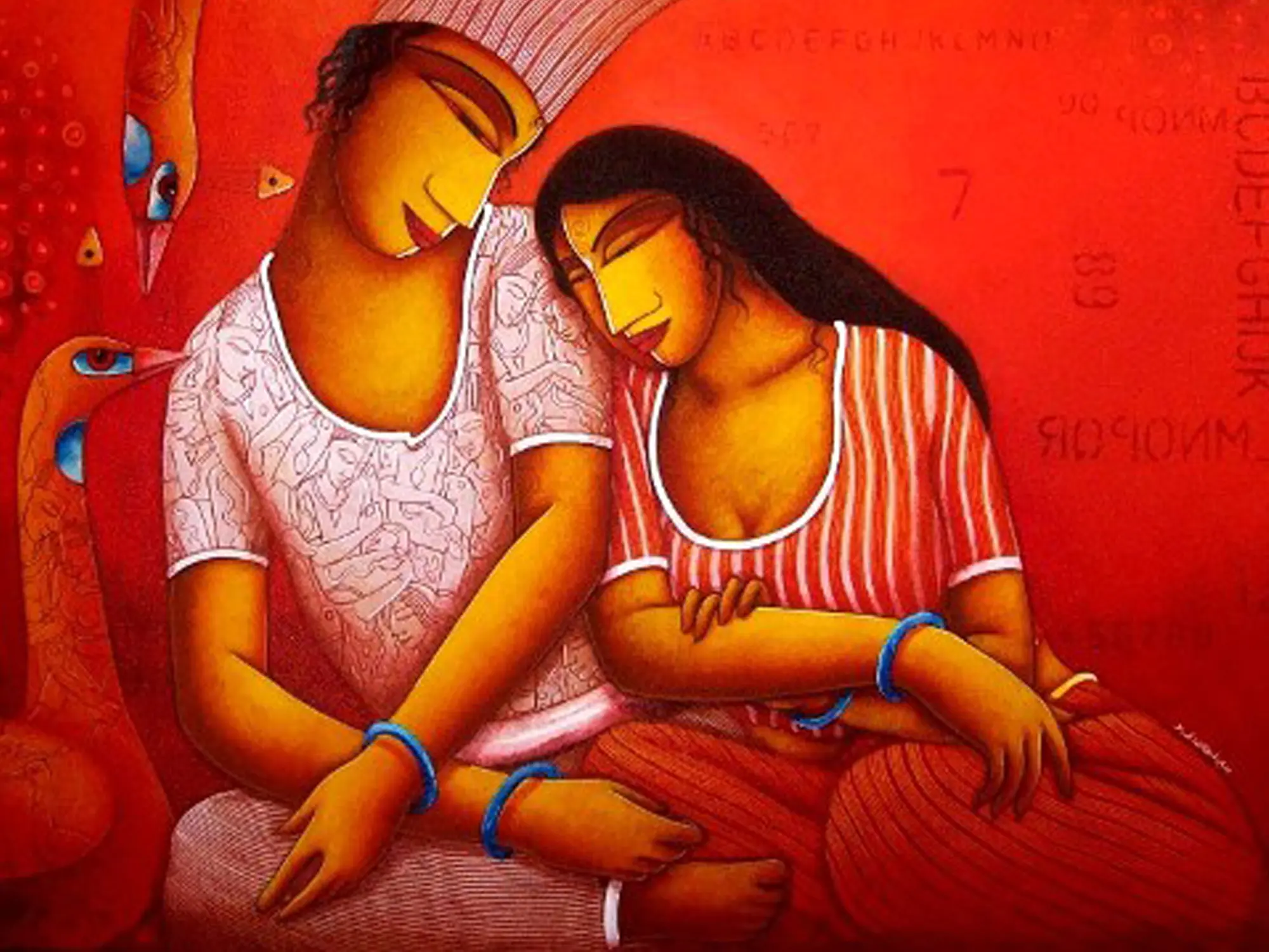Sitting Couple Together | Acrylic On Canvas | By Samir Sarkar