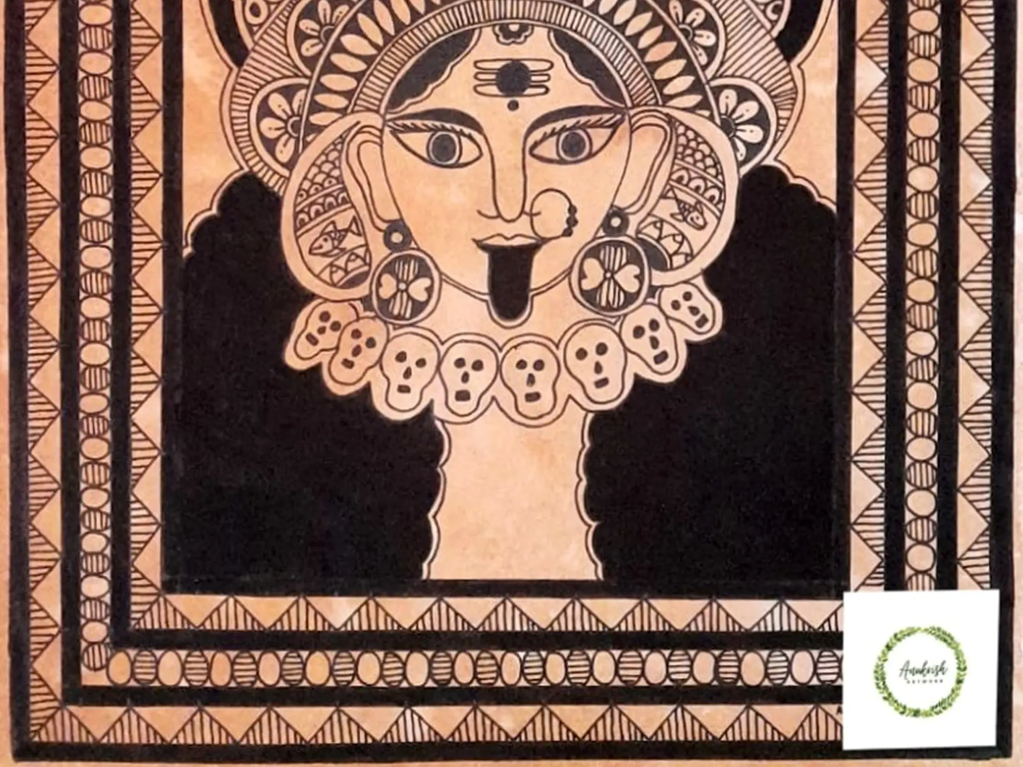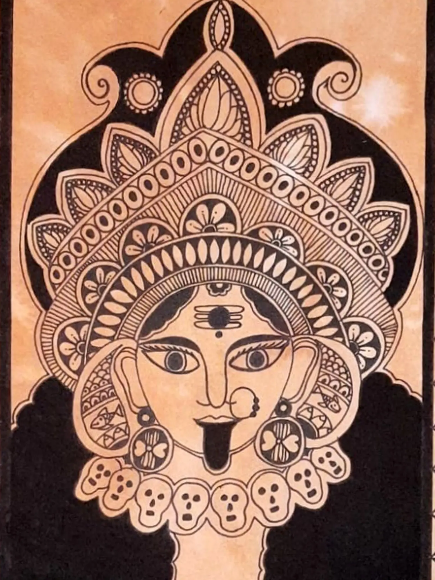 Delve into the divine realm with this captivating Maa Kalratri watercolour painting on paper. The artist's skilled brushstrokes bring forth the fierce yet benevolent energy of the Goddess - creating reverence that transcends the ordinary. This artwork not only pays homage to Maa Kalratri but also serves as a visual meditation on strength and fearlessness. Let the presence of the fierce goddess adorn your space, infusing it with a sense of divine power and protection.