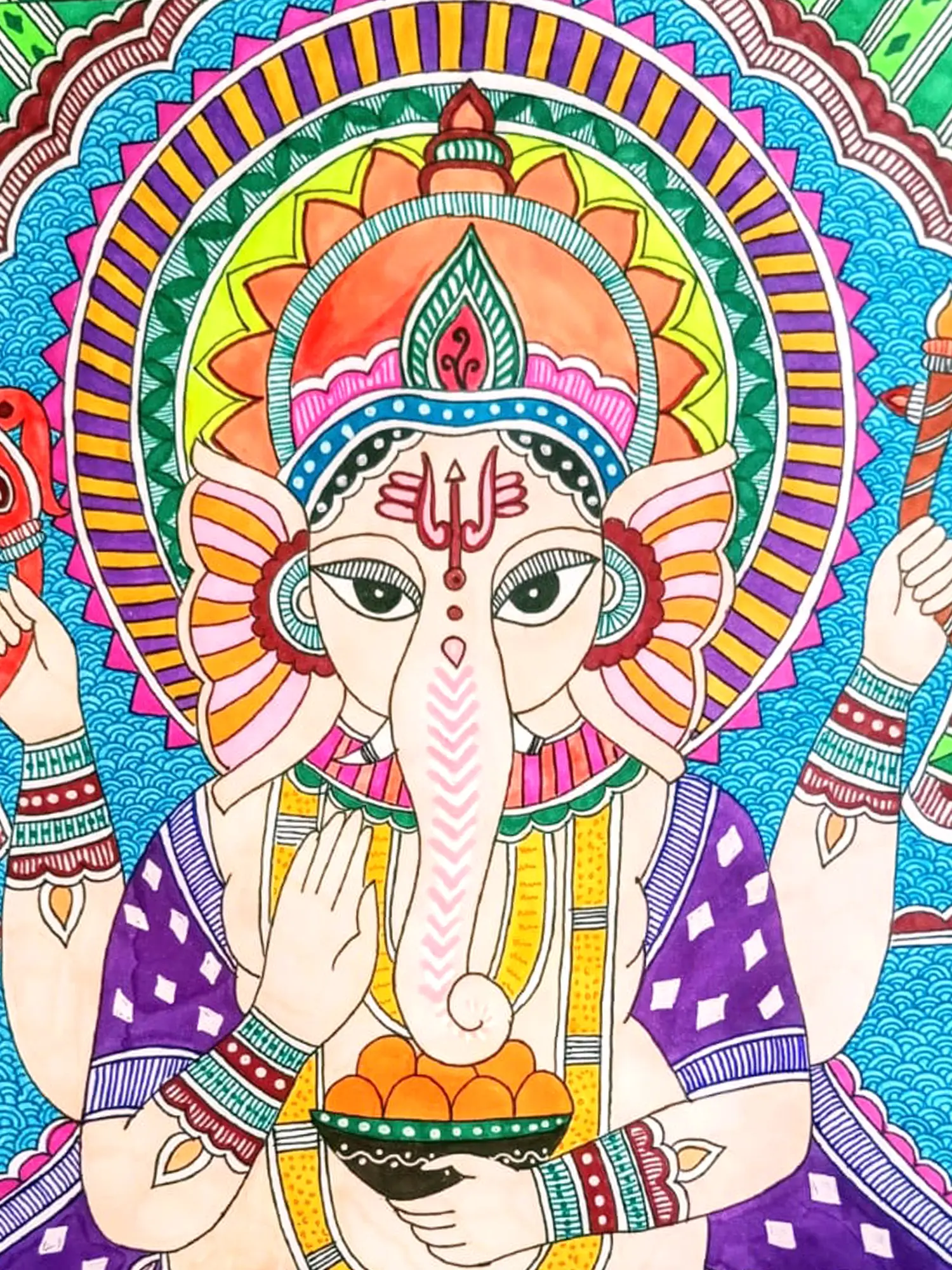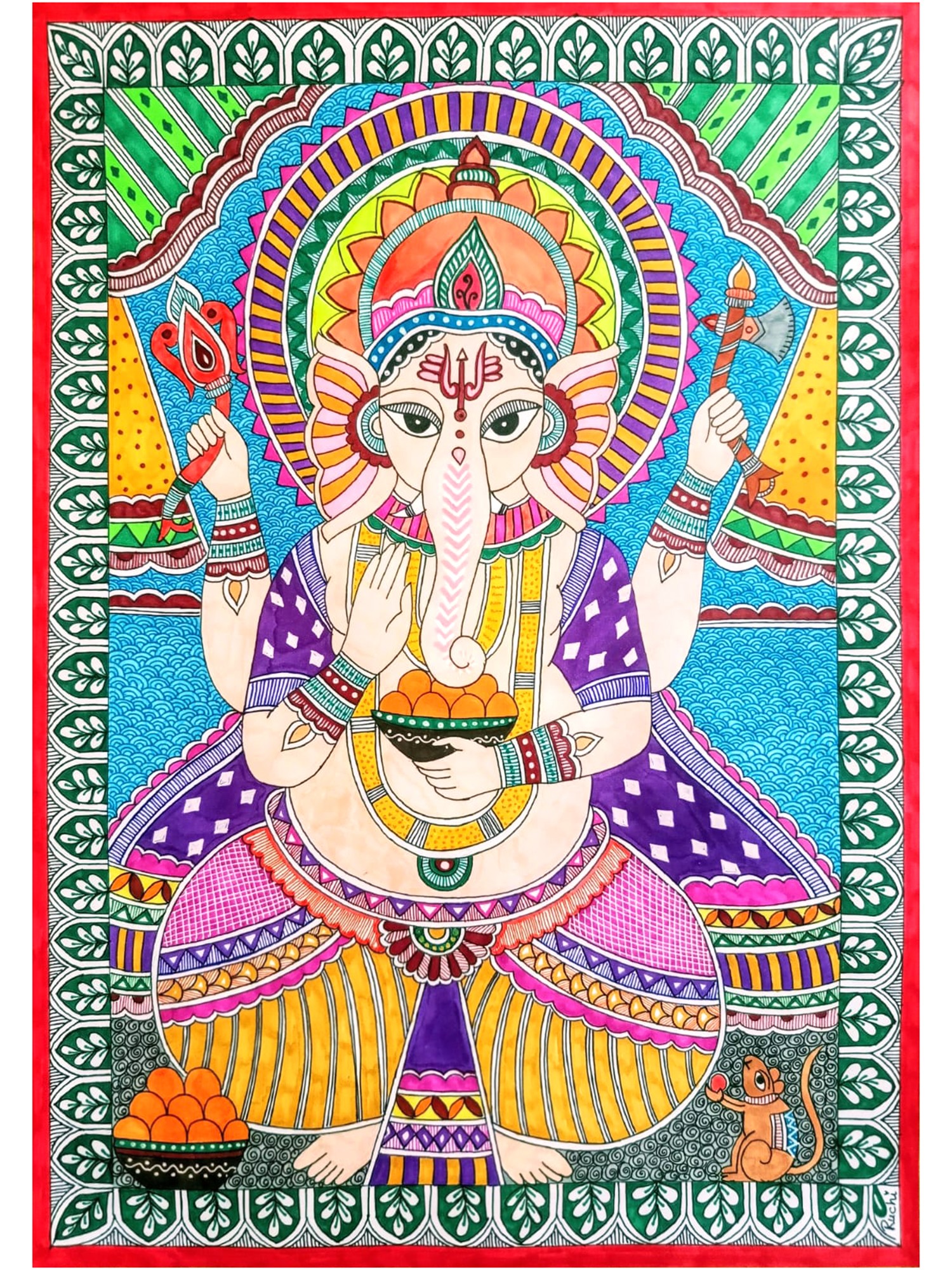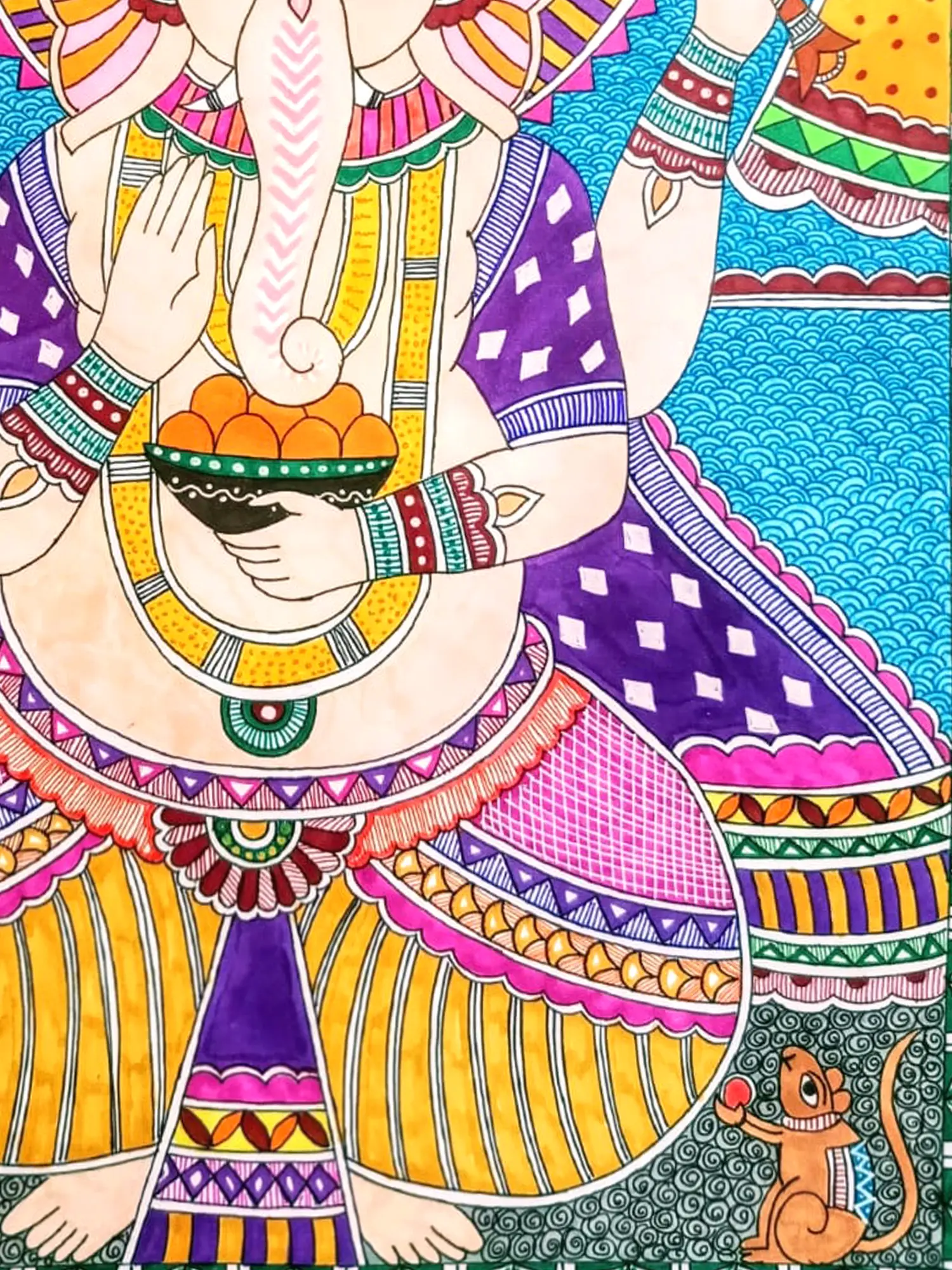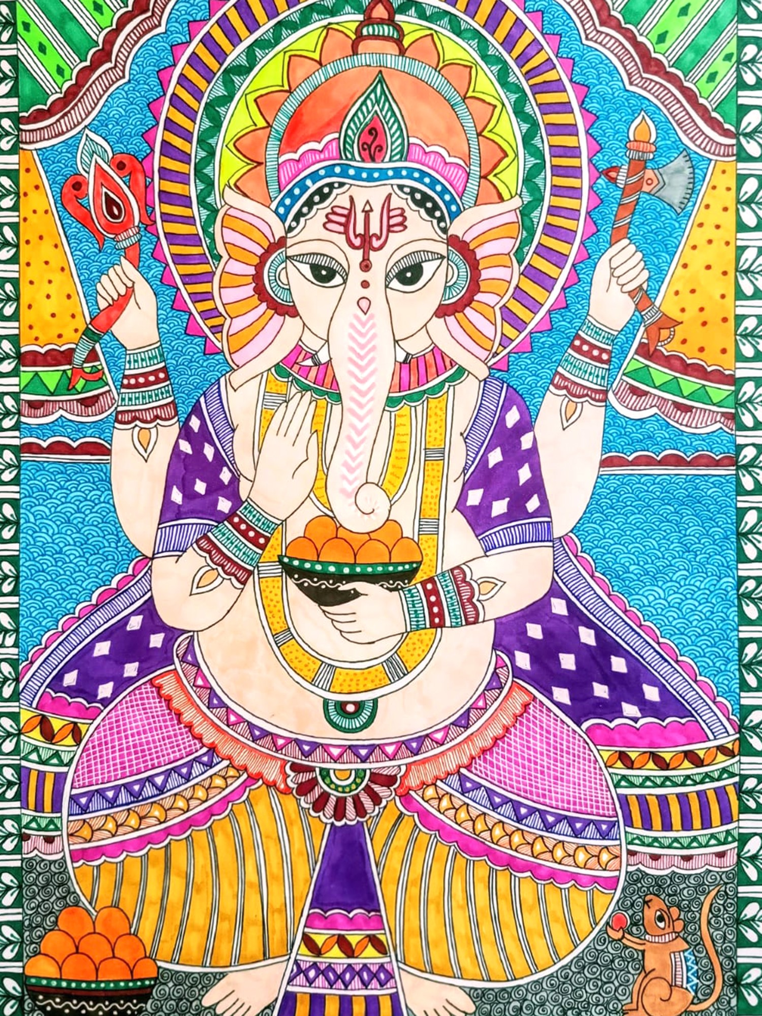 Ashtabhujadhari Dancing Lord Ganesha | Pattachitra Painting on Palm Leaf