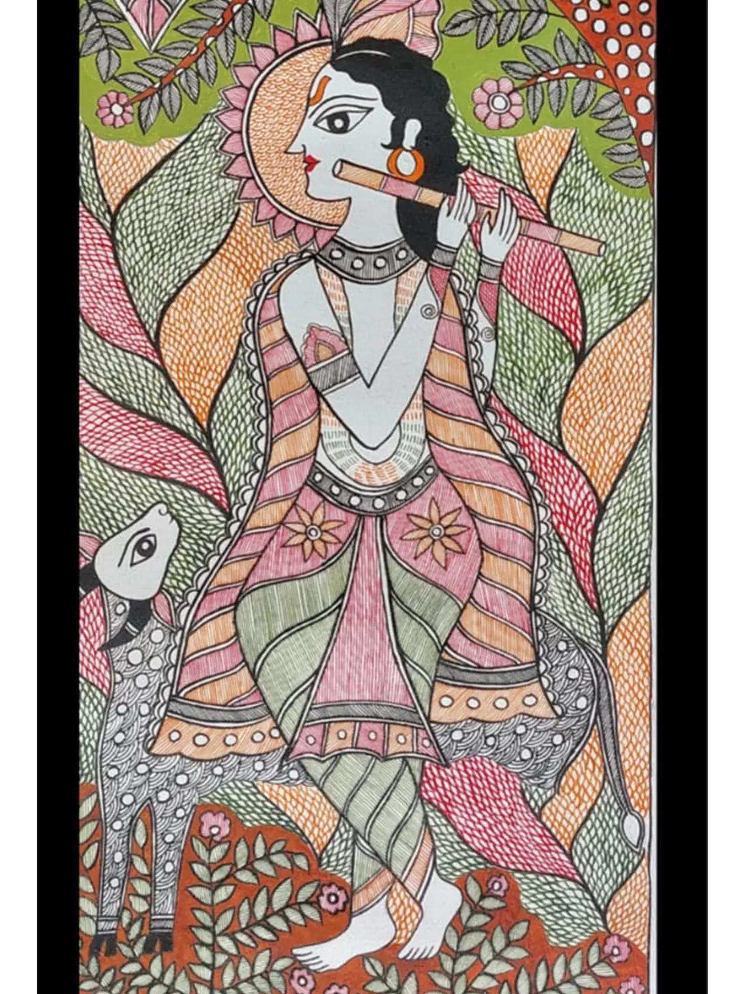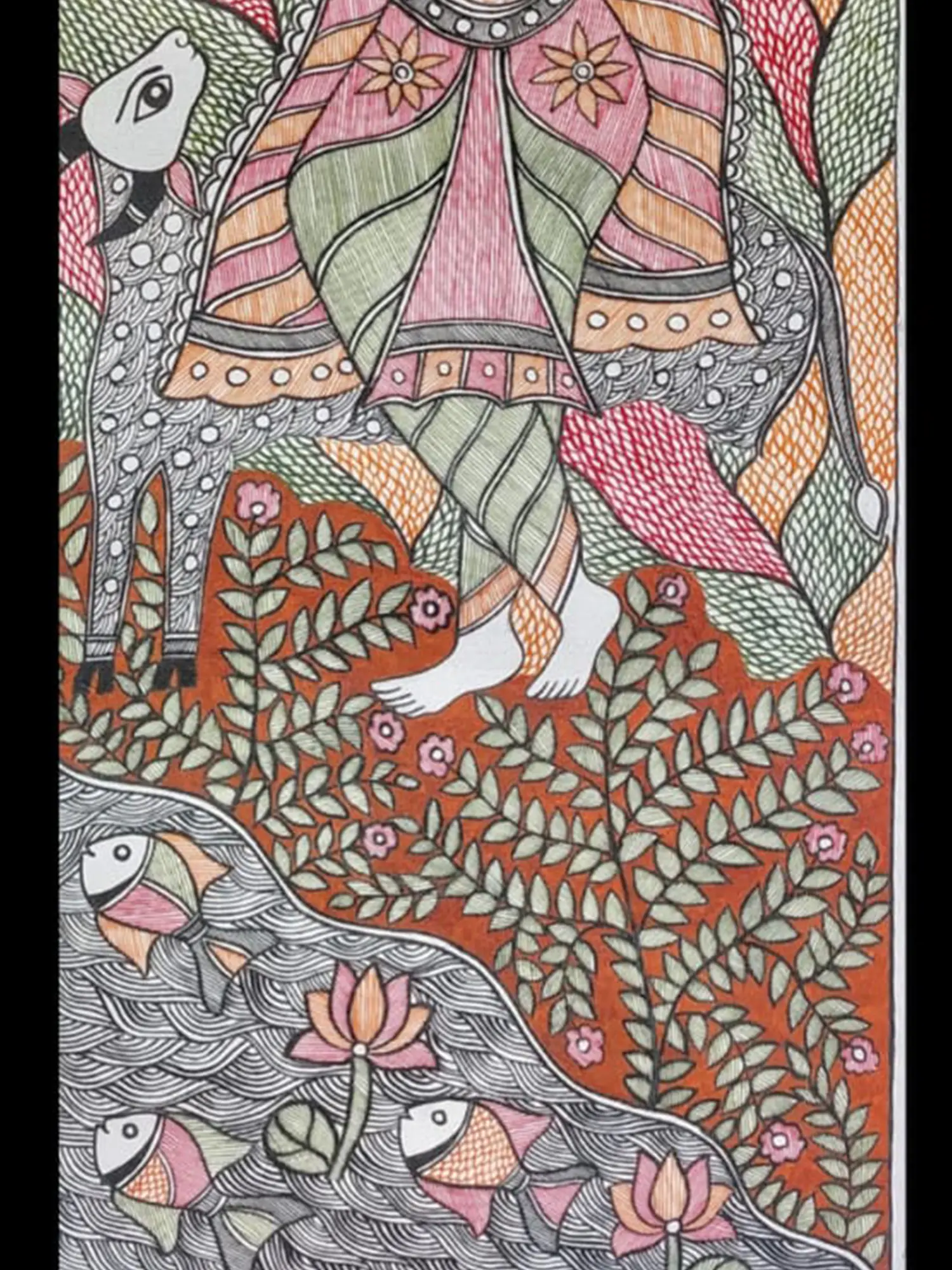 Standing Lord Ganesha Madhubani Painting | Acrylic On Handmade Paper | By Saral Panchal