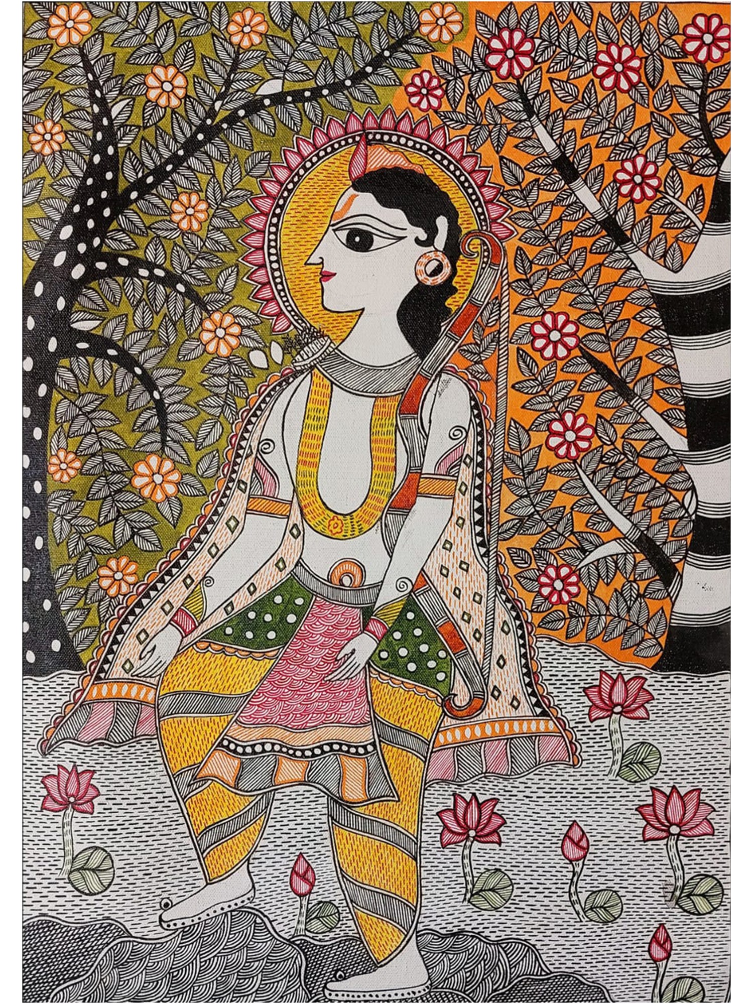 Lord Rama with Bow and Arrow | Color and Pen on Watercolor Paper | By Pooja Jha