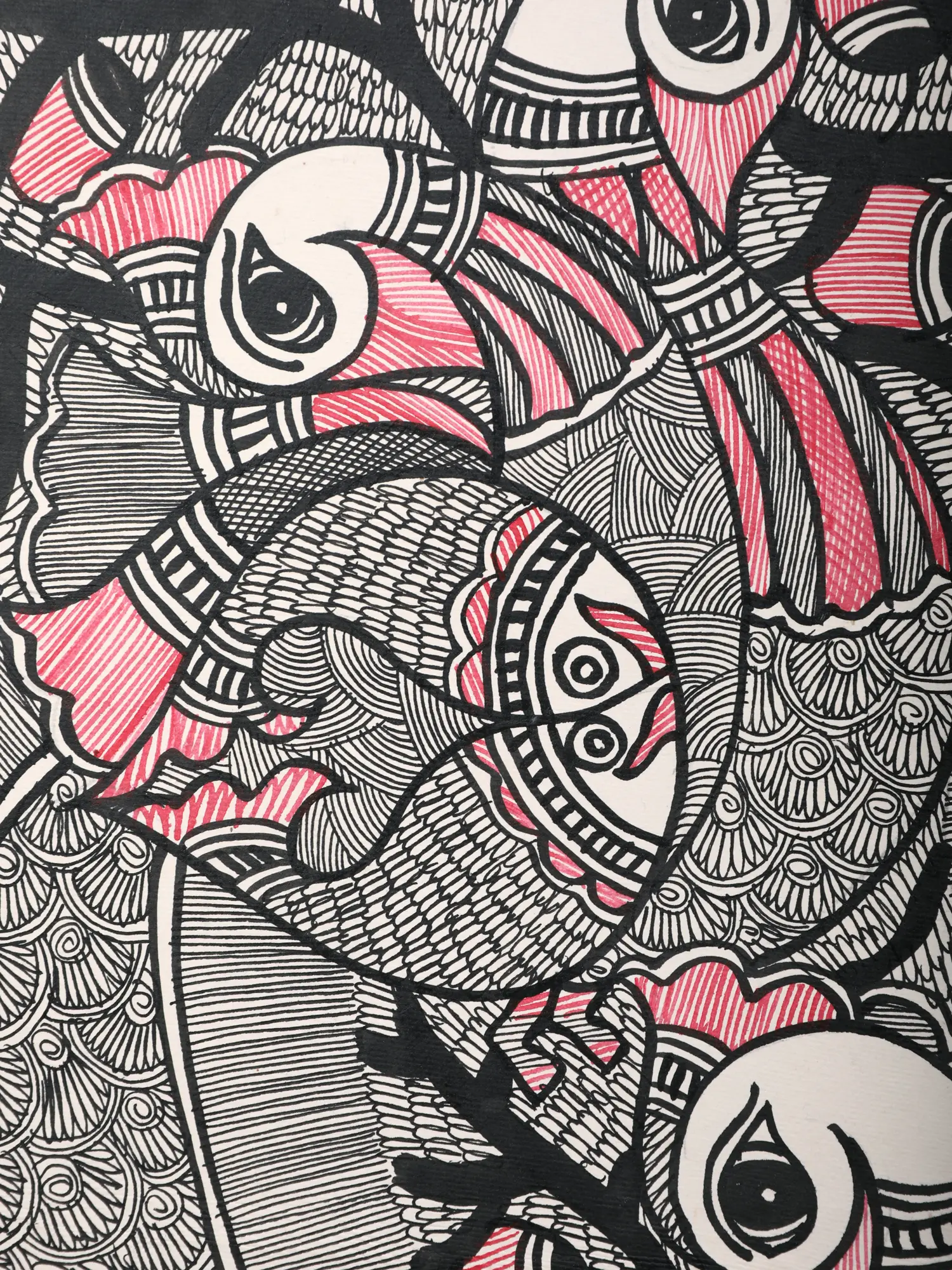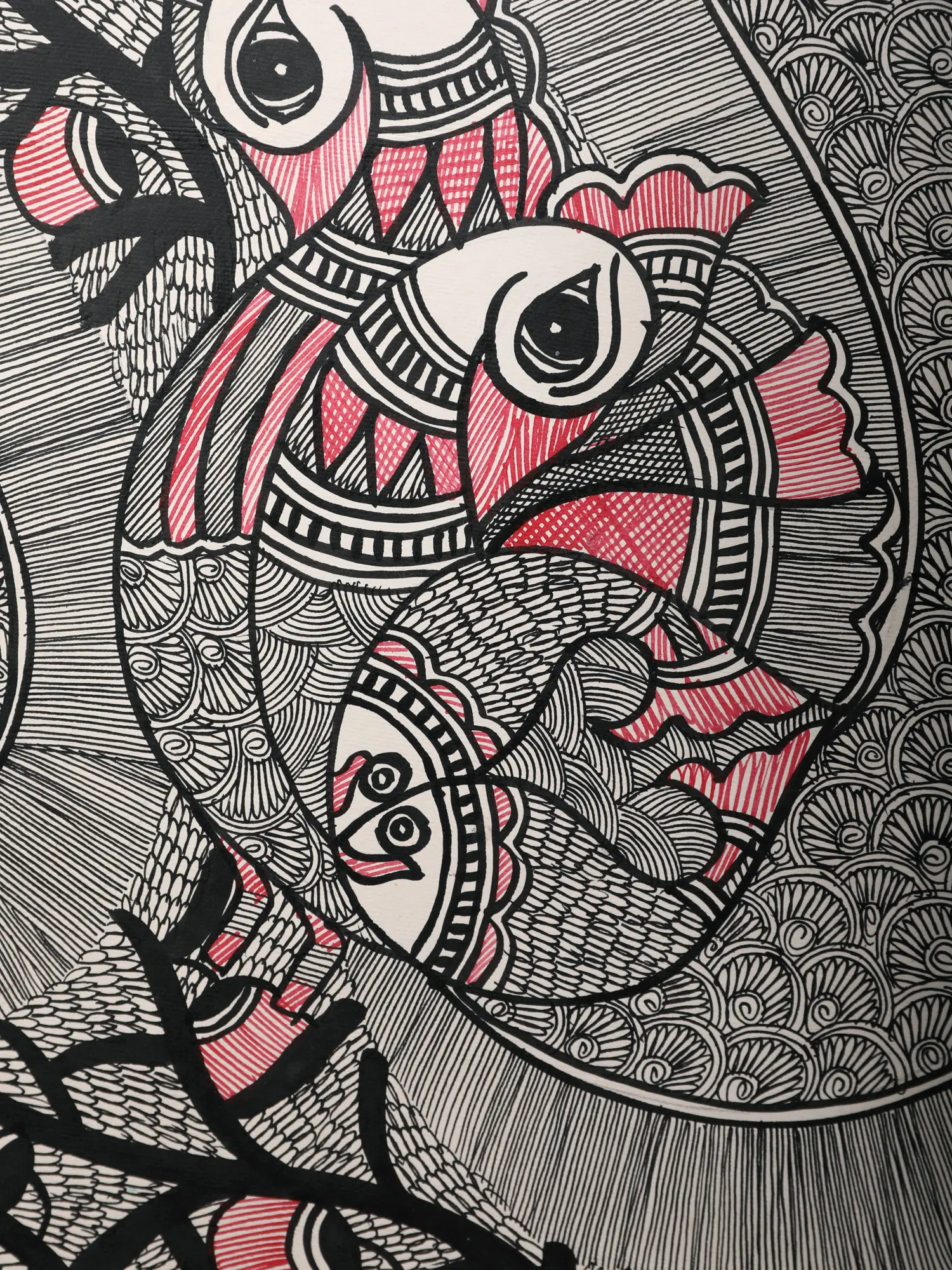 All Gods Live Inside Goddess Kamdhenu Madhubani Painting