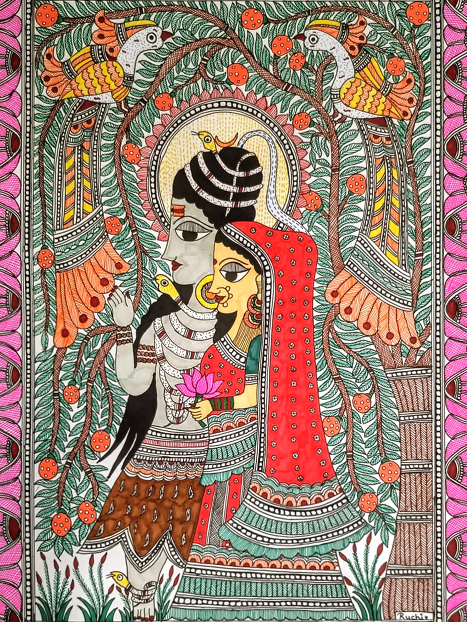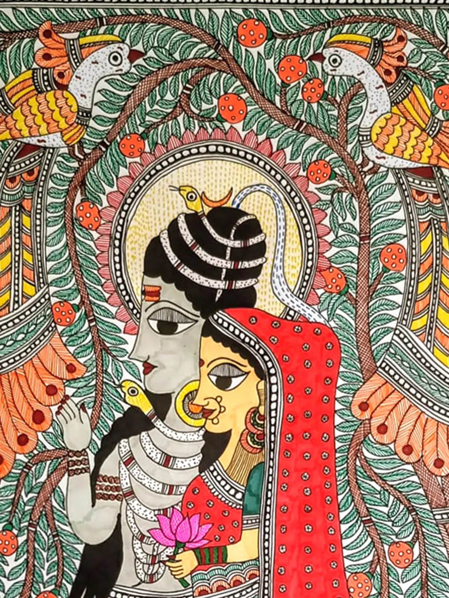 Gauri Ganesha (Goddess Parvati with Baby Ganesha) | Mysore Traditional Painting | With Frame