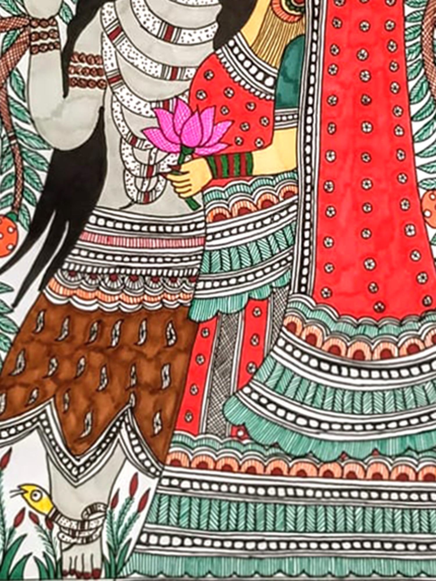 Standing Lord Perumal Tanjore Painting (Vishnu) with Devi Lakshmi | Super Embossed 3D Face Work | With Frame