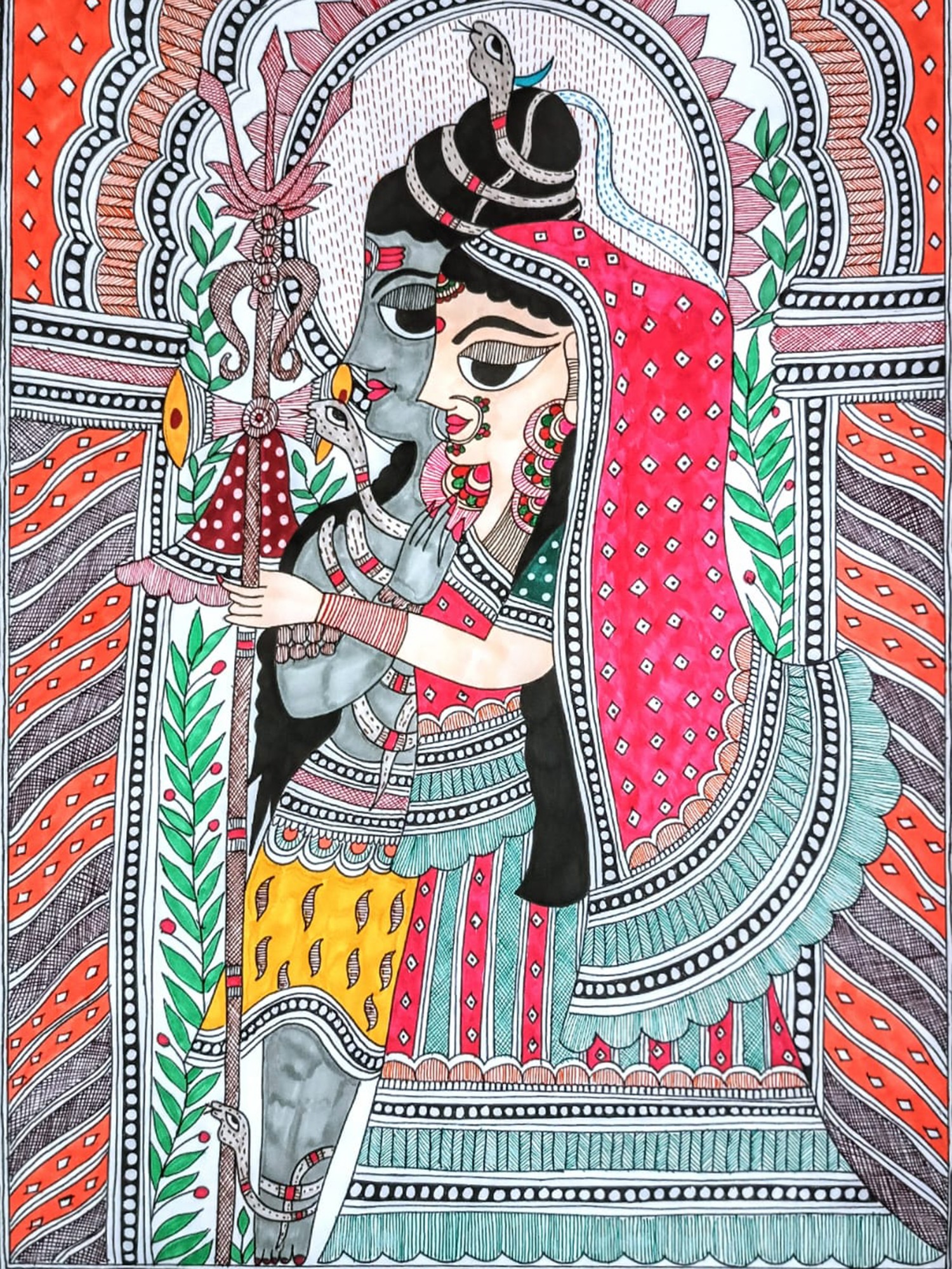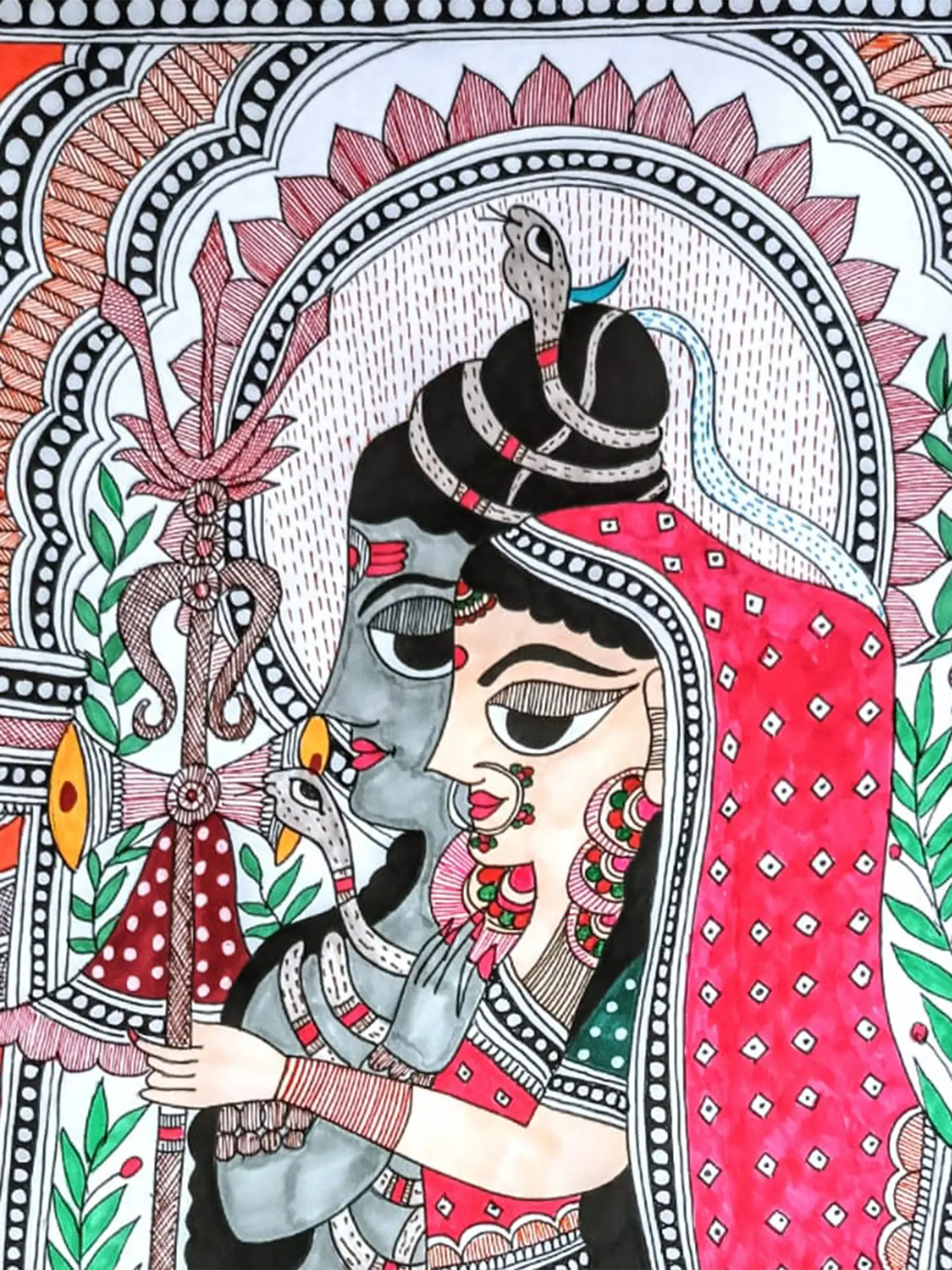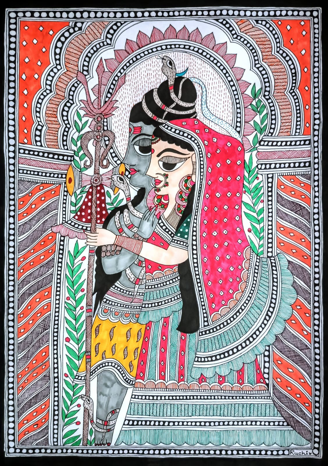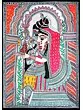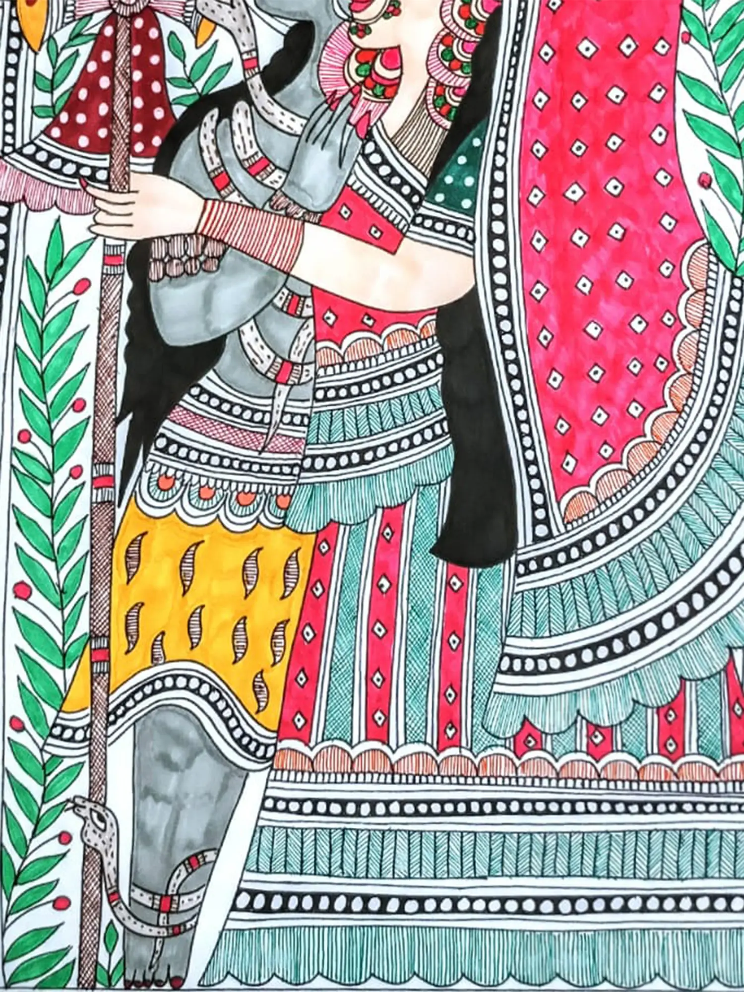 16" Goddess Durga Seated On Tiger | Natural Color On Wood Panel With Inlay Work