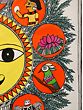 Rooted in the ancient art form of Madhubani, this painting is a representation of the interconnectedness between nature and human existence. Within this resplendent creation, the tree, a powerful motif, represents the sustenance of life, wisdom, and fertility, while its intricate patterns and vibrant colours reflect the rich tapestry of tradition and storytelling. Yet, it is the sun, with its majestic moustache and radiant smile, that holds the key to profound revelation. This celestial being, with eyes that mirror the secrets of the universe, represents the life-giving force, inspiring warmth and illuminating paths of enlightenment. Together, the tree and sun in harmonious union depict the eternal dance between light and life, inviting you to bask in the eternal beauty and wisdom that resides within the natural world.