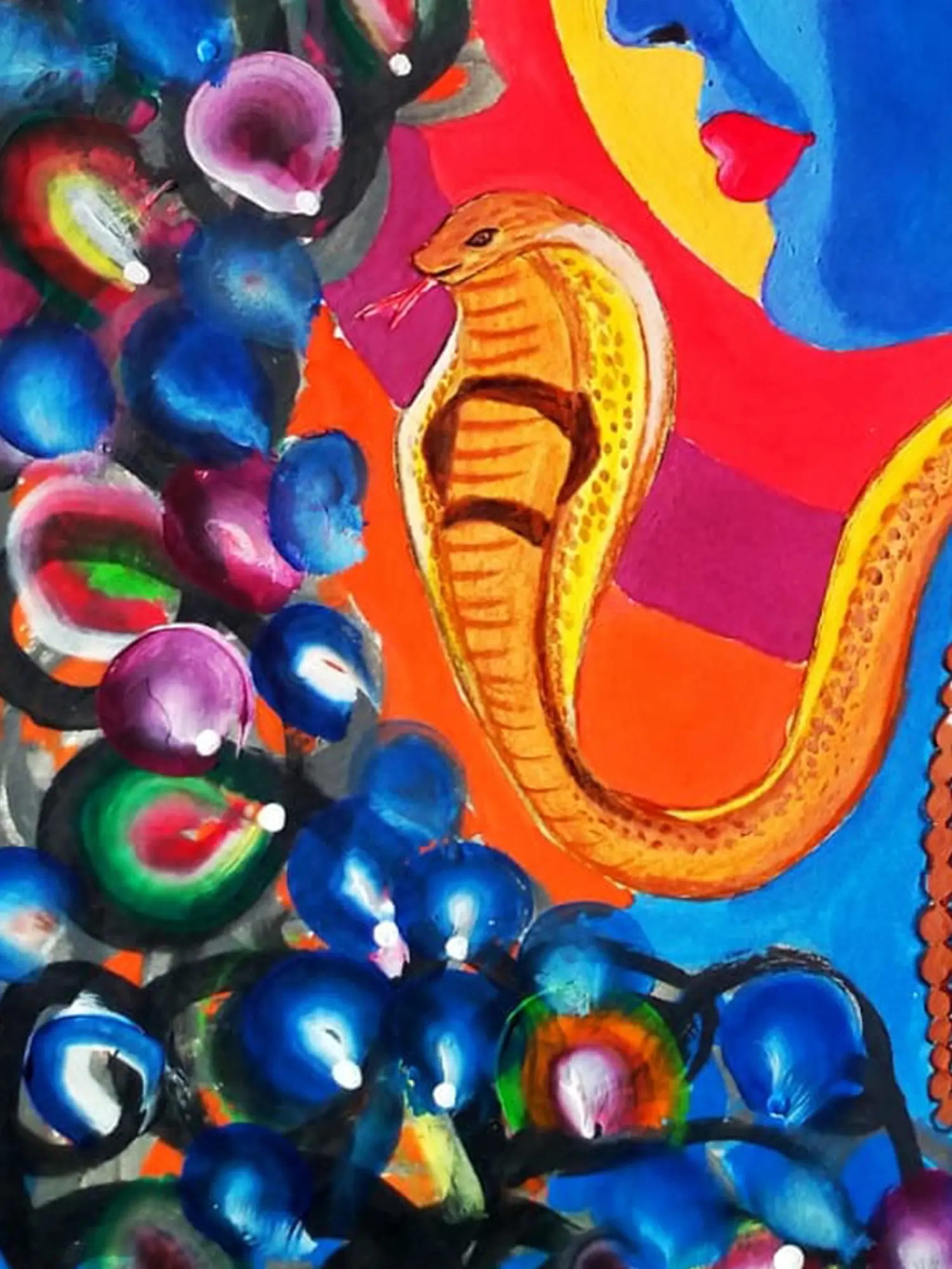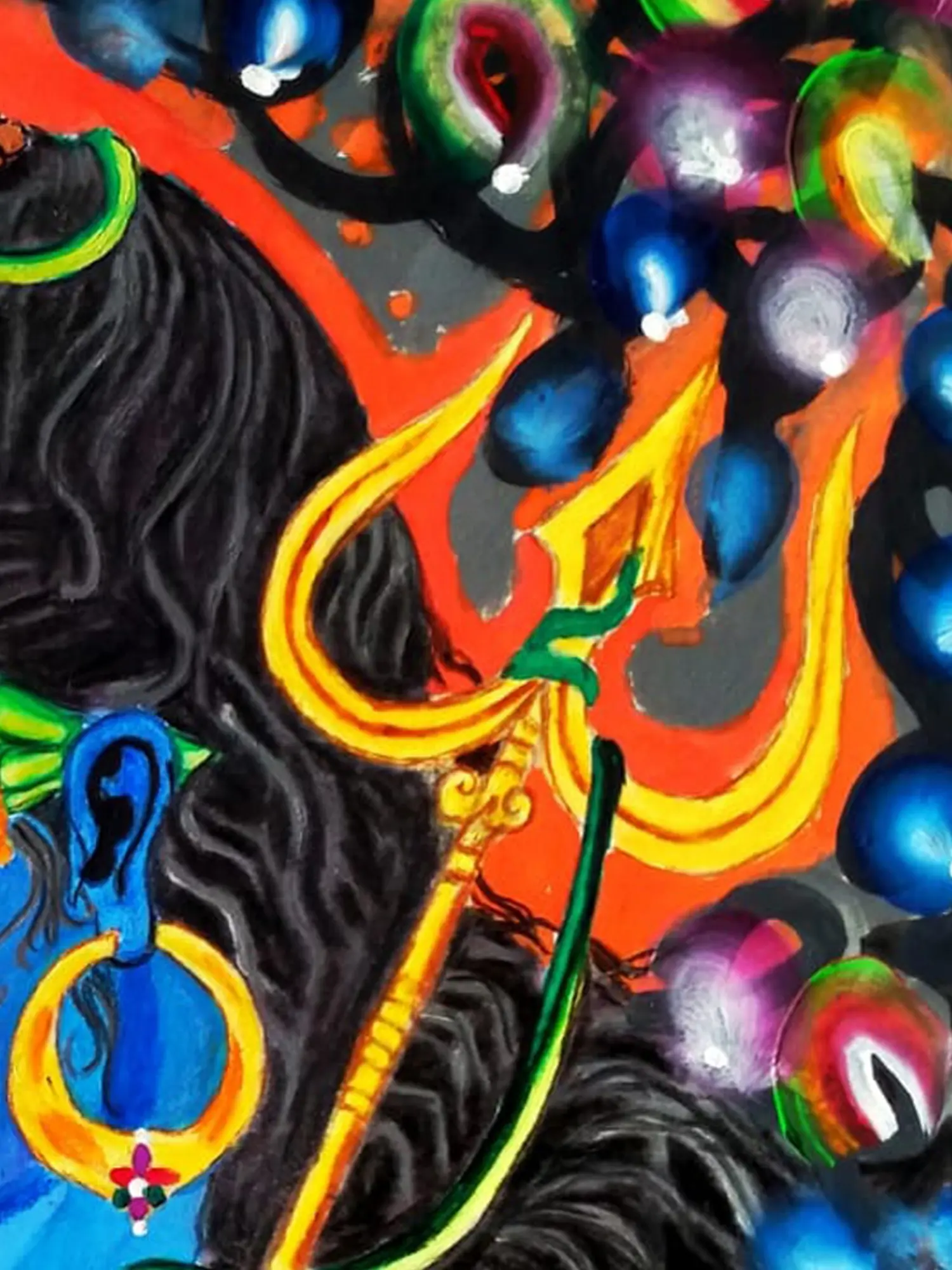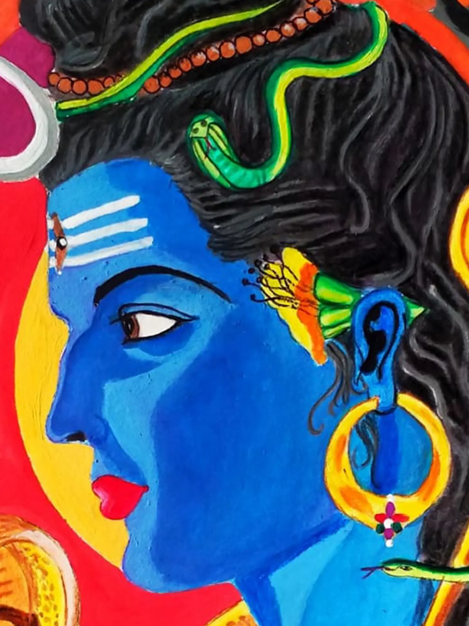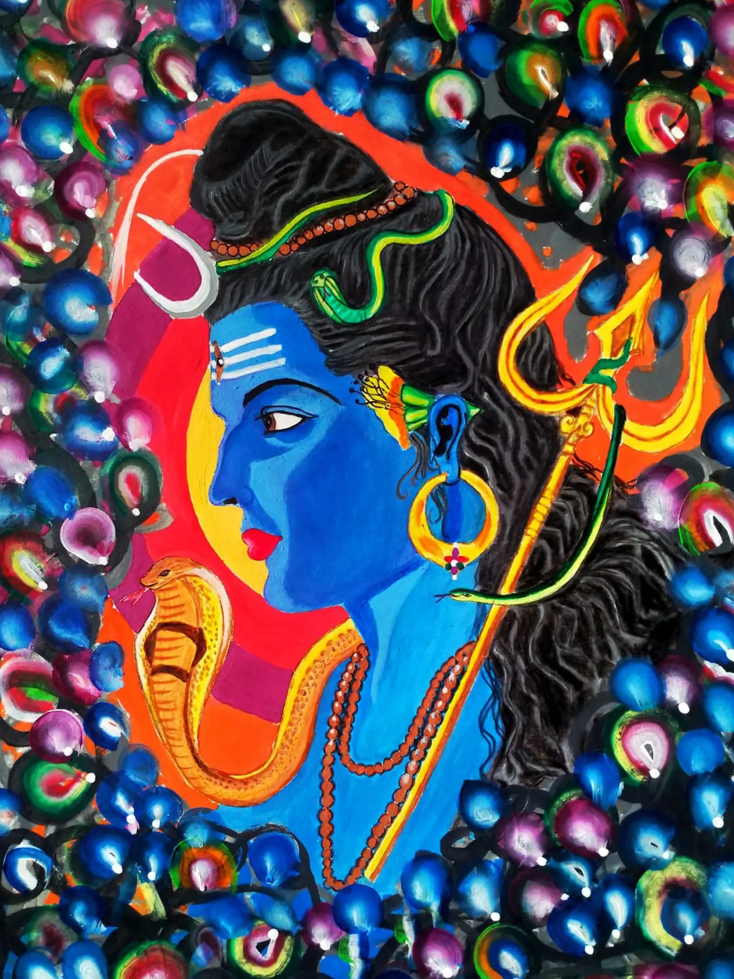 Behold the power of Mahadev in this captivating watercolour. Lord Shiva stands tall, his trident held aloft, rendered in bold watercolours that convey his strength and dominance. The artwork reflects the philosophy of Shiva as the destroyer of negativity and the protector of dharma.