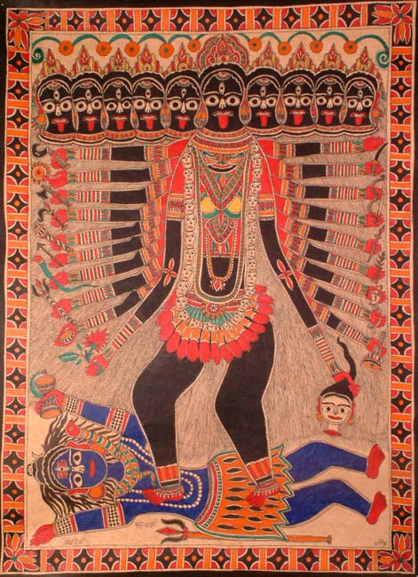 Madhubani Painting on Hand Made Paper treated with Cow DungArtist Vidya Devi and Dhirendra Jha