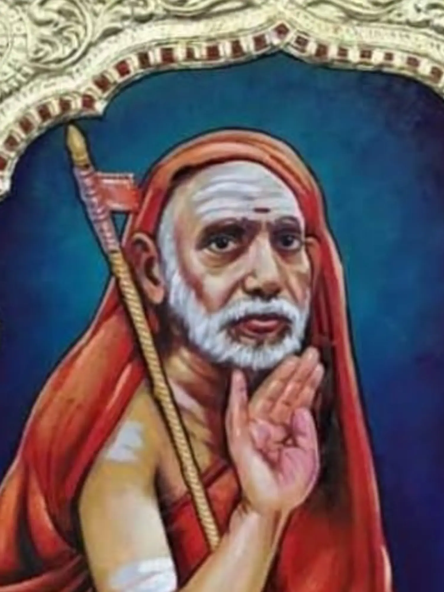 For the devotees, Maha Periyava's serene and reassuring eyes and uplifted hand in benediction, while dressed in his typical ascetic attire, is a powerful vision.