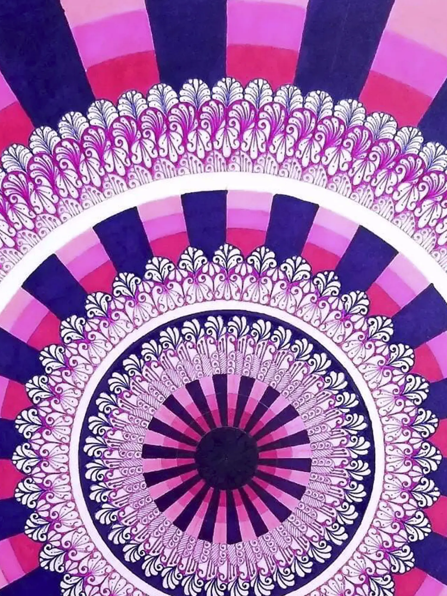 This Mandala Art with Abstract made with Fineliner and Gouache color on Paper is a spiritual art by Manisha. Fineliner mandala art holds profound significance as a therapeutic and spiritual expression. The mandala, a sacred geometric form, represents unity and cosmic order. The fine lines, meticulously drawn, guide the observer into a meditative trance, fostering mindfulness and relaxation.