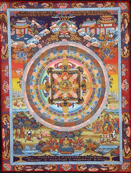All round the mandala are various narrative scenes from the life of Buddha.