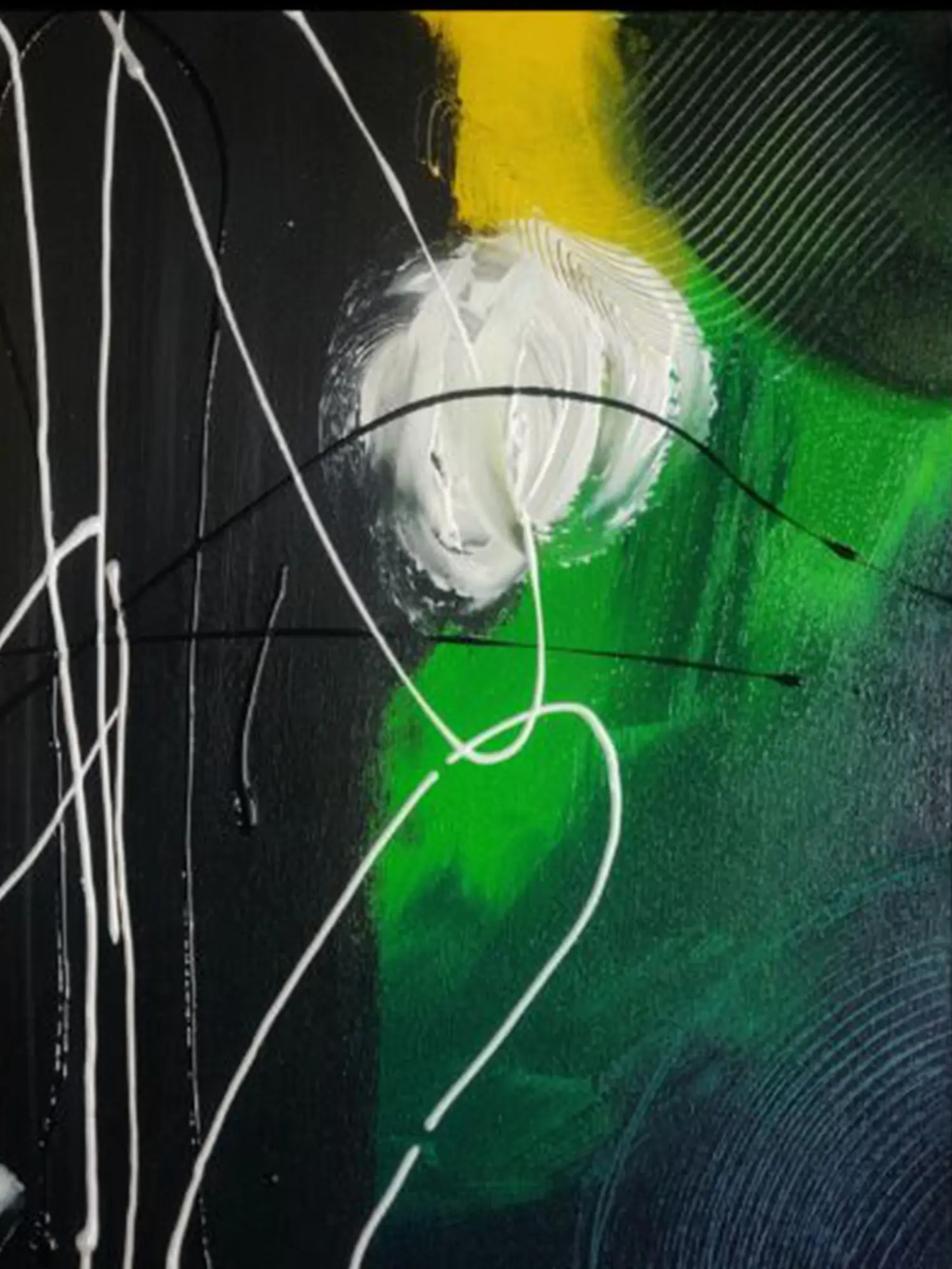 Crafted with acrylic on canvas, the artist employs a range of techniques to bring this vision to life. The fluid nature of acrylic allows for both bold strokes and delicate nuances. Notice how the thick impasto in the white swirls adds texture and dimension, creating a tactile quality that invites you to reach out and touch. The spontaneous, swirling lines cut across the canvas, injecting a sense of movement and dynamism. They dance and weave, hinting at the unpredictable nature of life itself, the capricious hand of fate that guides our journeys, much like the threads spun by the Greek Moirae, the goddesses of destiny.