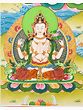 Tibetan Chenrezig (Avalokiteshvara) with Manjushree and Vajrapani Brocadeless Thangka