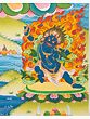 A Thangka is a traditional Tibetan Buddhist painting that usually depicts a Buddhist Deity (Buddha or Bodhisattva), a scene, or a mandala. These paintings are considered important paraphernalia in Buddhist rituals. They are used to teach the life of the Buddha, various lamas, and Bodhisattvas to the monastic students, and are also useful in visualizing the deity while meditating. One of the most important subjects of thangkas is the Bhavacakra (the wheel of life) which depicts the Art of Enlightenment. It is believed that Thangka paintings were developed over the centuries from the murals, of which only a few can be seen in the Ajanta caves in India and the Mogao caves in Gansu Province, Tibet.