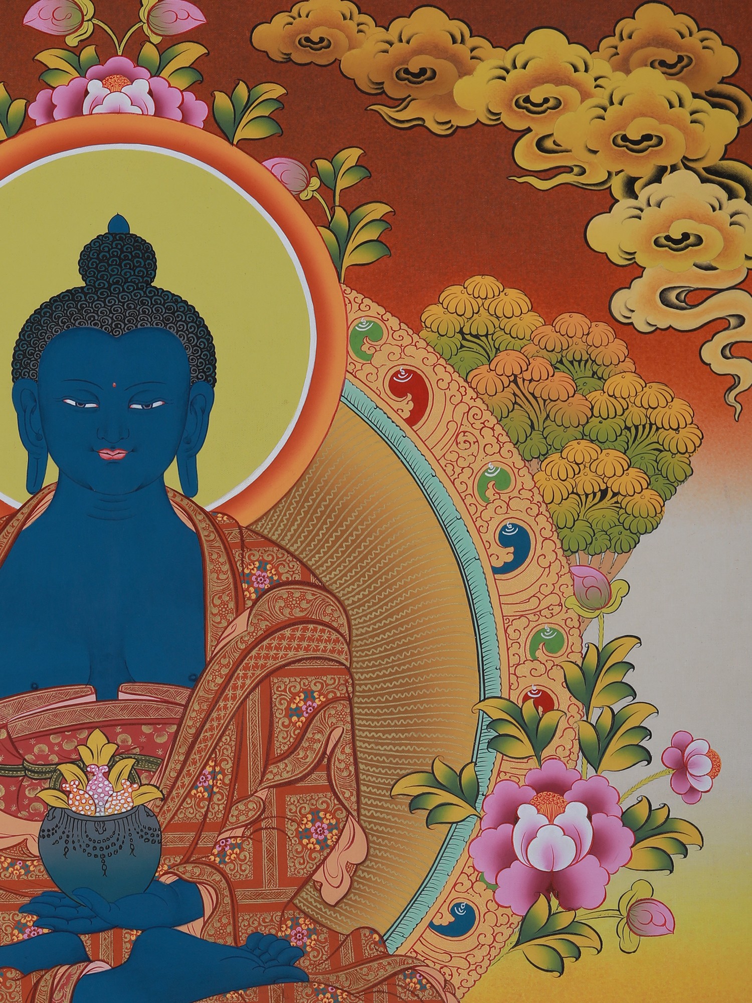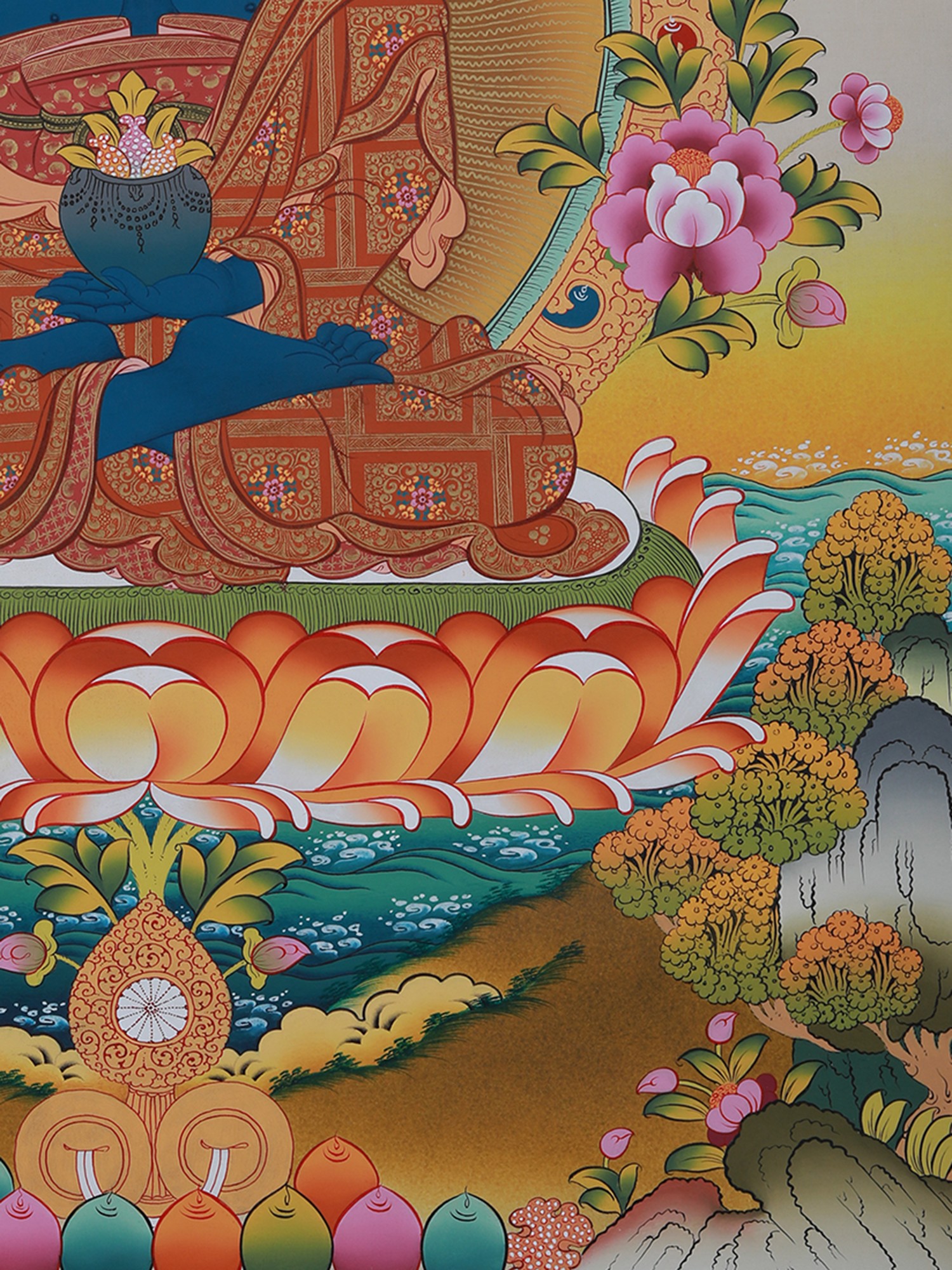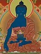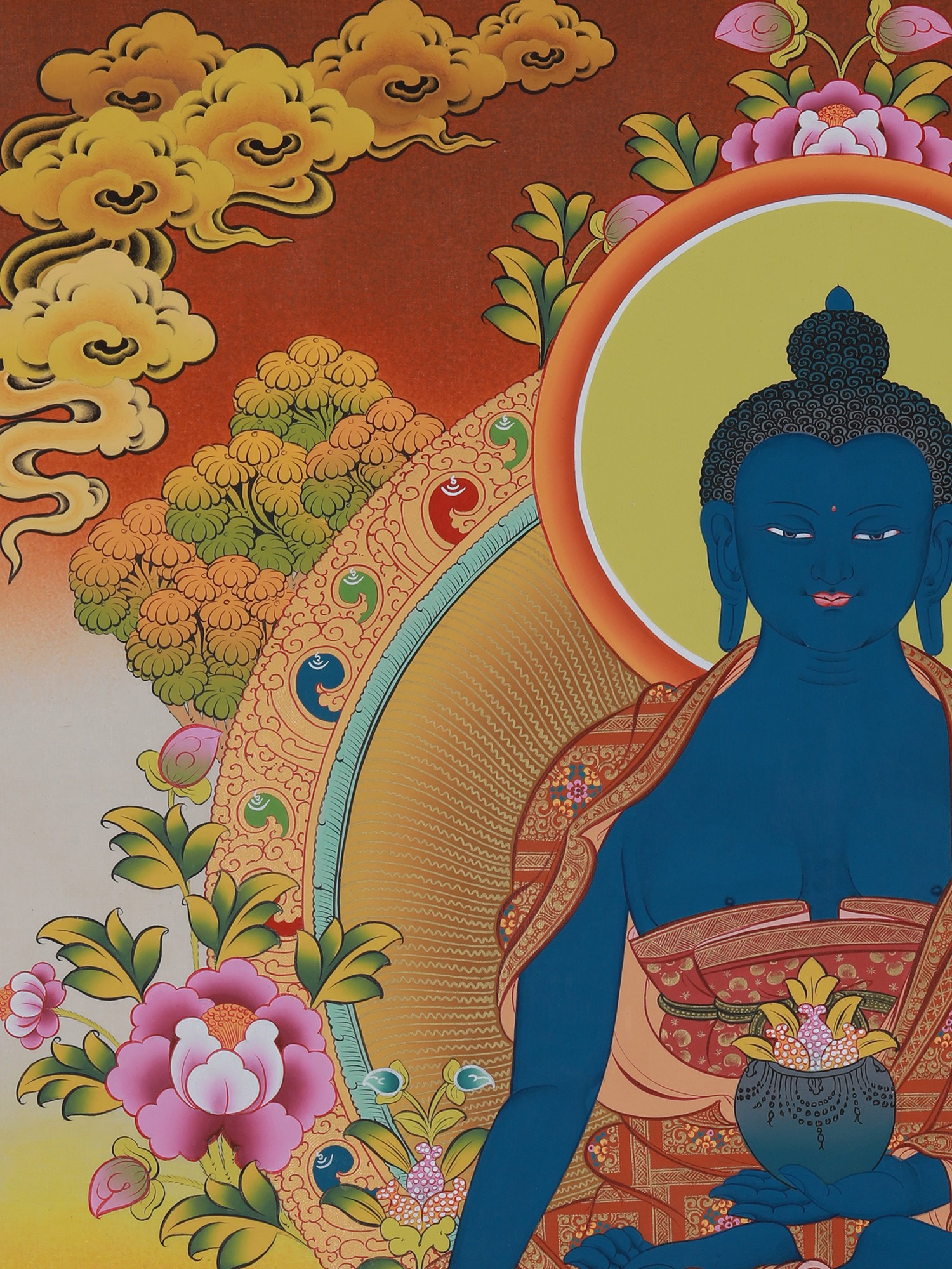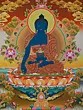 Superfine Medicine Buddha On The Six-Ornament Throne of Enlightenment in His Universe - Tibetan Buddhist Brocadeless Thangka