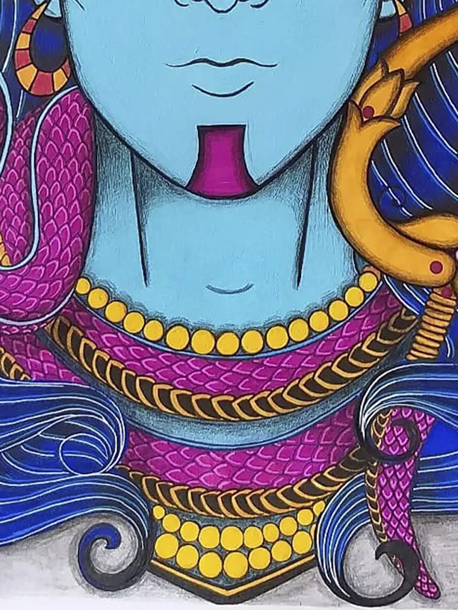 Embark on a journey of spiritual transcendence with our Meditating Lord Shiva Painting. Made with detail using fineliner and gouache colour on paper, this piece captures the divine essence of the cosmic meditator. Lord Shiva, adorned with serpents and immersed in meditation, radiates serenity and wisdom. Each brushstroke reverberates with the energy of creation and destruction, inviting contemplation and introspection.