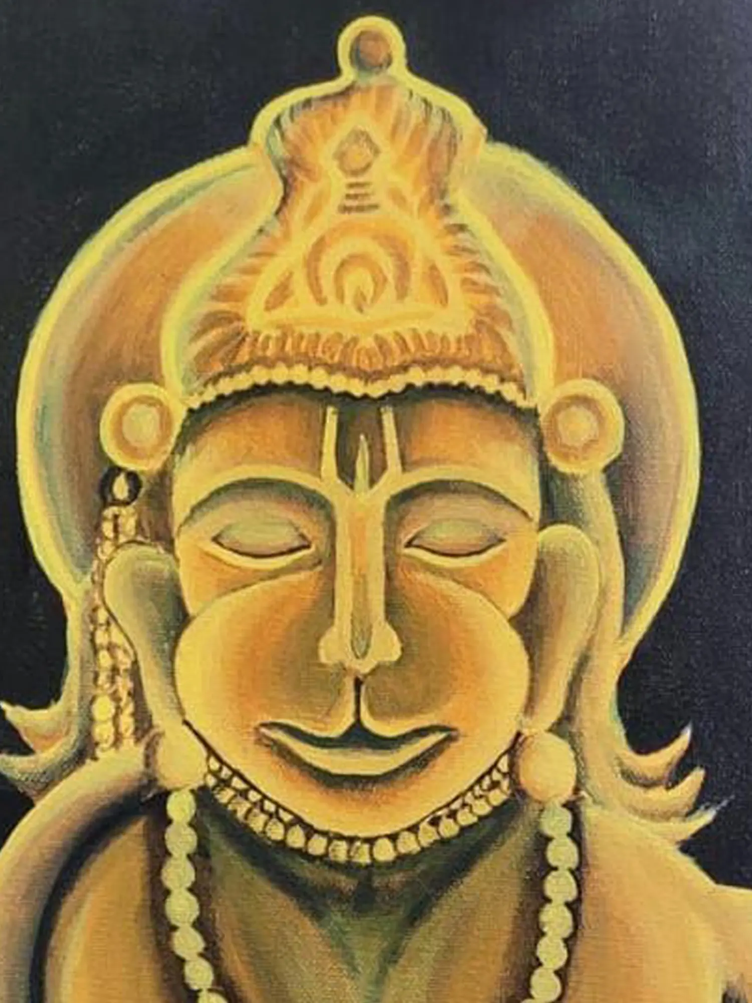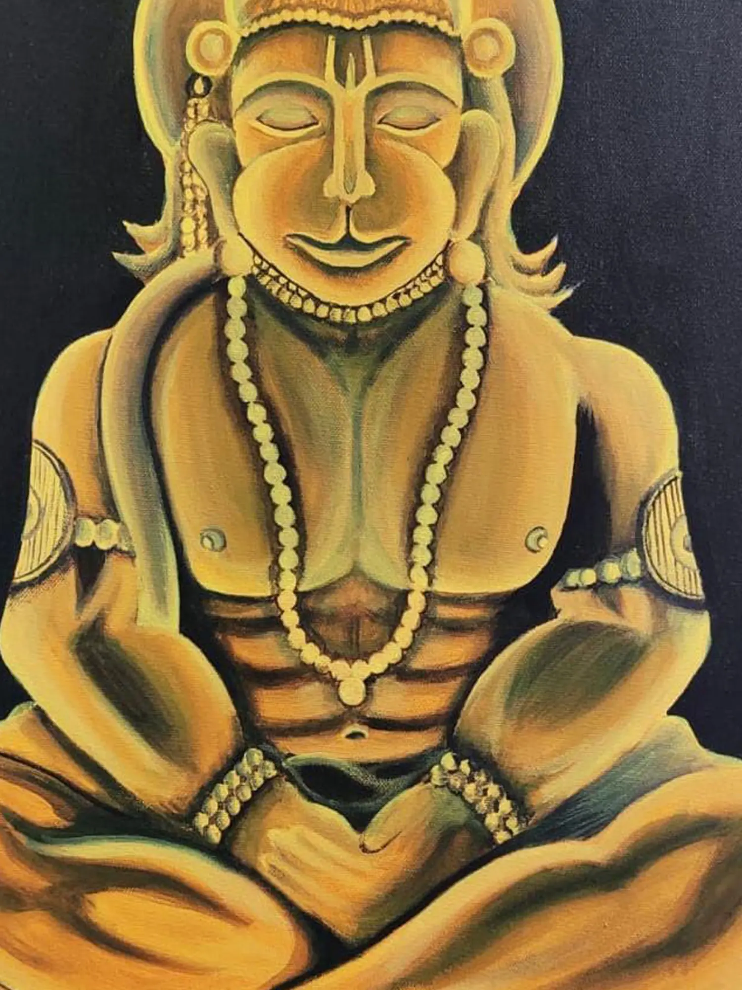 Lord Hanuman Sings Bhajans of Rama | Oil Painting on Canvas