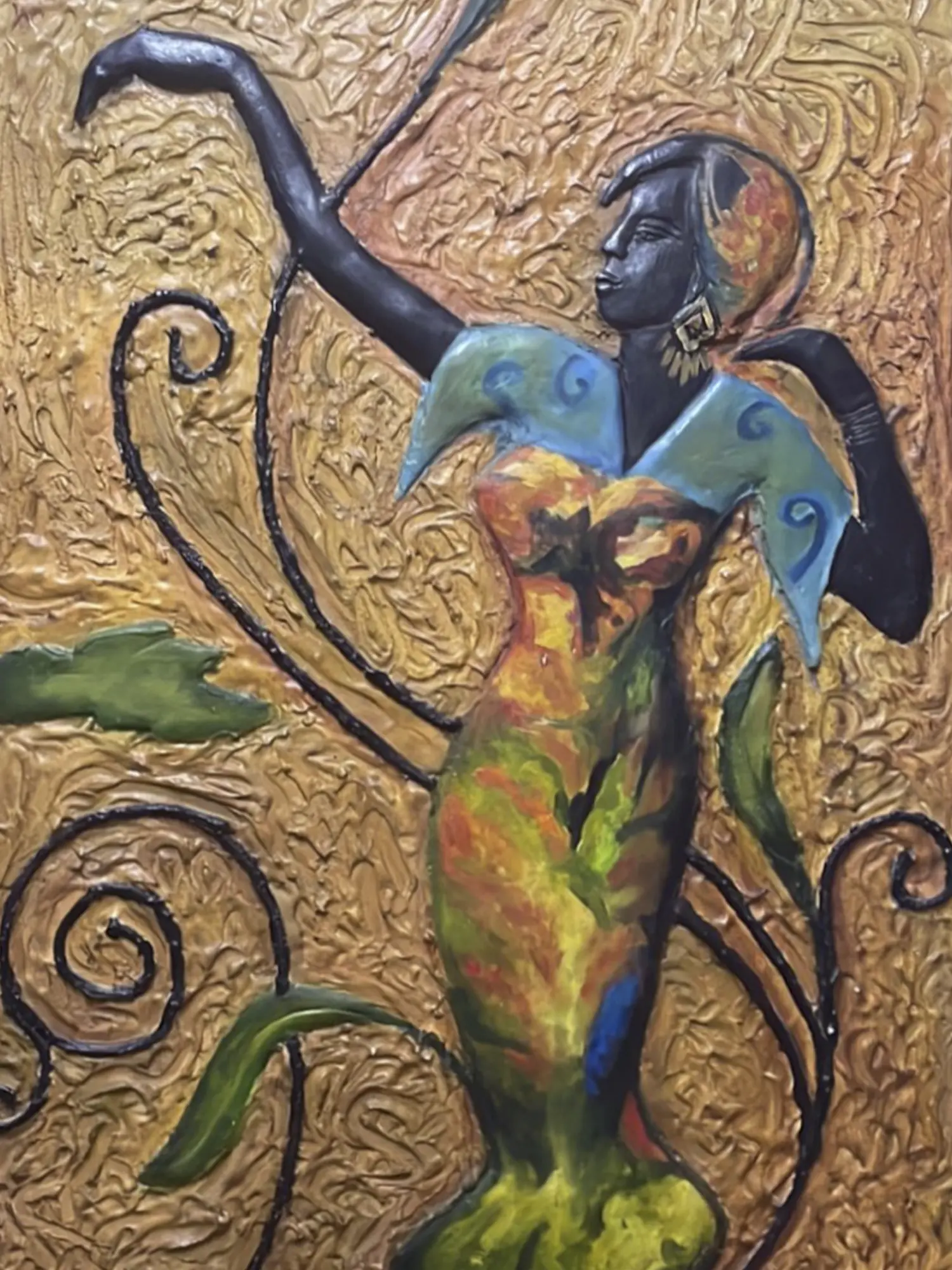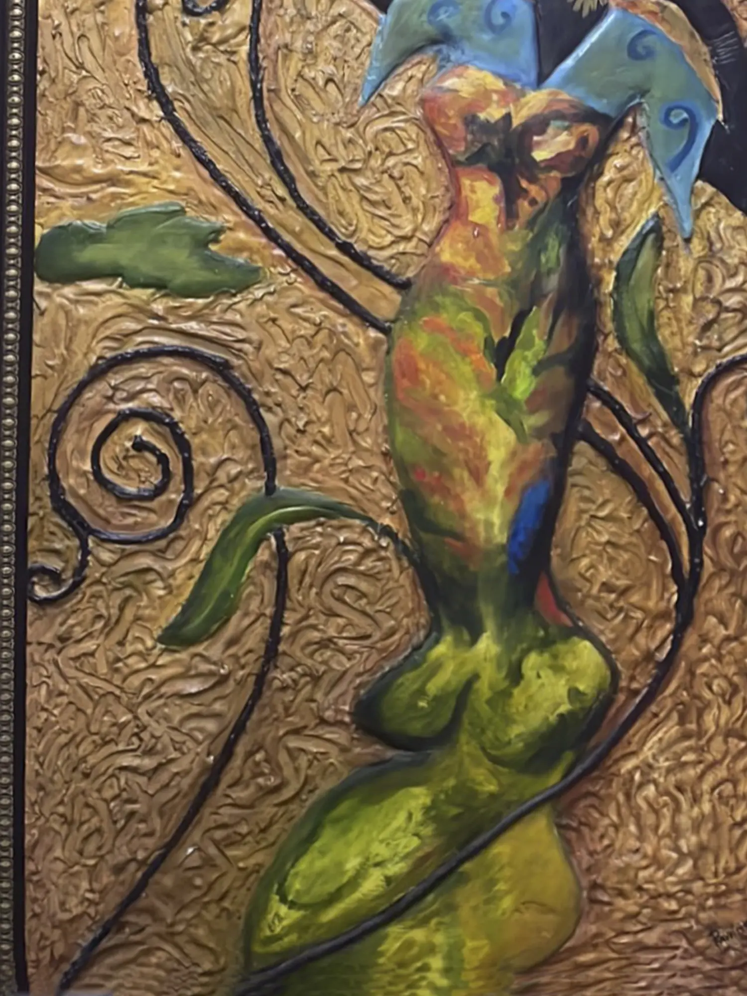 The acrylic painting of a mermaid enchants with its ethereal beauty and mythical allure. Against a backdrop of azure waters and shimmering waves, the mermaid emerges as a symbol of mystery and transformation. With fluid brushstrokes and iridescent hues, the artwork captures the mermaid's enigmatic presence, inviting viewers into a realm of fantasy and wonder. Through its dreamlike imagery and poetic resonance, the painting evokes a sense of longing and enchantment, inspiring reflection on the untamed spirit of the sea and the eternal allure of the unknown.