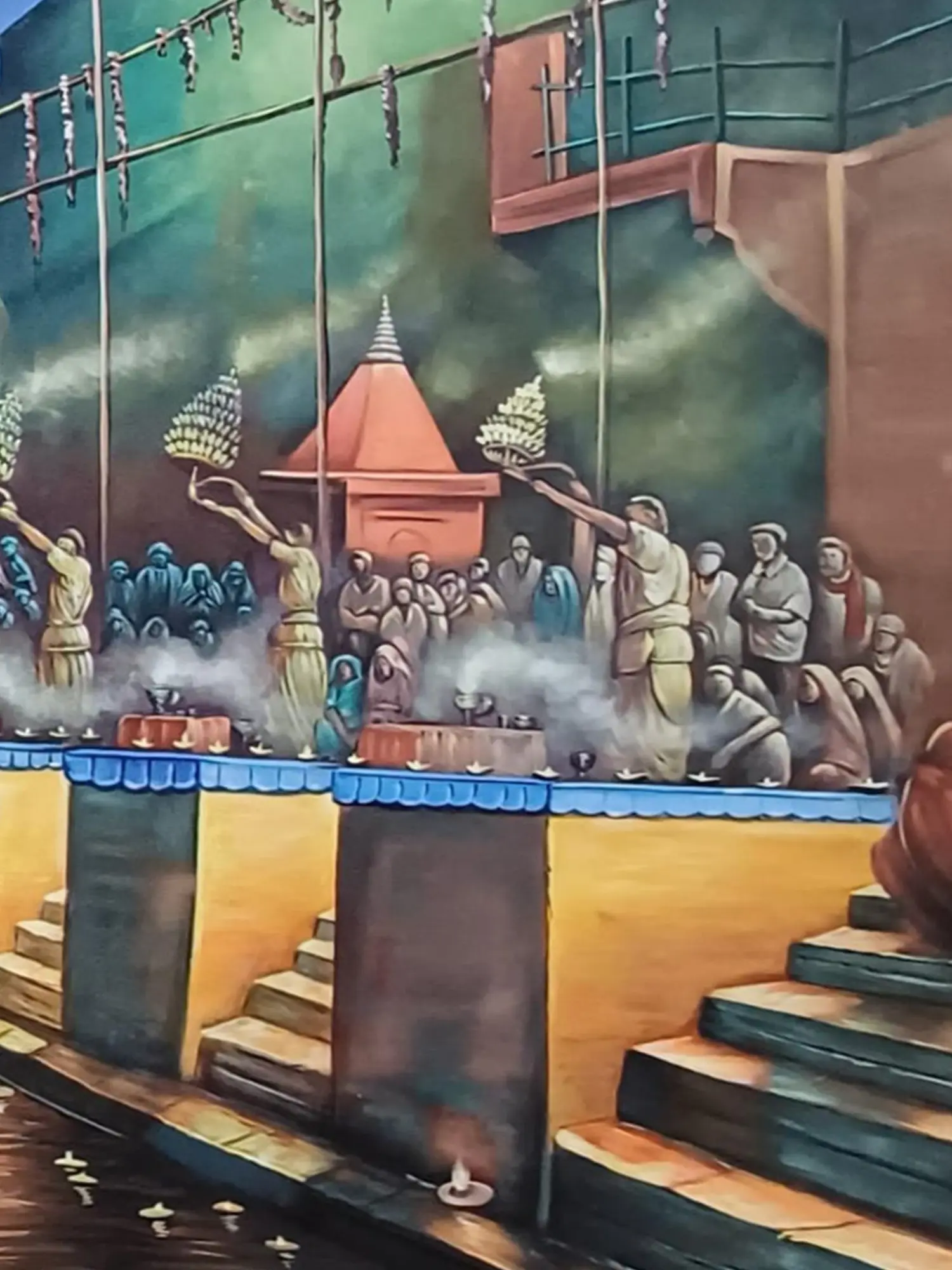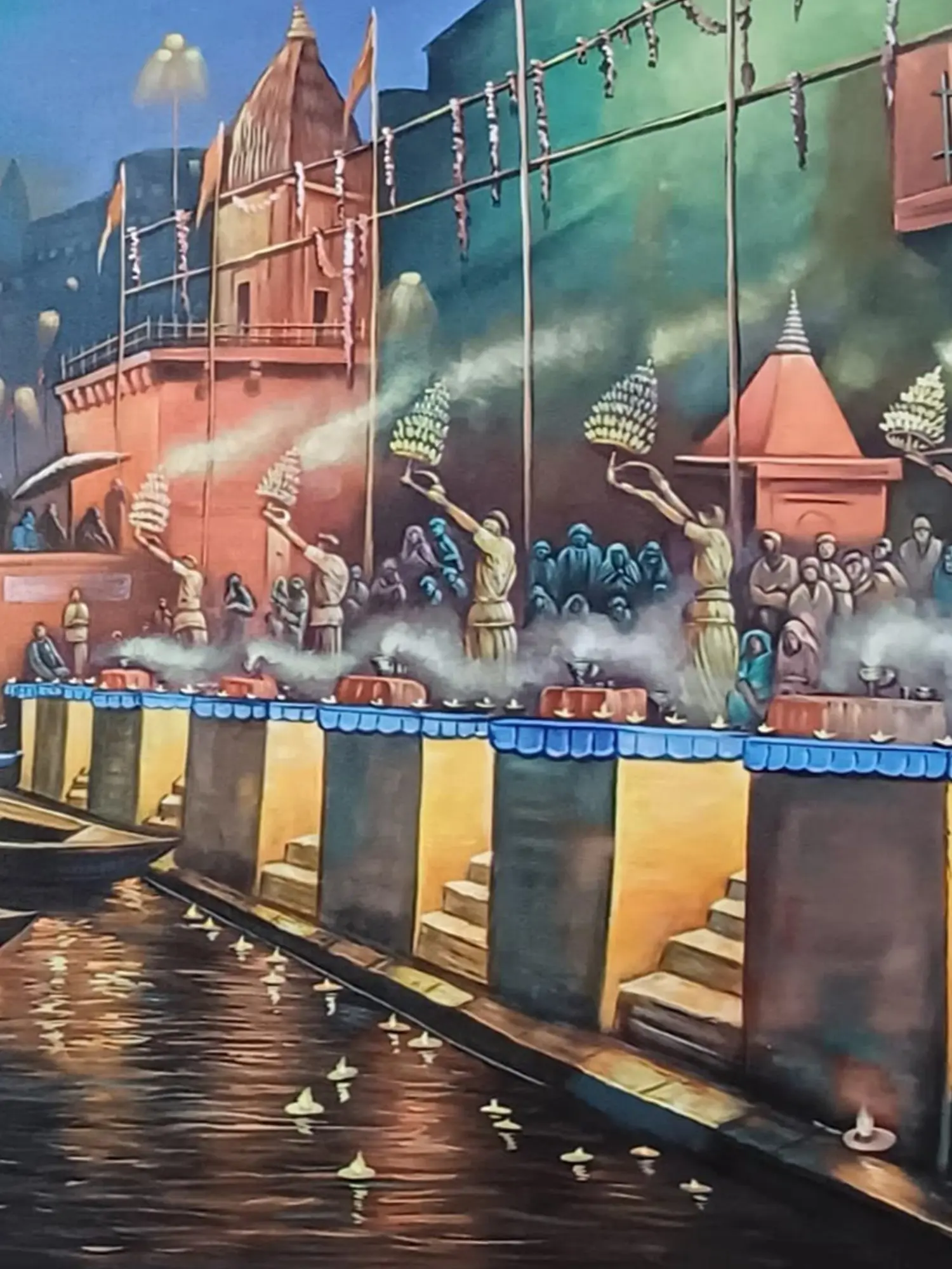 Morning Aarti At Varanasi Ghat | Oil Painting On Canvas | By Jagriti Bhardwaj