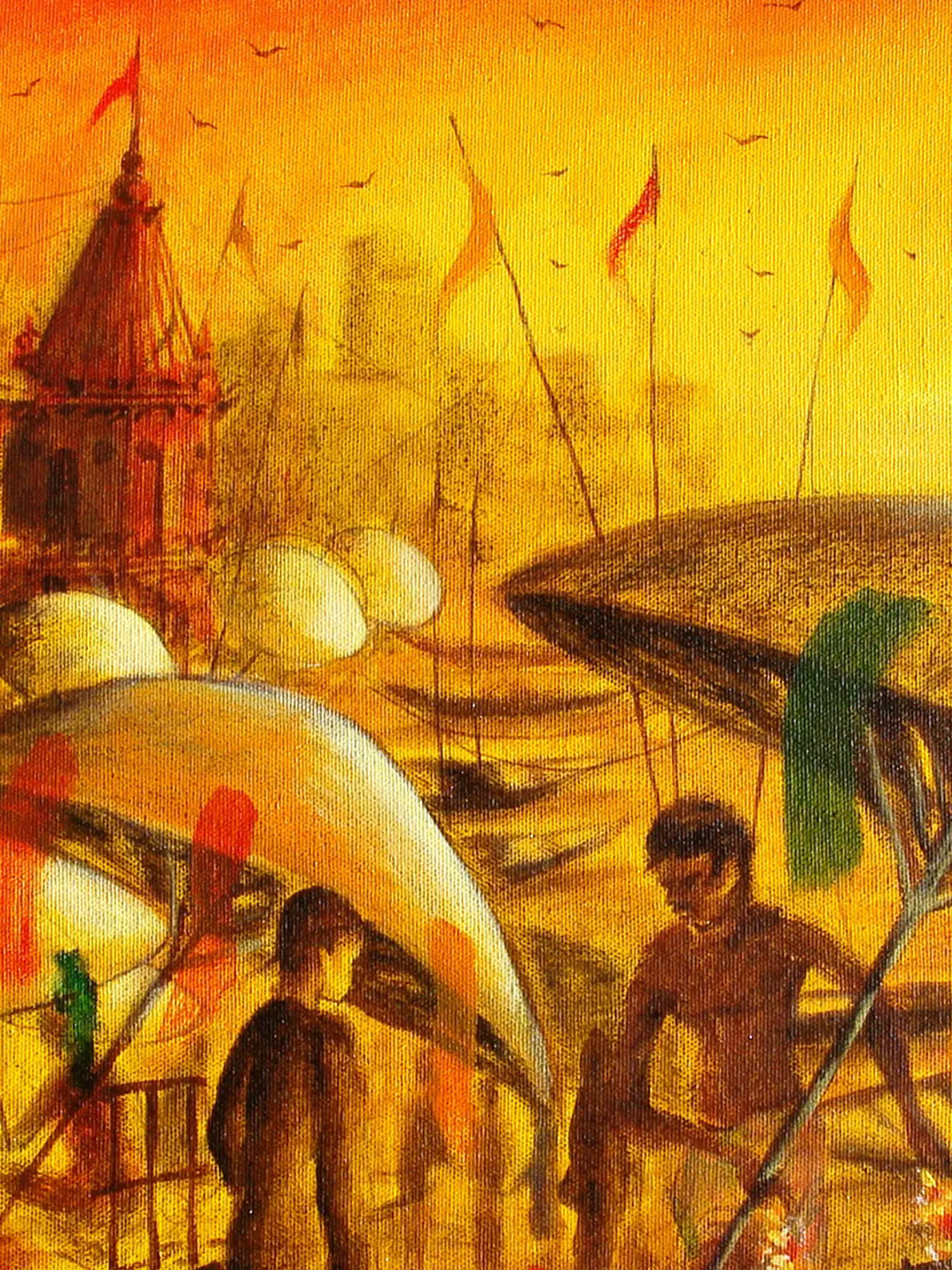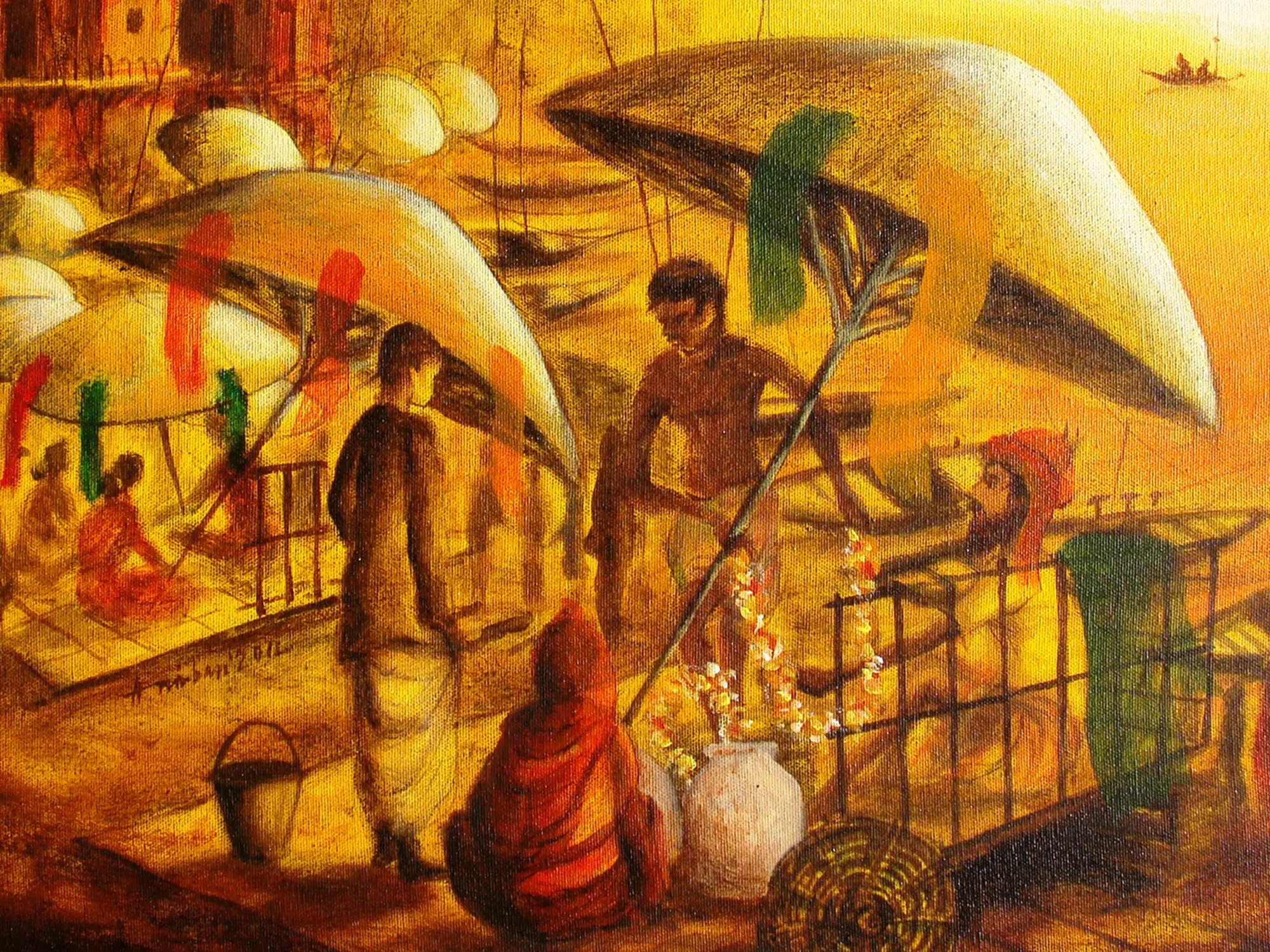 Vibrant Ghats Of Varanasi | Acrylic On Canvas | By Anirban Seth