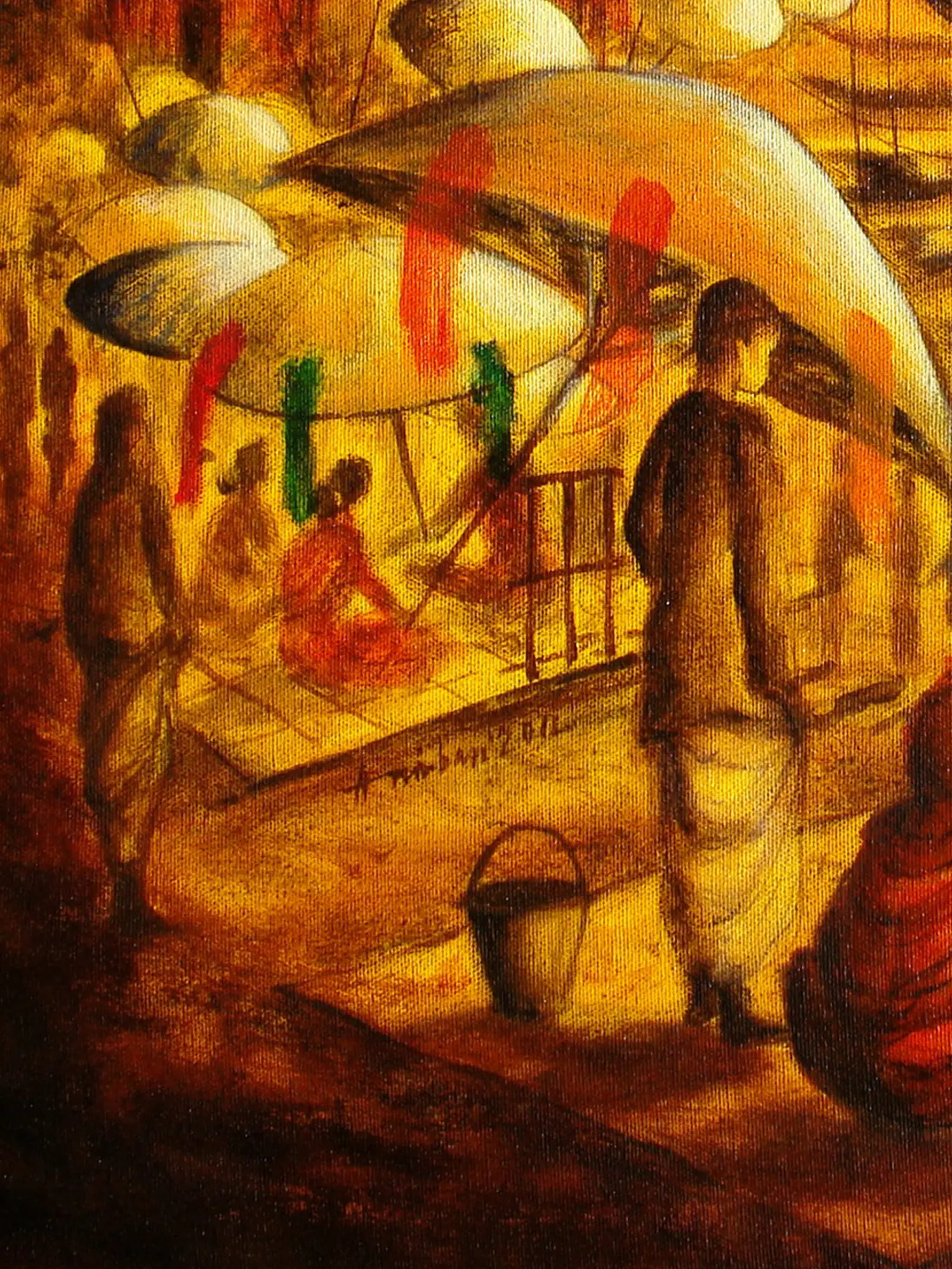 Devotees In Varanasi Ghat | Acrylic On Canvas | By Anirban Seth