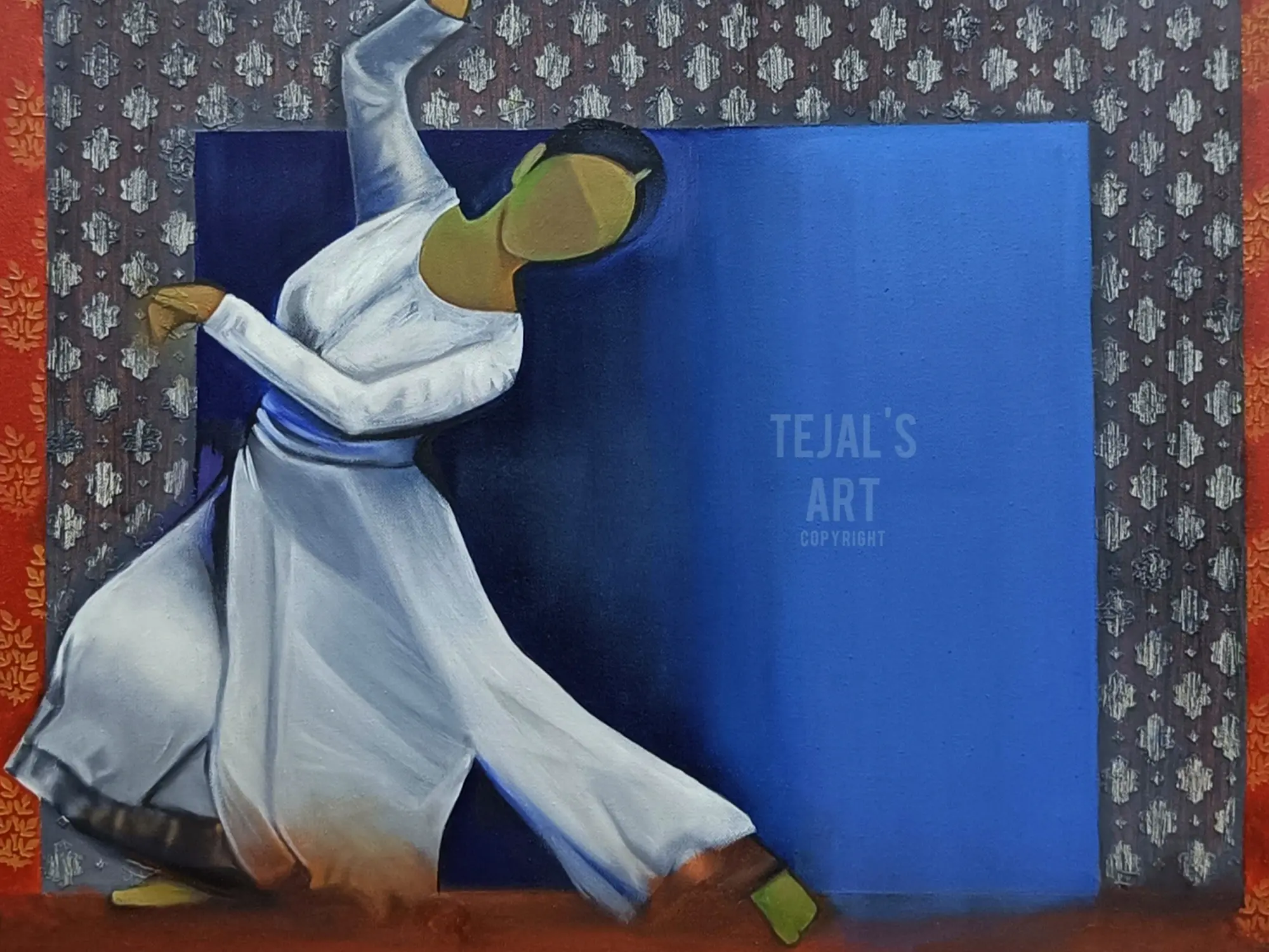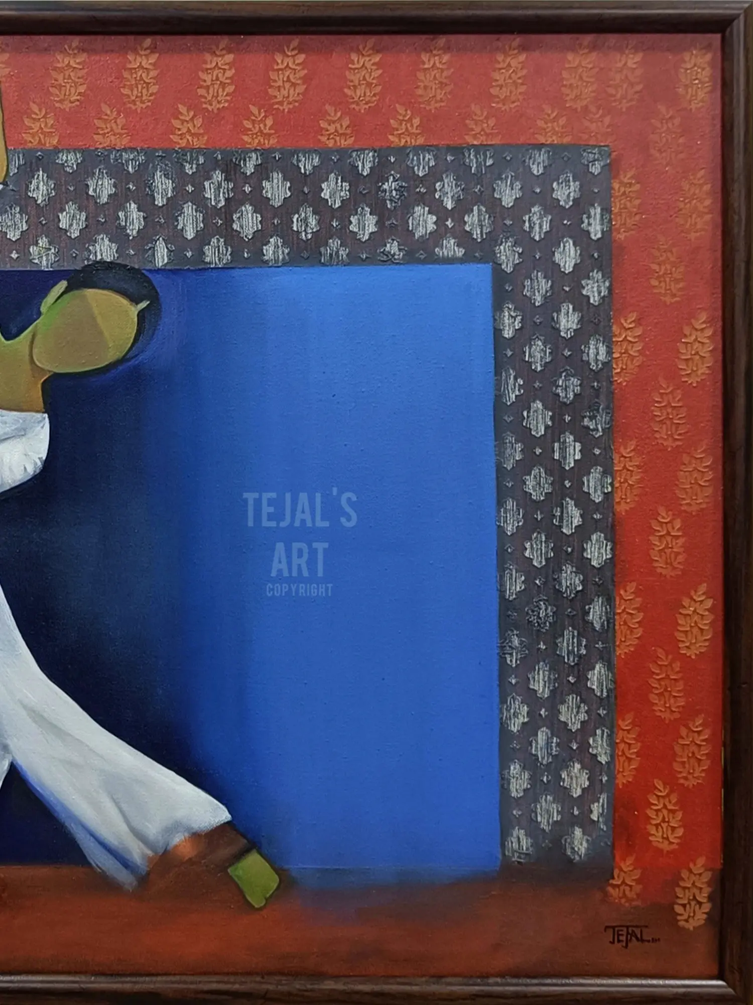"Mudra" is a mesmerizing portrayal of a graceful dancer, immortalised through the strokes of oil on canvas. The artist captures the poetry of dance, where every movement is a conversation between body and soul. The colour palette dances in harmony, reflecting the emotive richness of the art form. Feel the rhythm, savour the elegance – this oil painting transcends the visual, inviting you to join the dance of life.