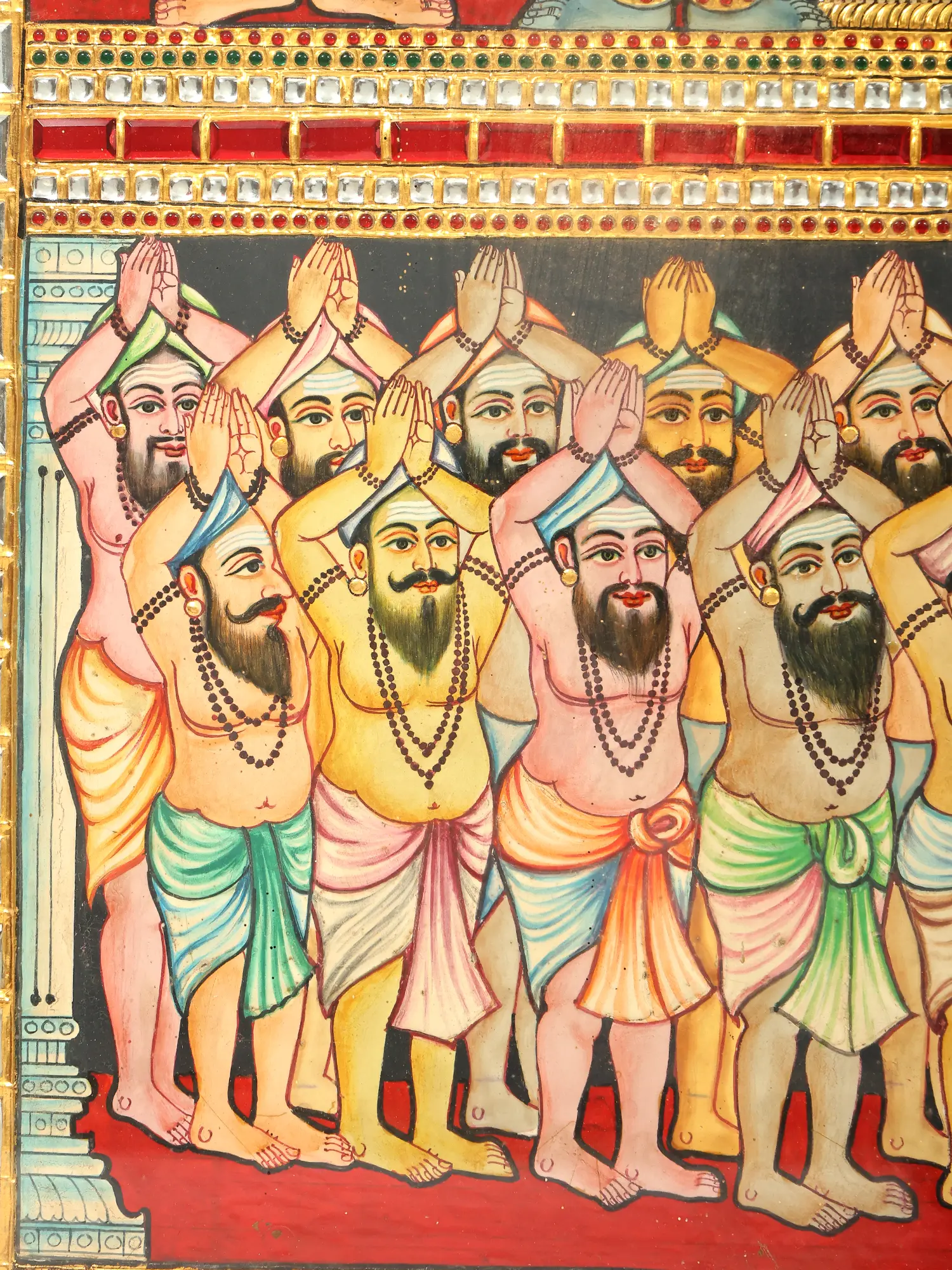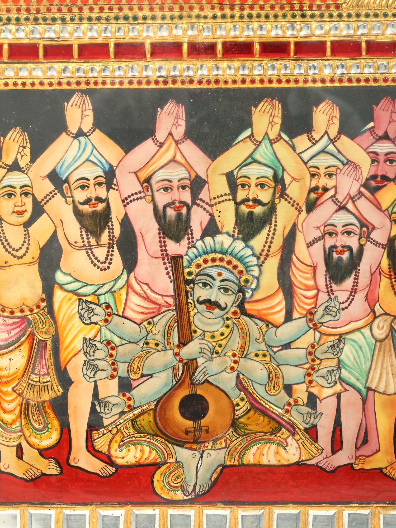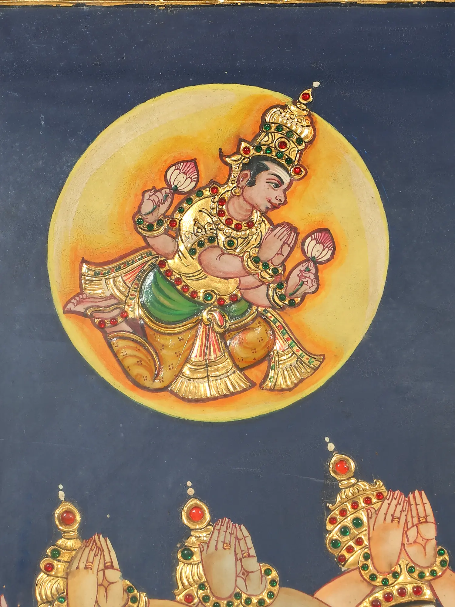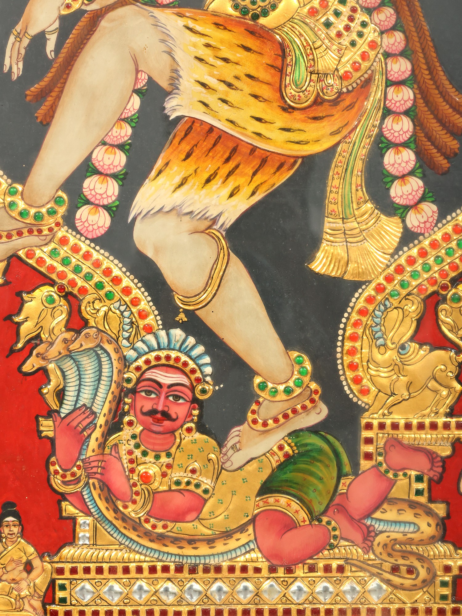 Large Urdhva Tandav (Dancing Shiva) Tanjore Painting | Traditional Colors With 24K Gold | Teakwood Frame | Gold & Wood