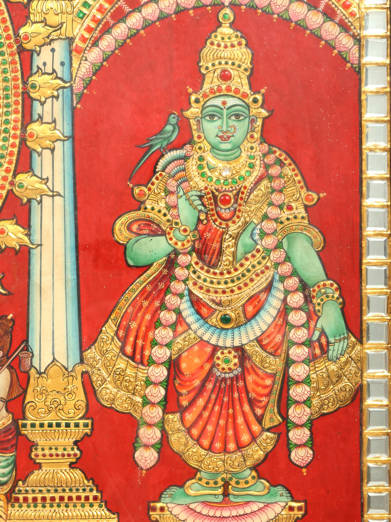Lord Krishna and Rukmini - Handmade Tanjore Painting | Traditional Colors with 24 Karat Gold | With Frame