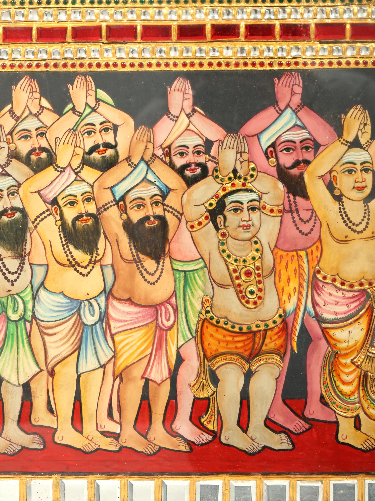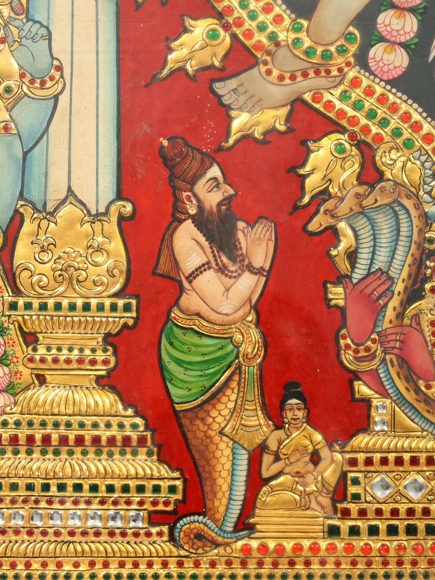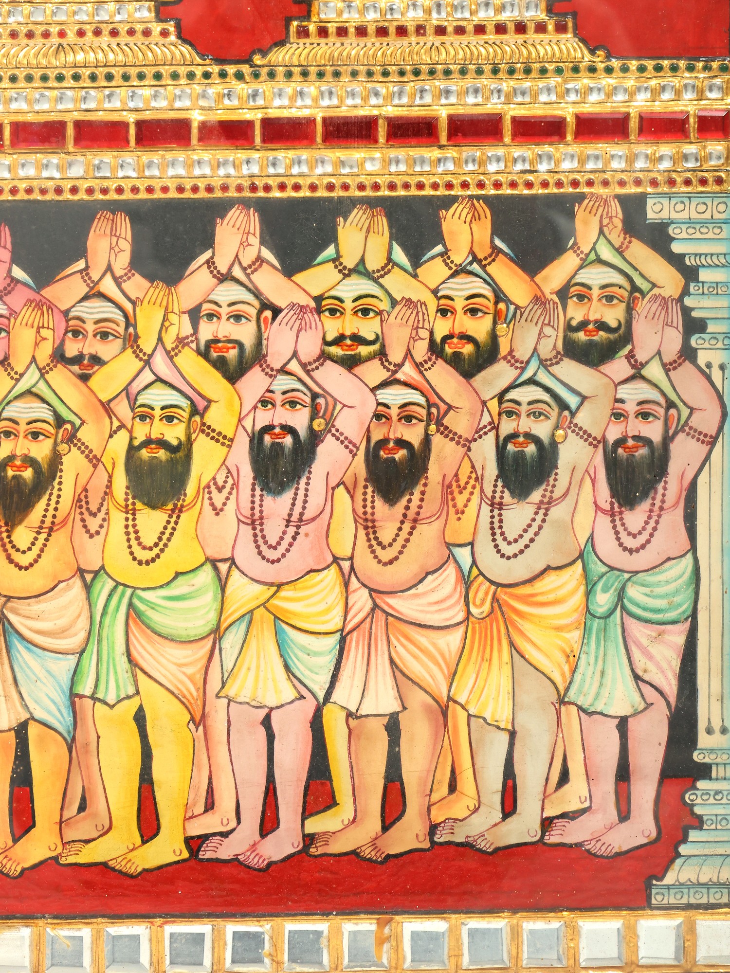 Kamadhenu Cow with Vashist Muni | 24 Karat Gold Work Embossed Tanjore Painting with Vintage Frame