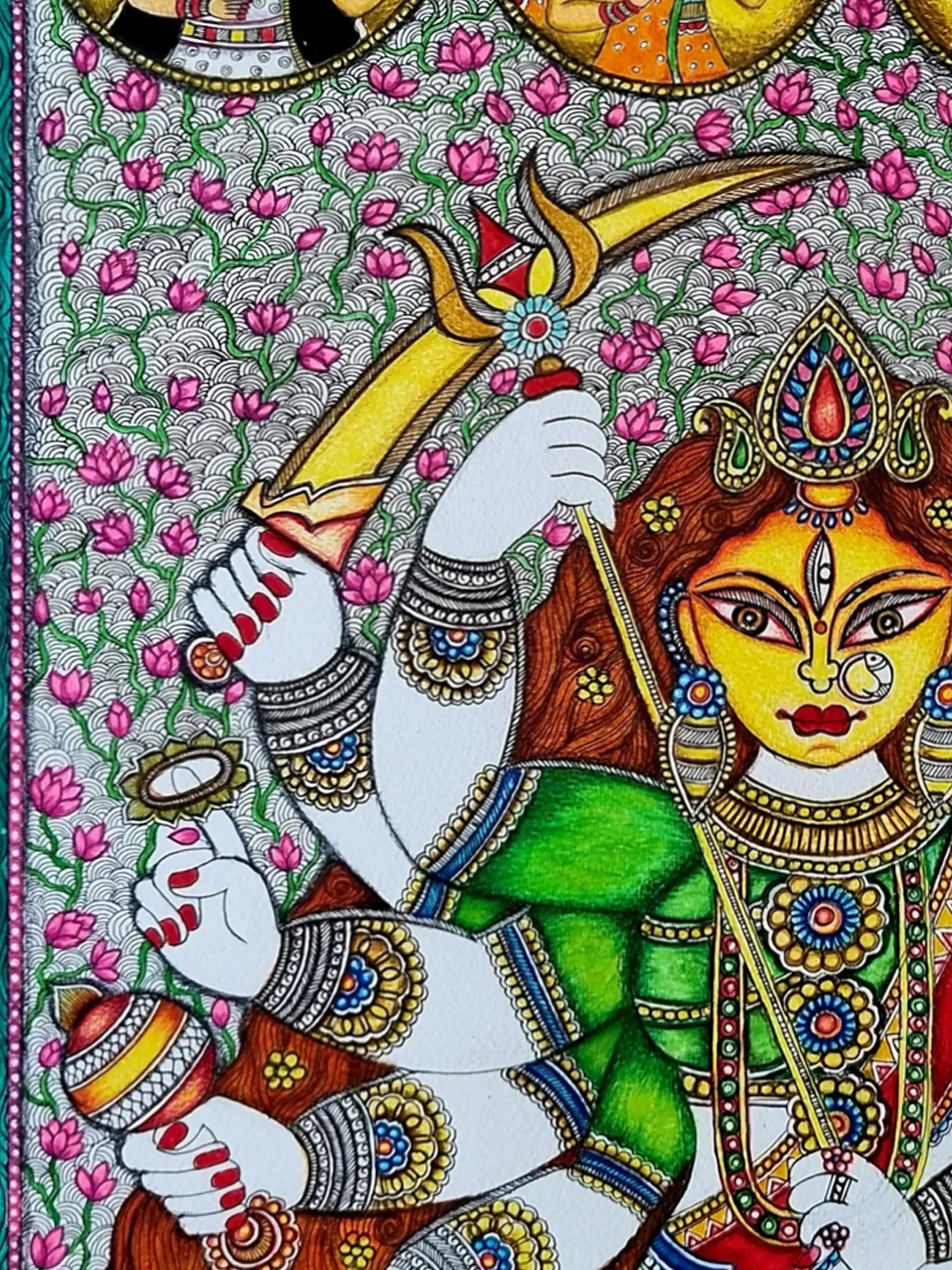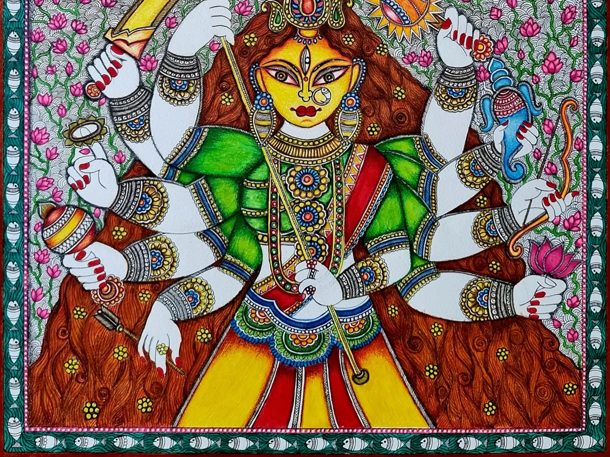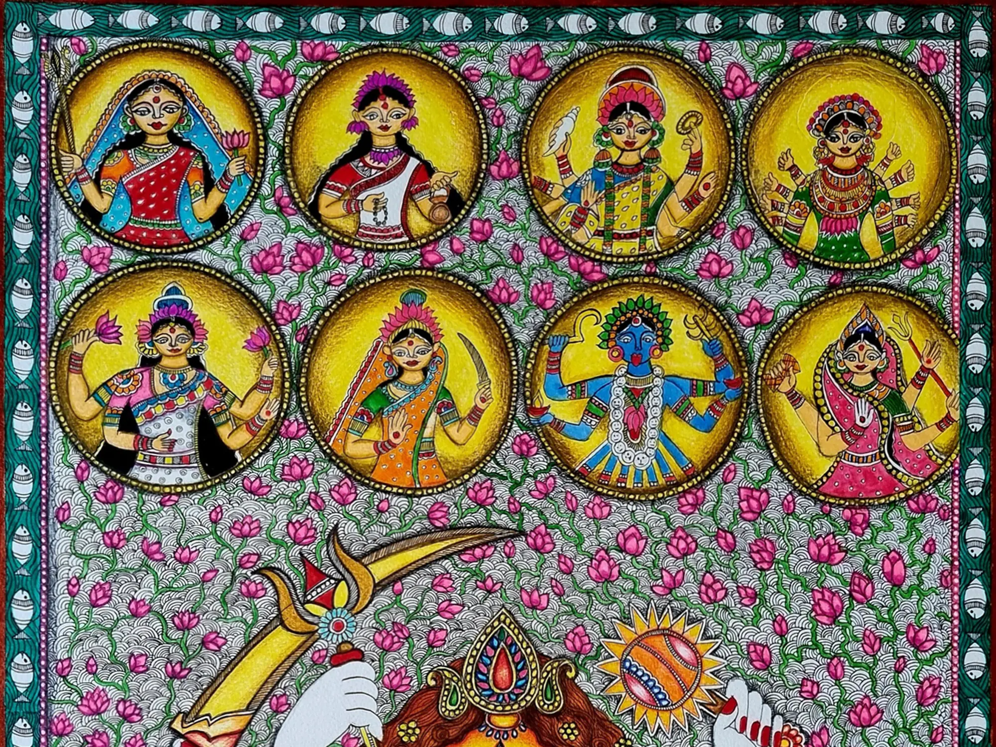 powerful mixed media artwork celebrates the nine forms of Durga, the embodiment