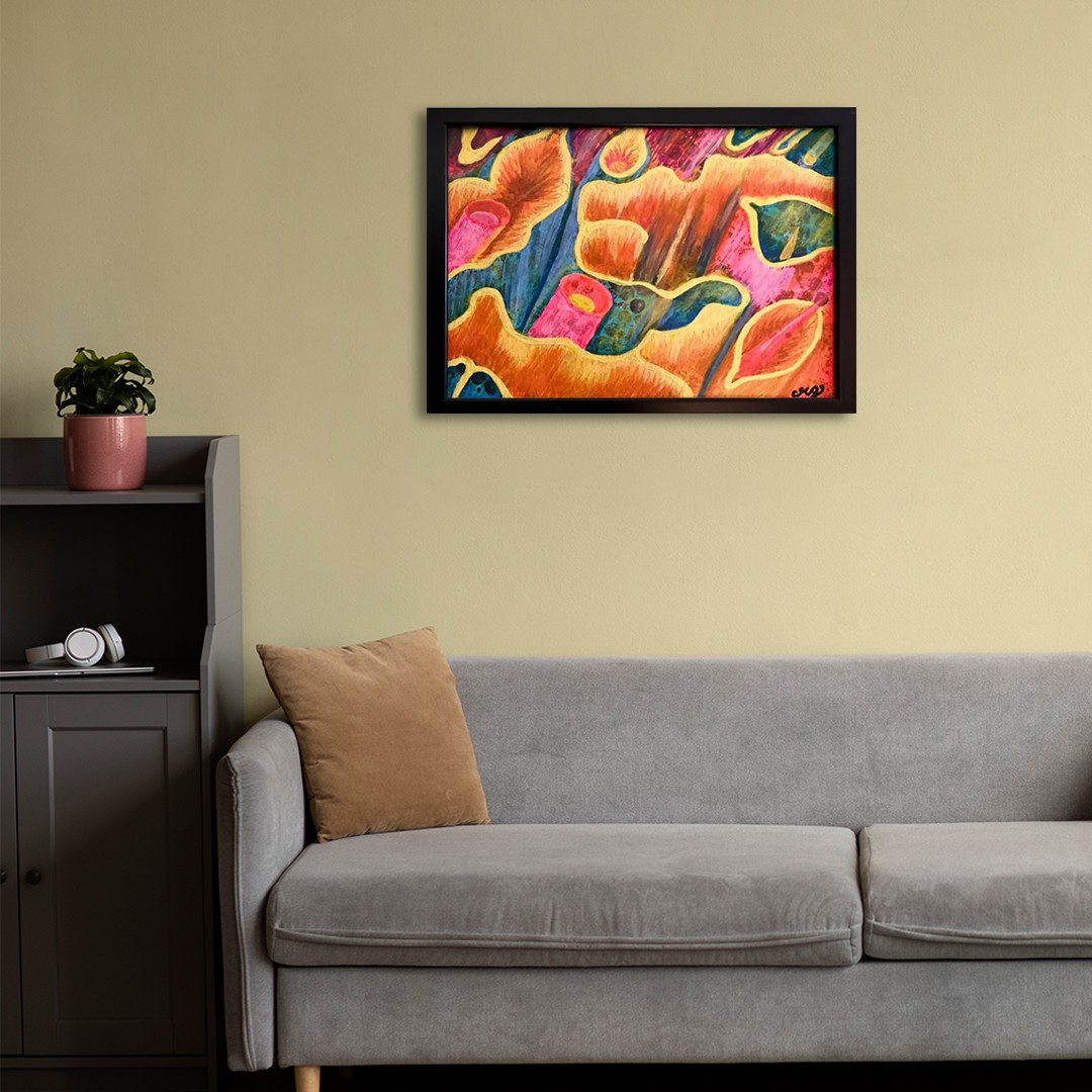 Floating Leaves Abstract Painting with Frame | Mixed Media and Acrylic on Canvas | By Ruchi Gupta