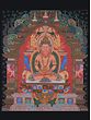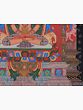 A Thangka is a traditional Tibetan Buddhist painting that usually depicts a Buddhist Deity (Buddha or Bodhisattva), a scene, or a mandala. These paintings are considered important paraphernalia in Buddhist rituals. They are used to teach the life of the Buddha, various lamas, and Bodhisattvas to the monastic students, and are also useful in visualizing the deity while meditating. One of the most important subjects of thangkas is the Bhavacakra (the wheel of life) which depicts the Art of Enlightenment. It is believed that Thangka paintings were developed over the centuries from the murals, of which only a few can be seen in the Ajanta caves in India and the Mogao caves in Gansu Province, Tibet. Thangkas are painted on cotton or silk applique and are usually small in size. The artist of these paintings is highly trained and has a proper understanding of Buddhist philosophy, knowledge, and background to create a realistic and bona fide painting.