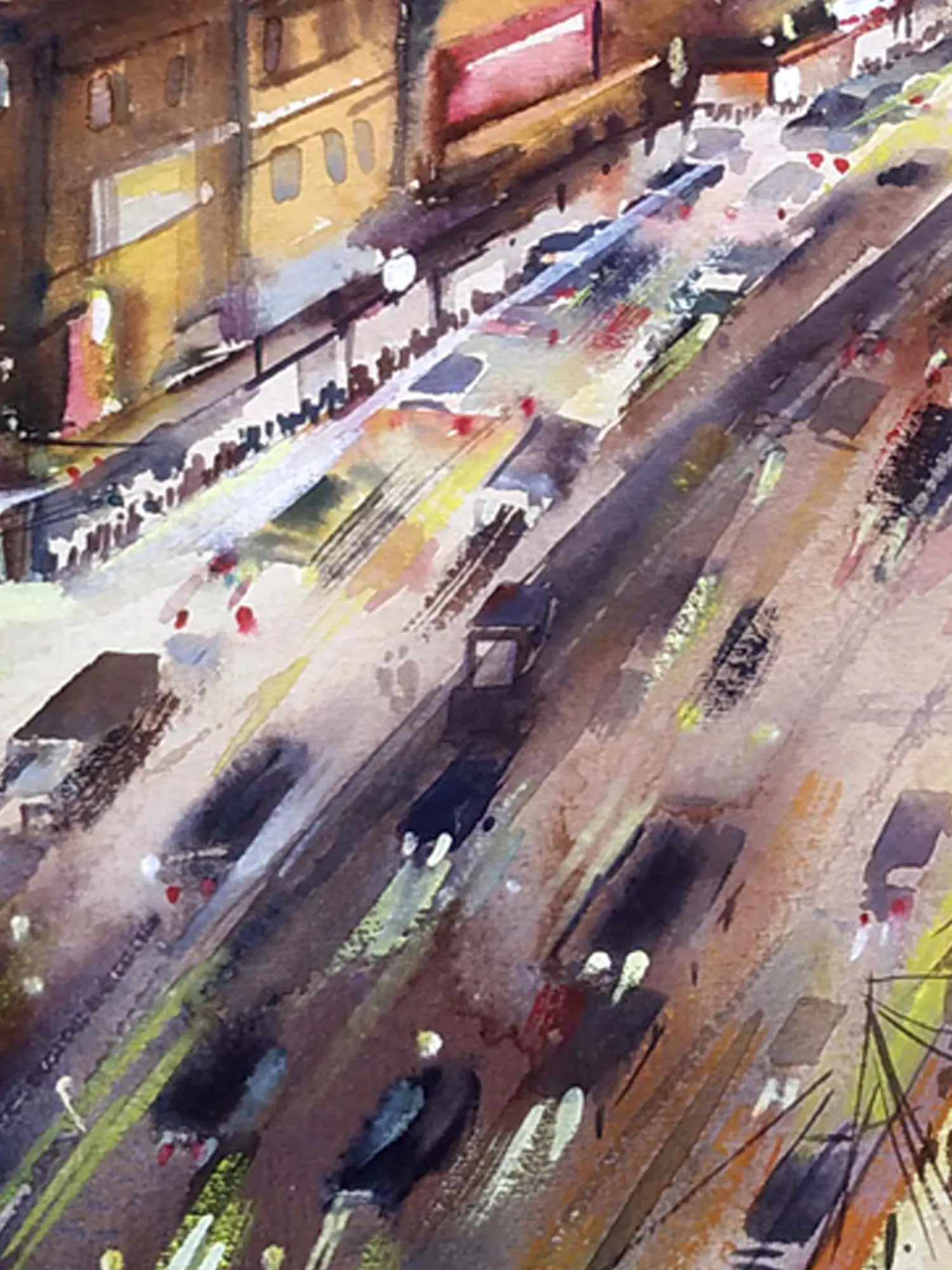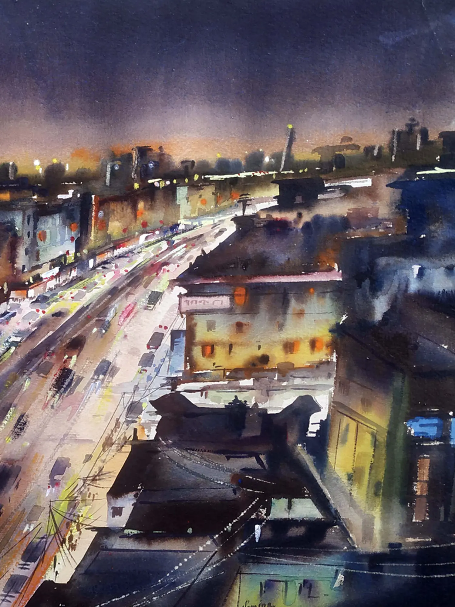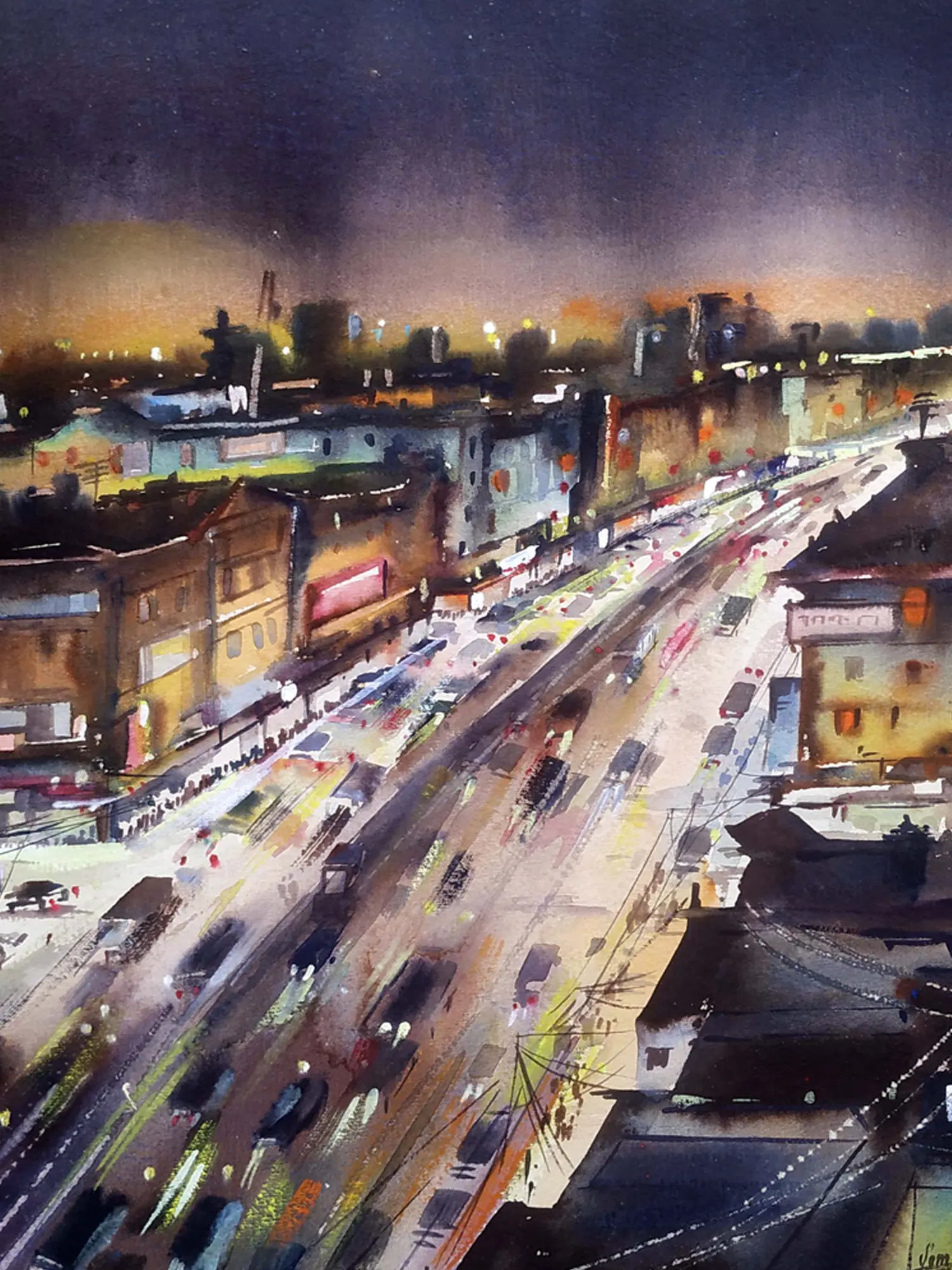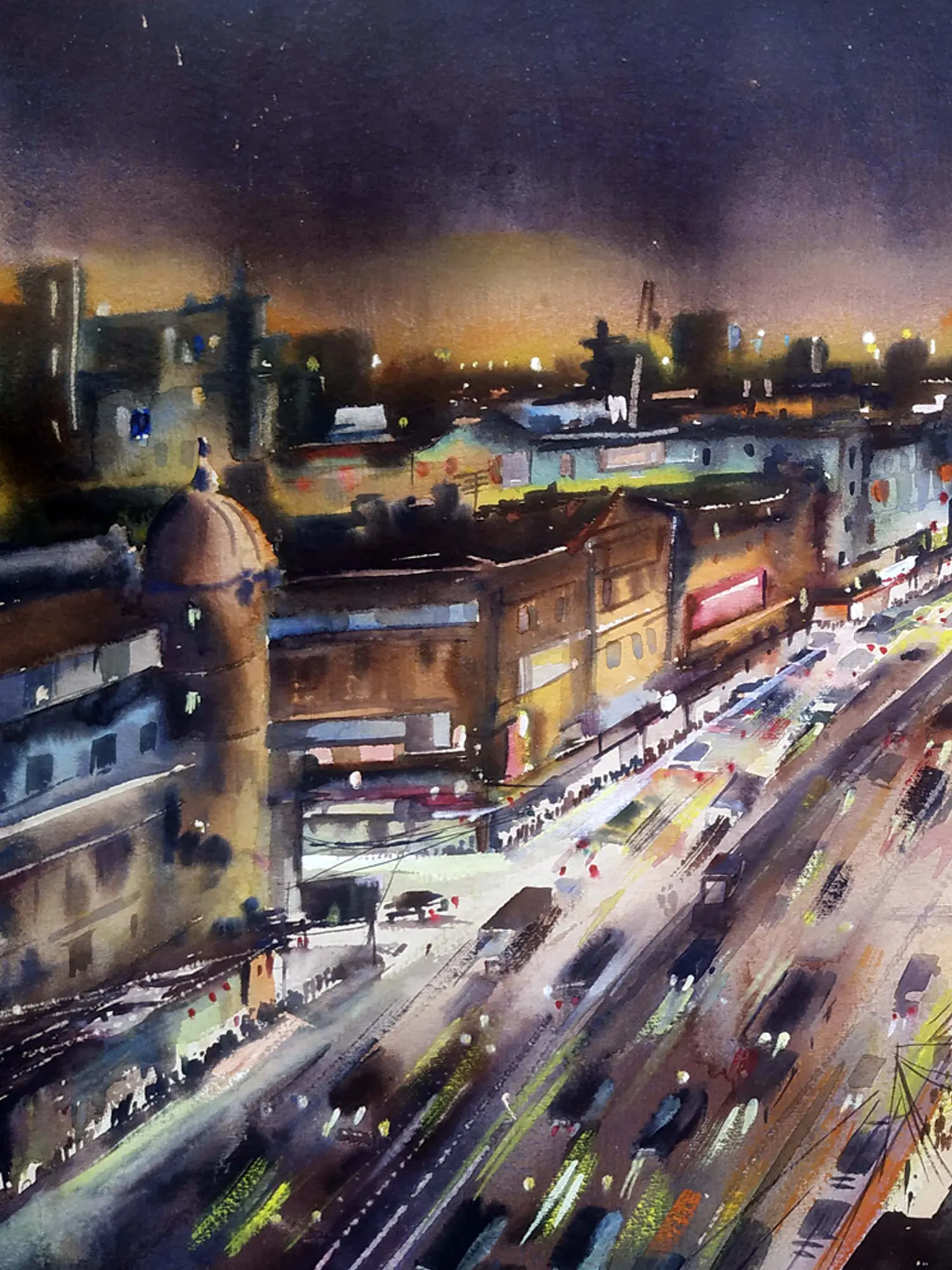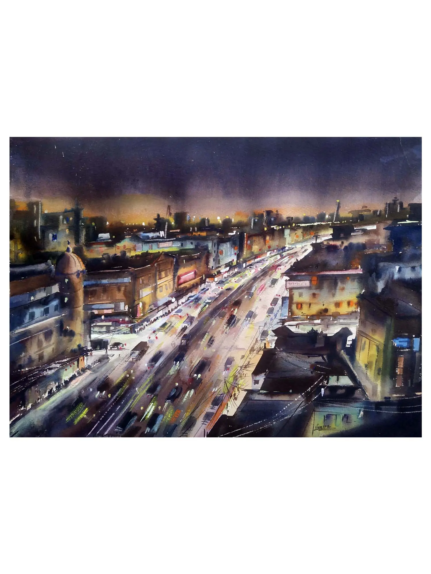 Night City Skyline | Watercolor On Paper | By Samiran Sarkar