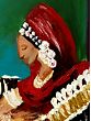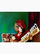 With delicate brushstrokes akin to whispers of the soul, Konika Banerjee weaves a tale of enchantment. At the heart of this ethereal tapestry, a captivating lady emanates grace, her dainty fingers coaxing mellifluous melodies from a cherished musical instrument. The melodic spirit of the woman is echoed as rich layers entwine, conveying a sense of exploration and desire. Clad in a resplendent scarlet gown, she exudes timeless elegance and fiery passion, a symphony of colours cascading around her. As the ethereal notes intertwine with hues, you are transported into a realm where sound and colour embrace, giving birth to an eternal reverie. The canvas dances with the harmonious rhythm, an ode to the eternal wanderer, as if whispering tales of longing and boundless wanderlust.