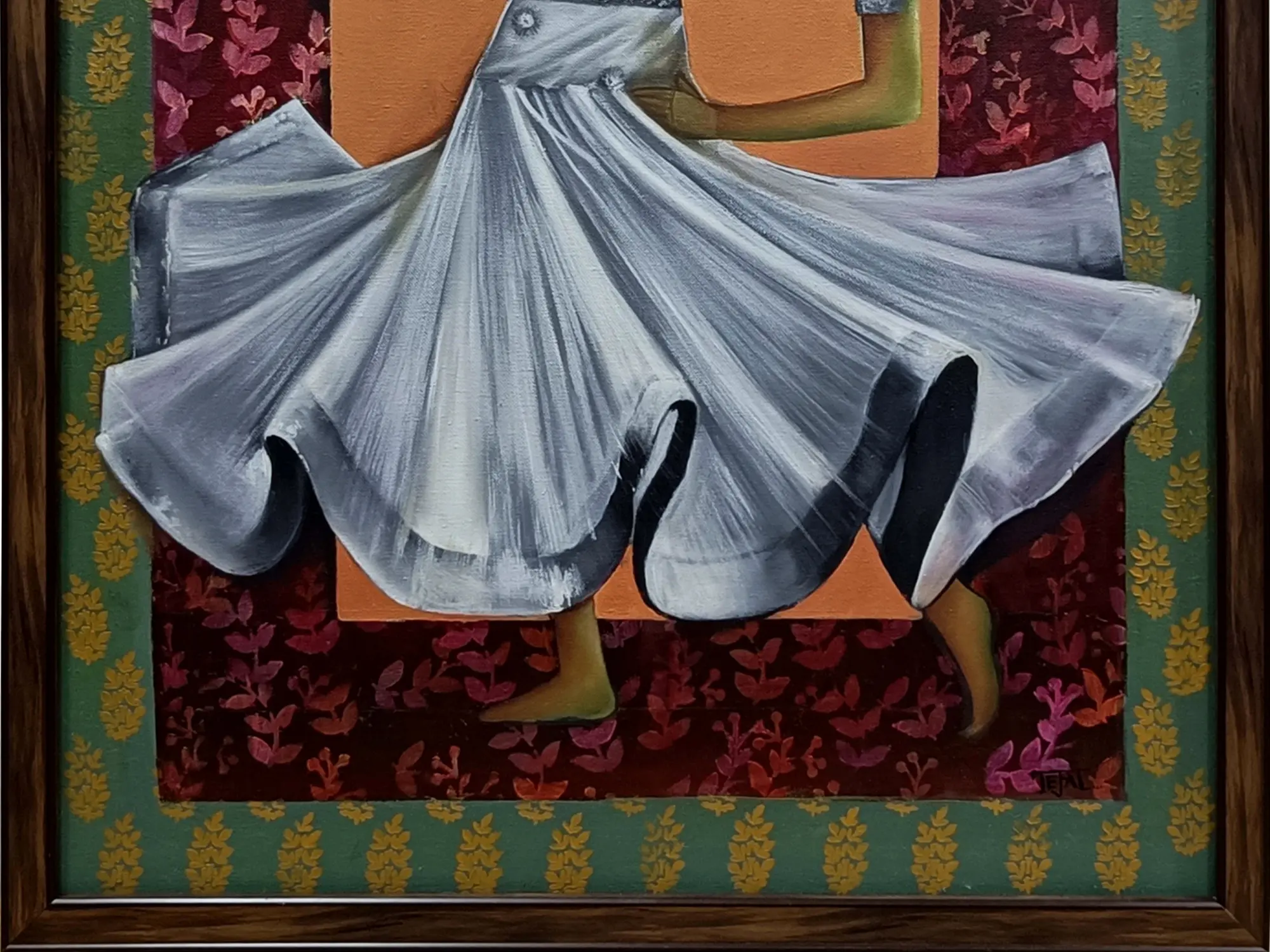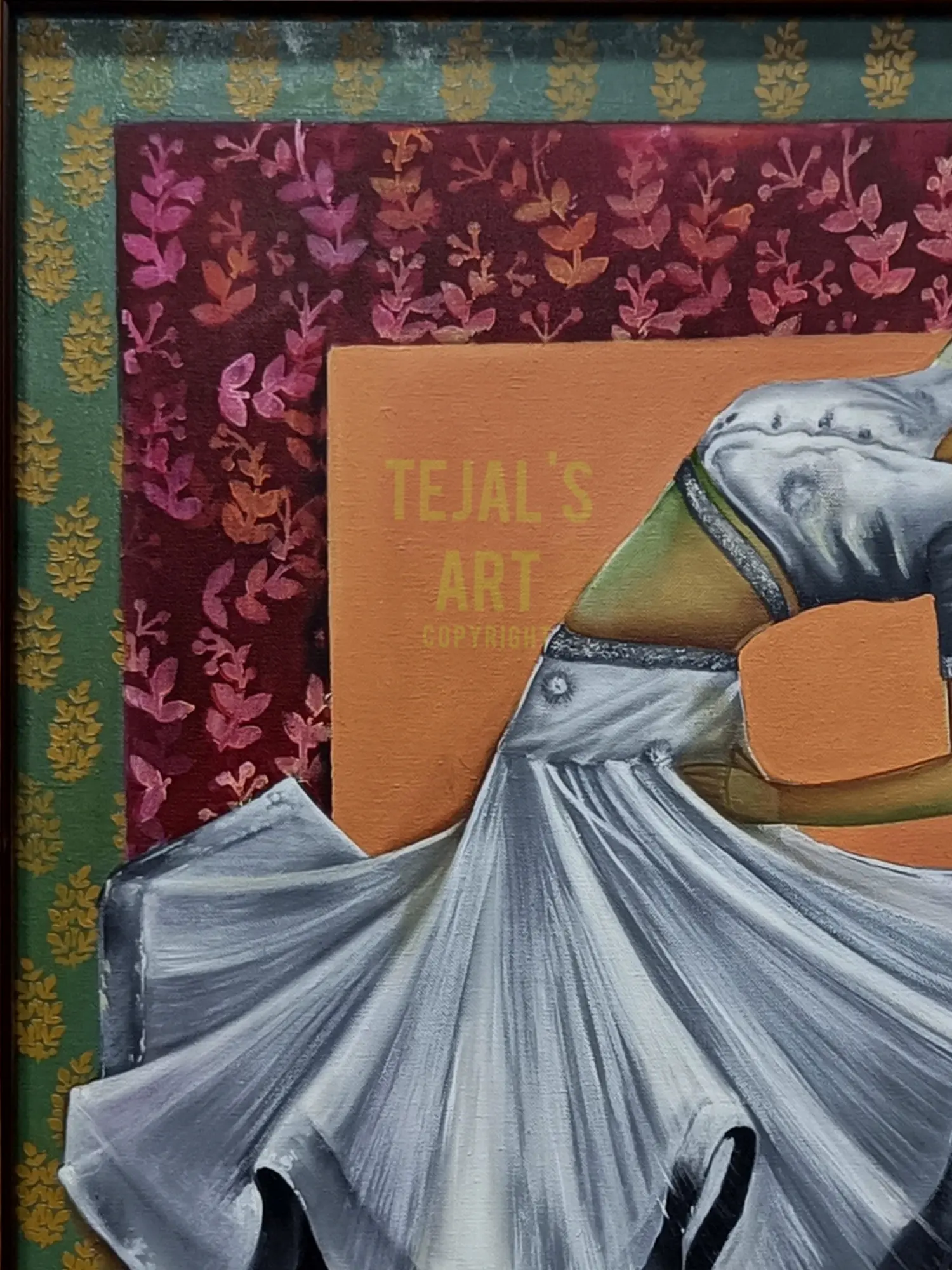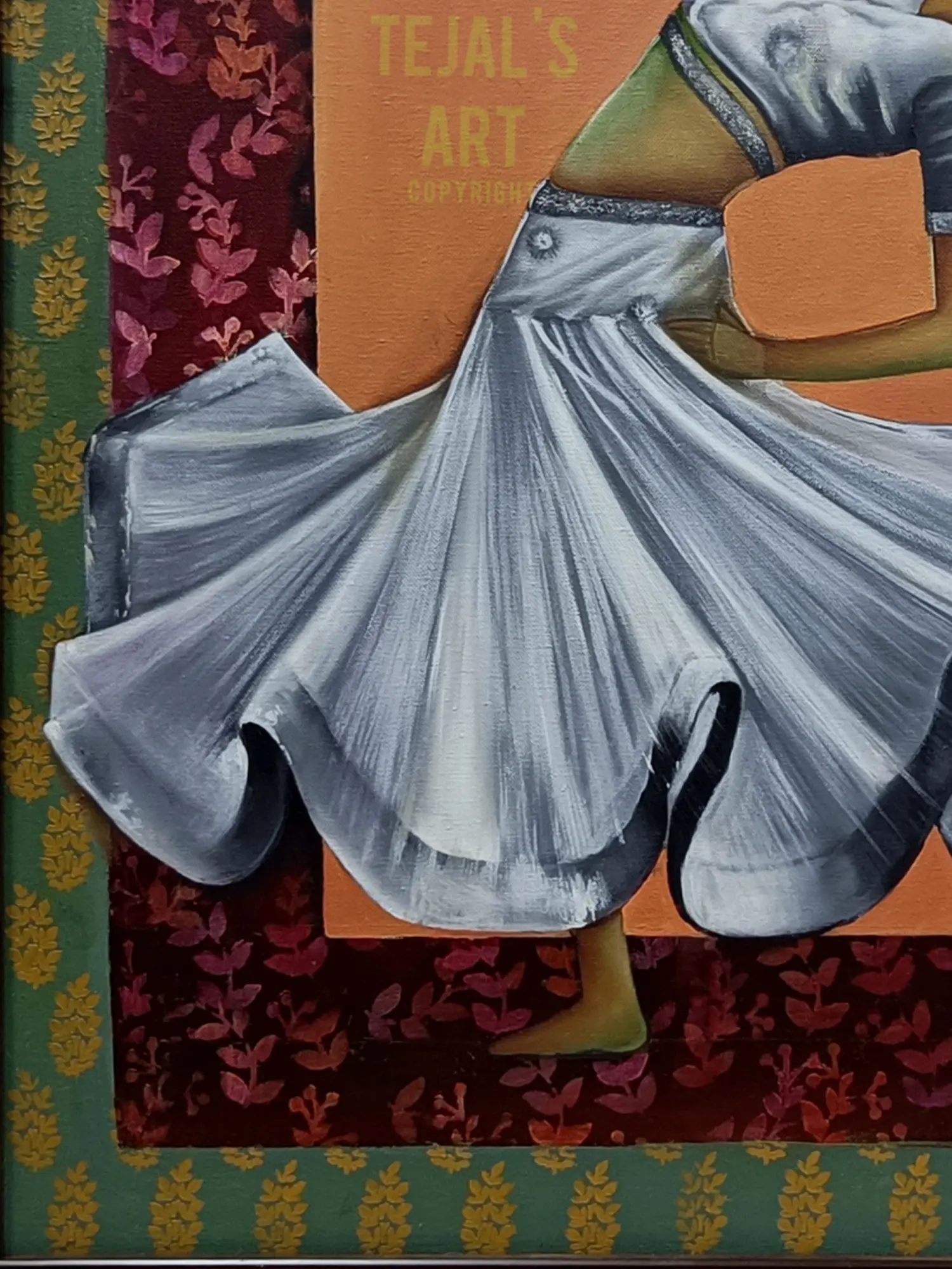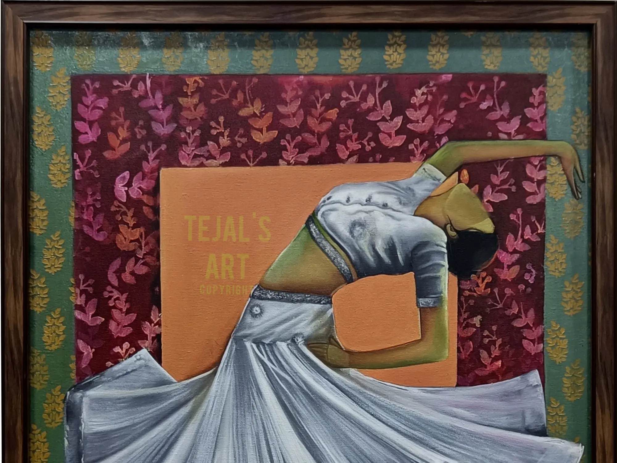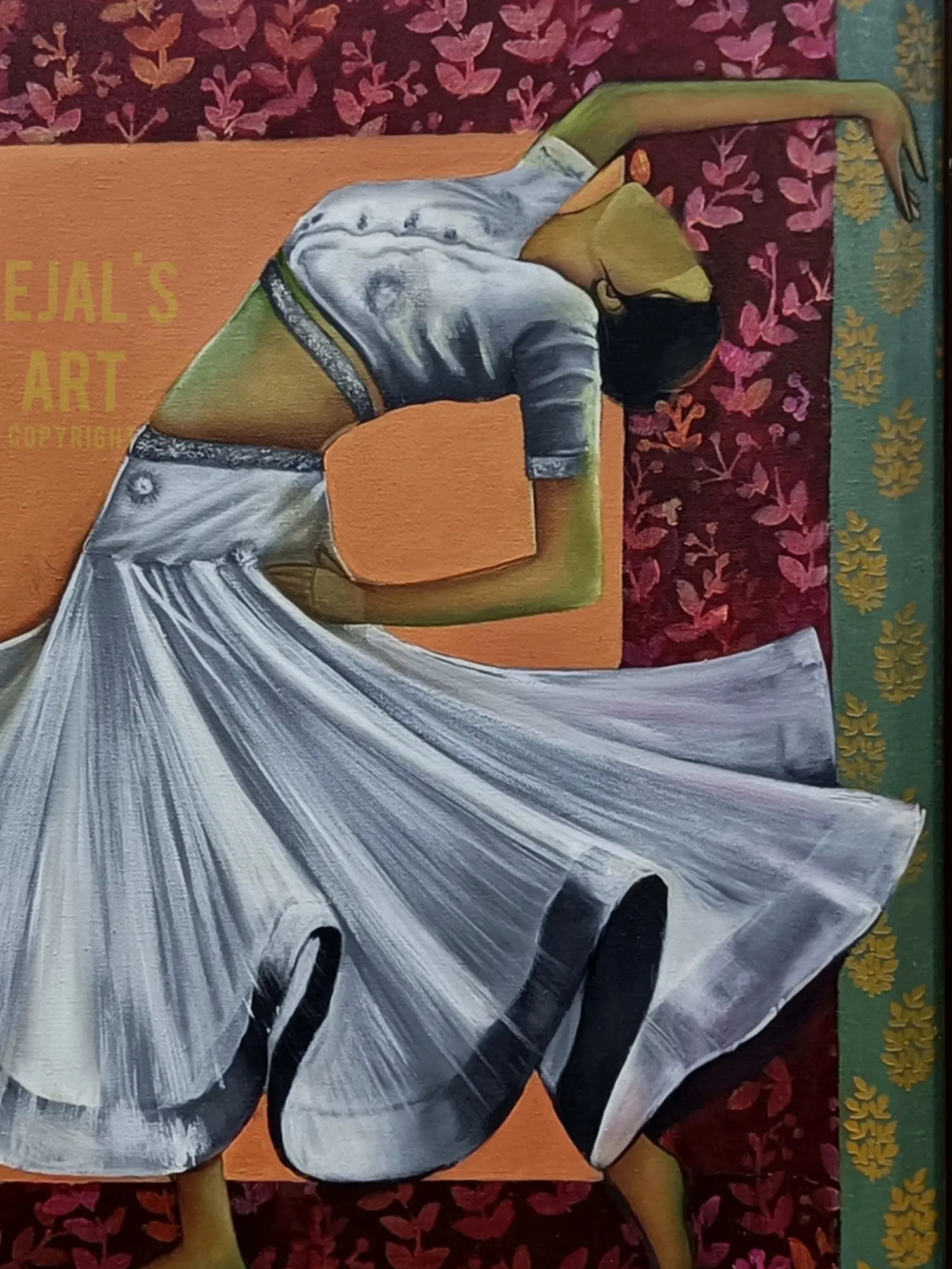 "Nrityangana" is an ode to the grace and rhythm of dance, depicted through the artistry of oil on canvas. The painting transcends the visual to evoke the very essence of movement. The dancer's form is a symphony of fluidity, each brushstroke capturing the finesse of expression. The canvas becomes a stage where the dancer's spirit comes alive, inviting you to embrace the beauty of movement and the poetry of motion.