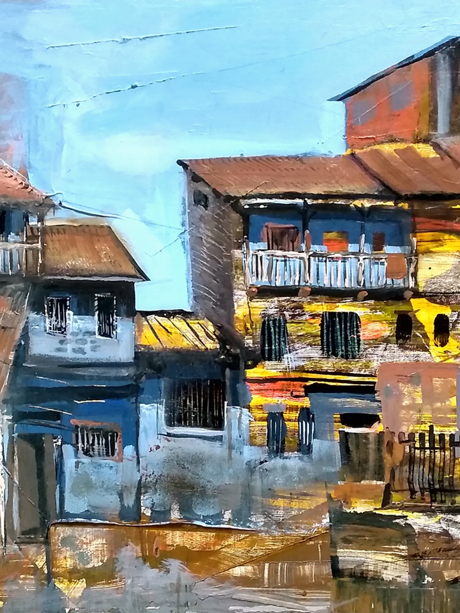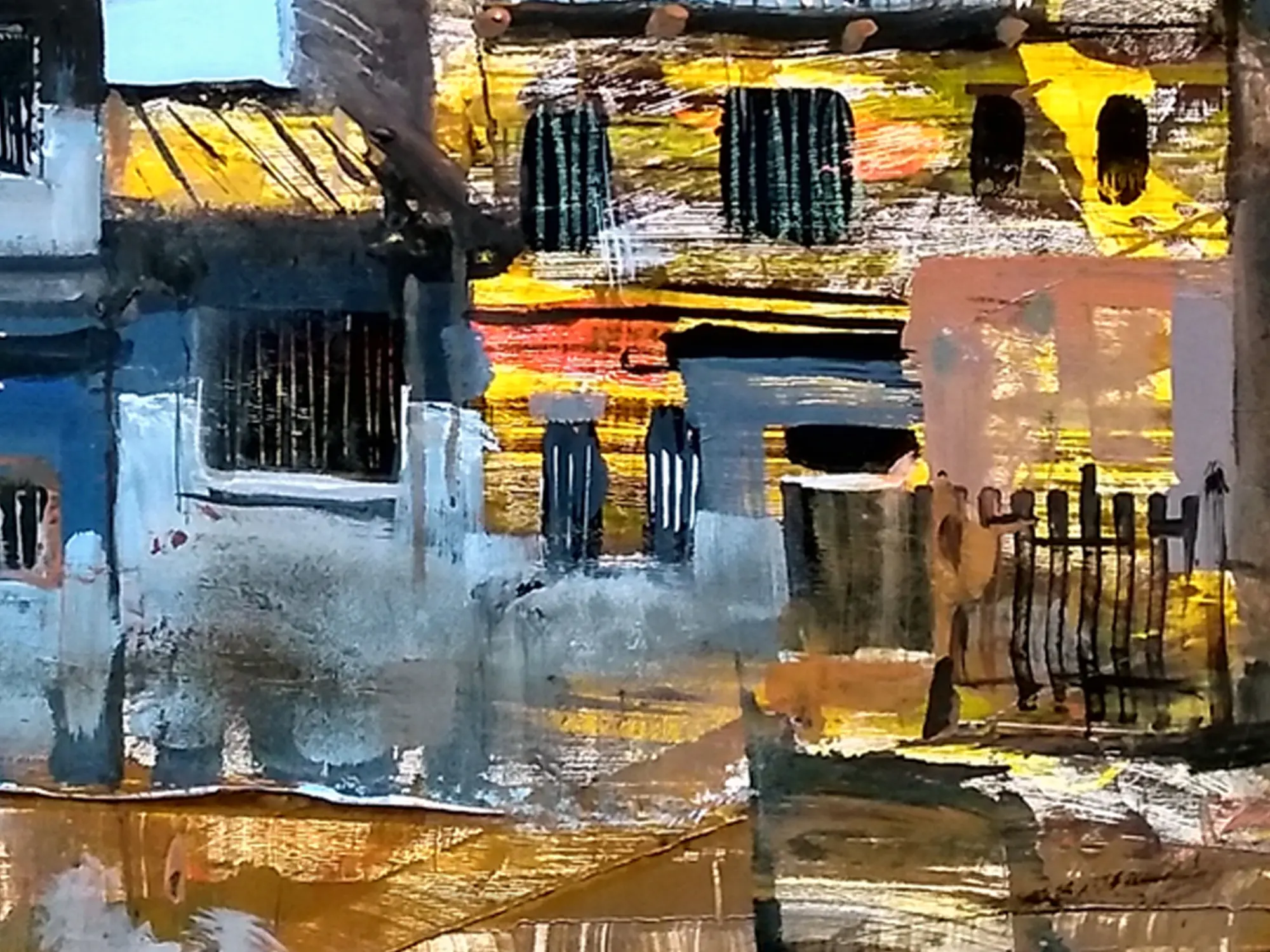 Village Abstract Art | Acrylic on Canvas Art by Harshad Godbole