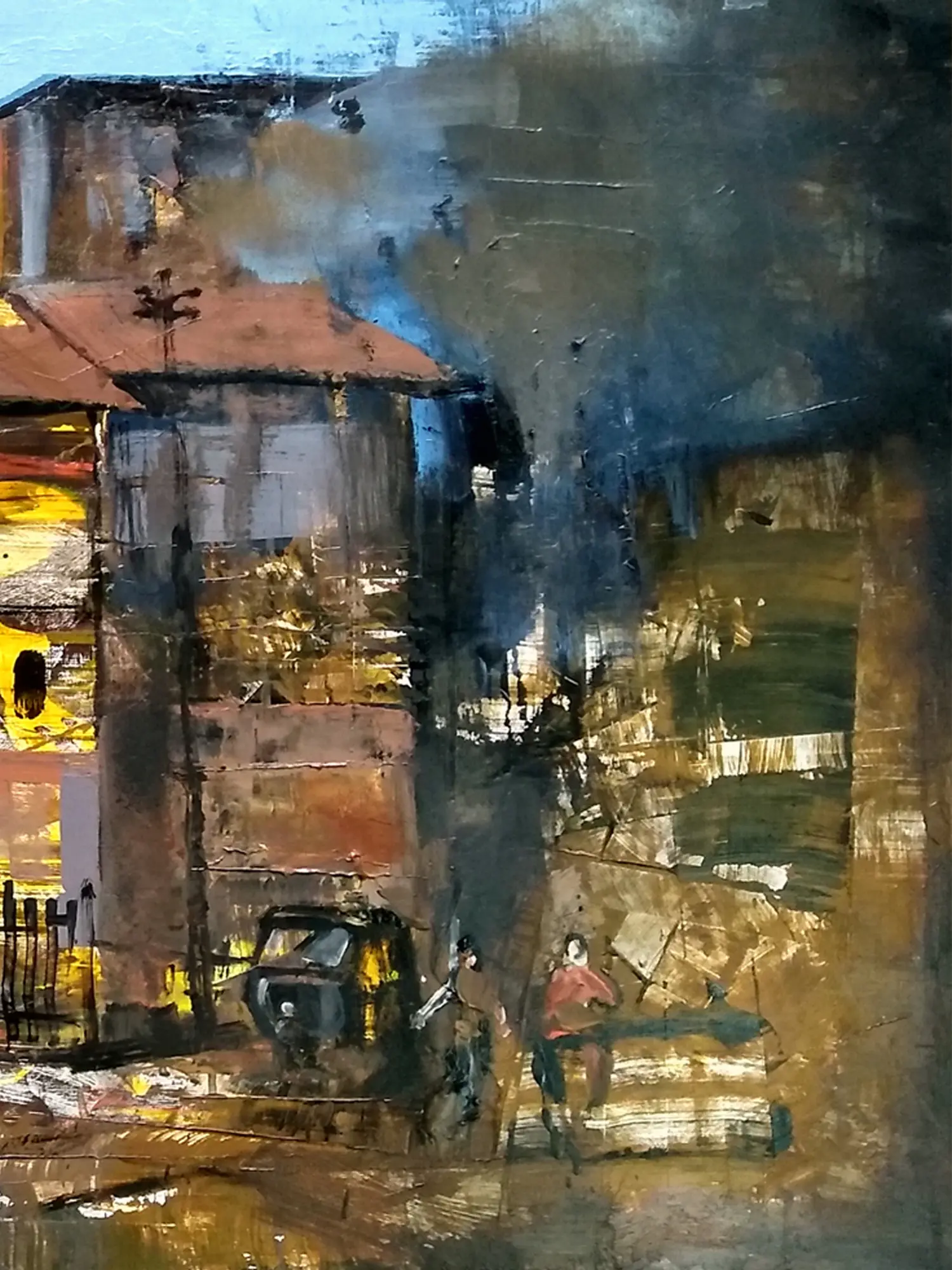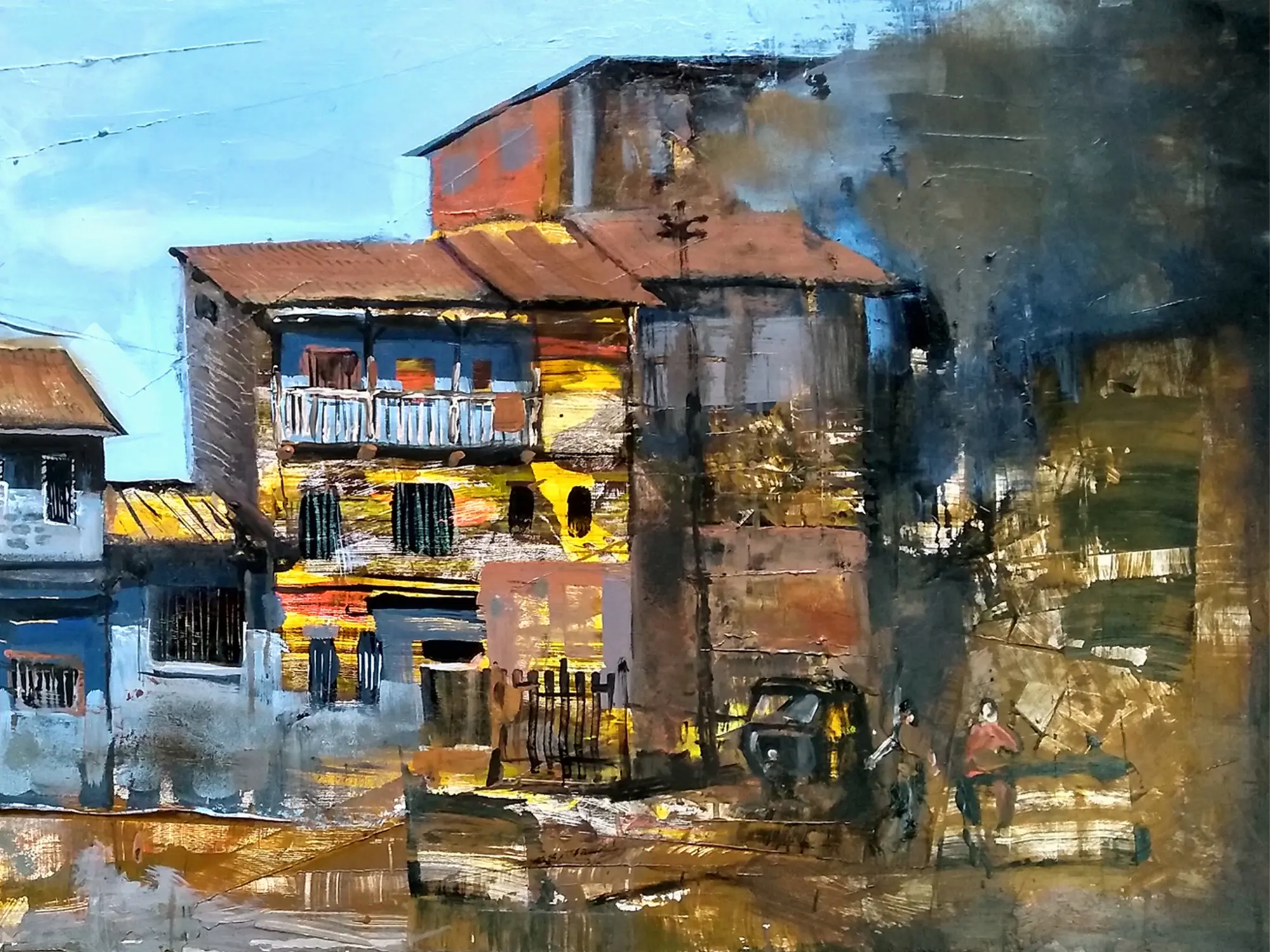 Evening Life in Old City | Acrylic and Charcoal on Canvas | Art by Harshad Godbole