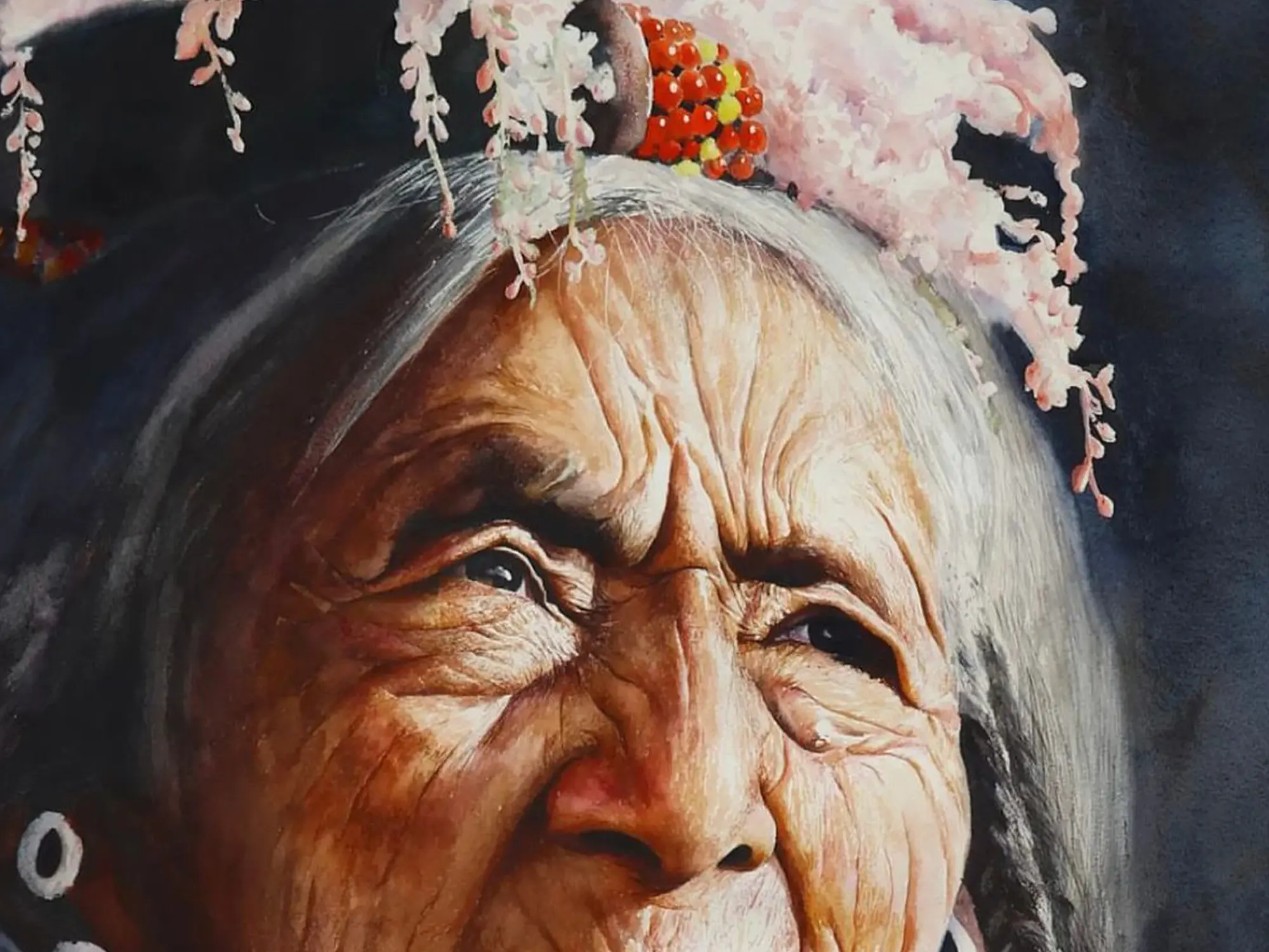 Behold the captivating realism of an Old Indian-Ladakhi Lady, immortalised in delicate watercolours on paper. Every detail, from weathered lines to wise eyes, tells a story of resilience and wisdom earned through a lifetime of experience. Through the artist's skillful hand, this portrait captures the essence of cultural heritage and the enduring spirit of the Indian landscape. Let its gaze remind you of the timeless beauty found in the wrinkles of age and the depths of the soul.