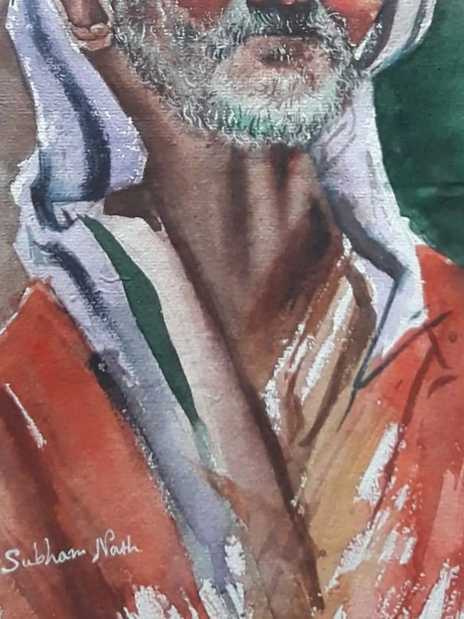 Indian Old Man Waving a Religious Flag | Painting by Noharika Deogade