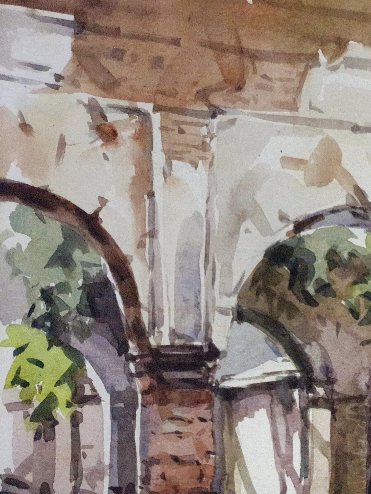 Immerse yourself in a scene that whispers tales of a bygone era, where the grandeur of the past is beautifully rendered through masterful watercolor. You'll appreciate how light and shadow play across weathered architecture, inviting you to step into a moment frozen in time. This evocative piece captures the enduring spirit of historical sites, bringing a touch of timeless elegance to your space.