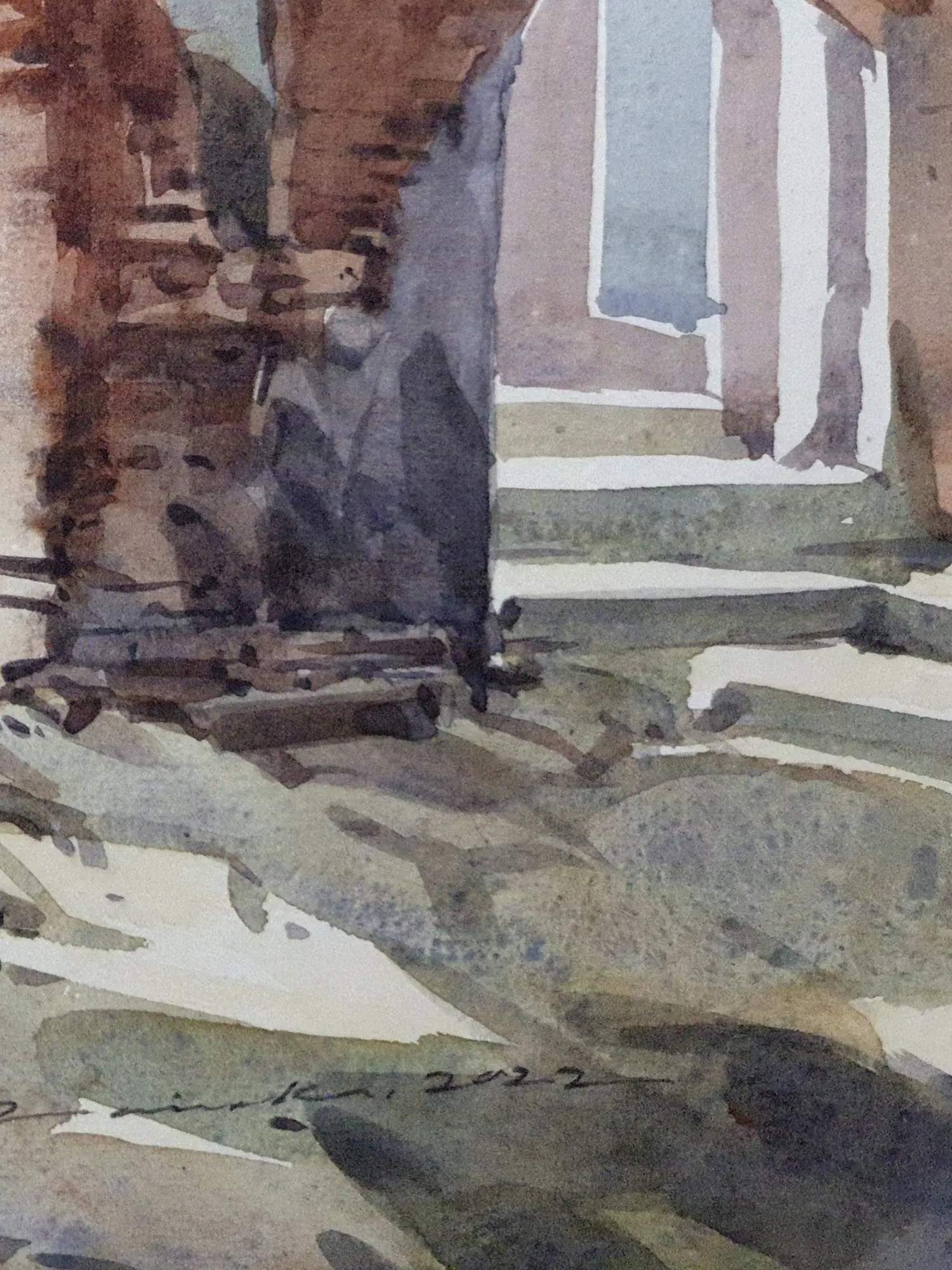 Crafted with exquisite sensitivity, this watercolor on paper is a testament to the artist's profound connection with their subject. Each stroke is deliberate, allowing the luminous qualities of the medium to imbue the scene with depth and atmosphere. You will discover the delicate layering of pigments that creates rich textures and subtle shifts in hue, reflecting a meticulous and passionate approach to artistic creation.